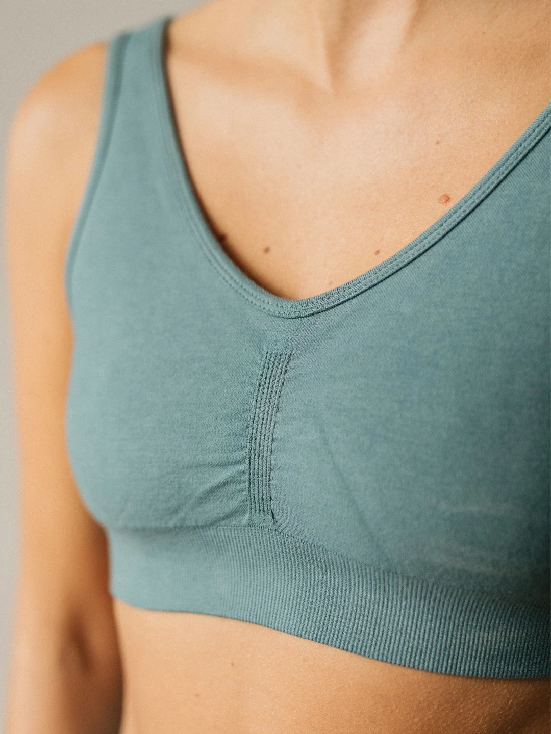 We want to bring sustainable fashion to every part of your day, including your exercise routine. The Angaur is a seamless sports bra designed with a new two-layered fabric for optimal support when on the move. Features wide shoulder straps, ribbed bottom and gathered front.Â