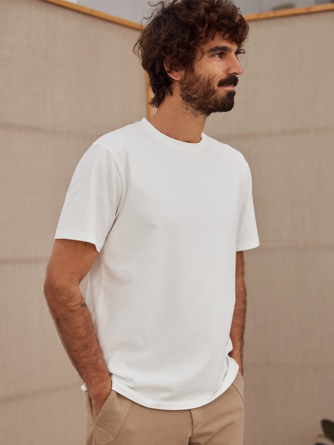 A set of simple yet beautiful t-shirts in a variety of colours. The Akdamar comes with our label stitched at the bottom, a round neckline and a small percentage of elastane to preserve the shape of the garment. It comes in a tight fit. Our model is wearing one size up. Â