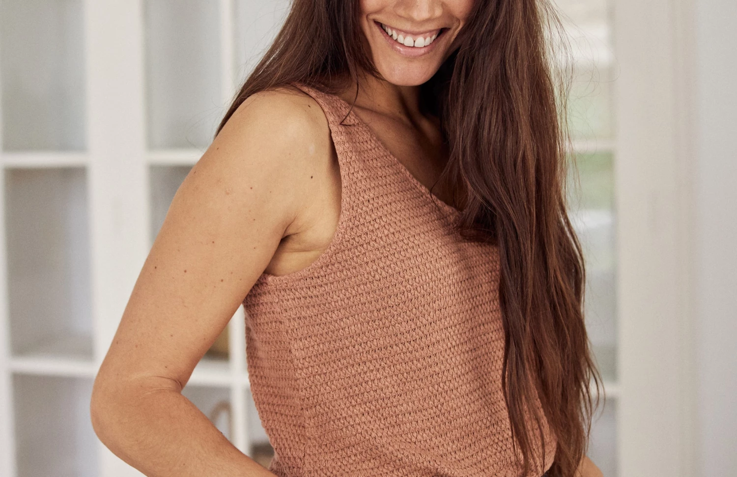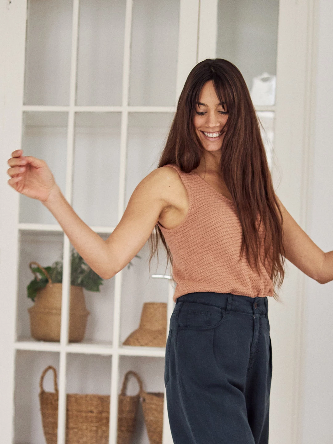 Enjoy the warm breeze with our Amrum sleeveless top! Features a soft and gentle fabric and a V-neck style.