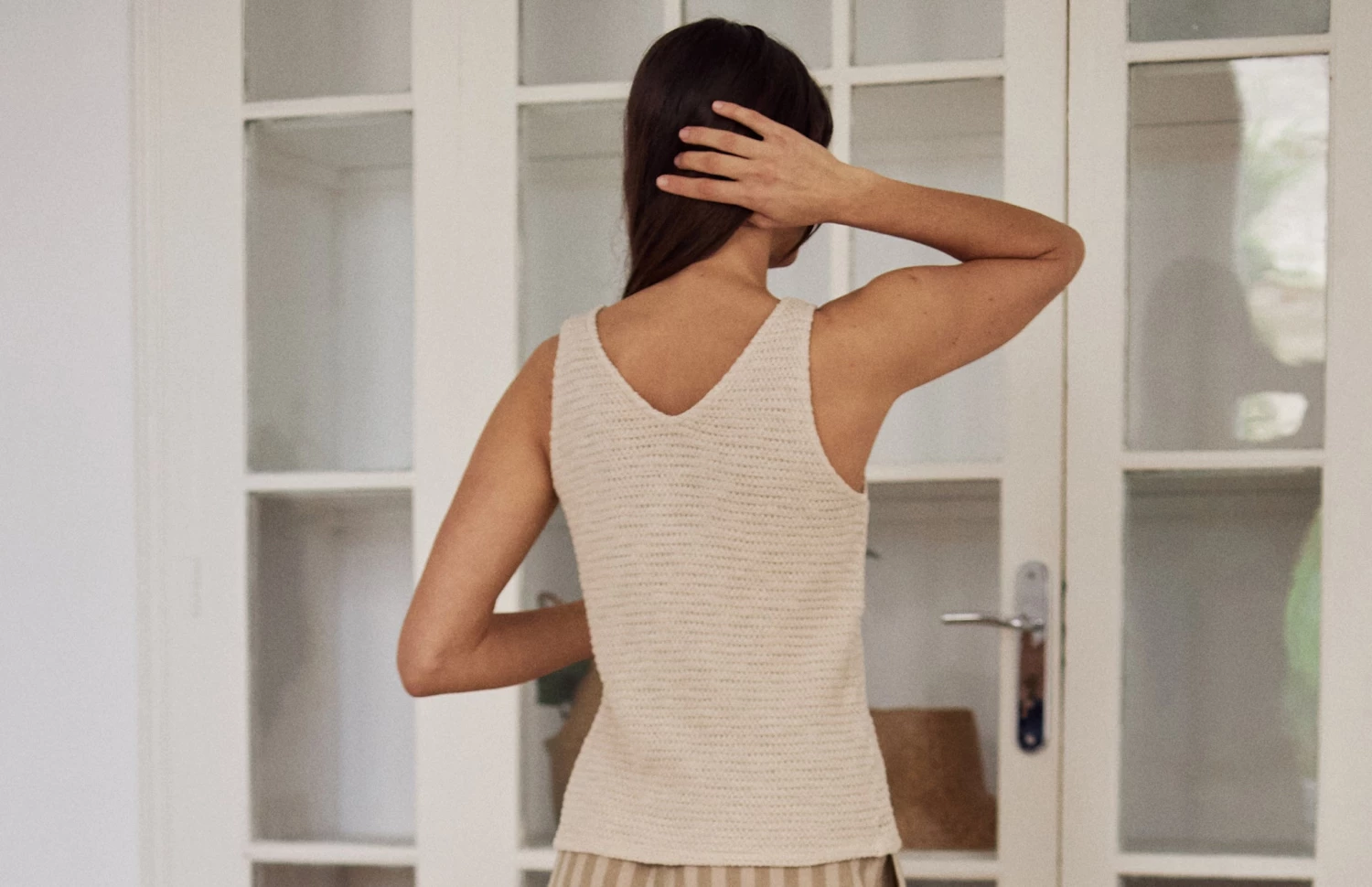 Enjoy the warm breeze with our Amrum sleeveless top! Features a soft and gentle fabric and a V-neck style.Â