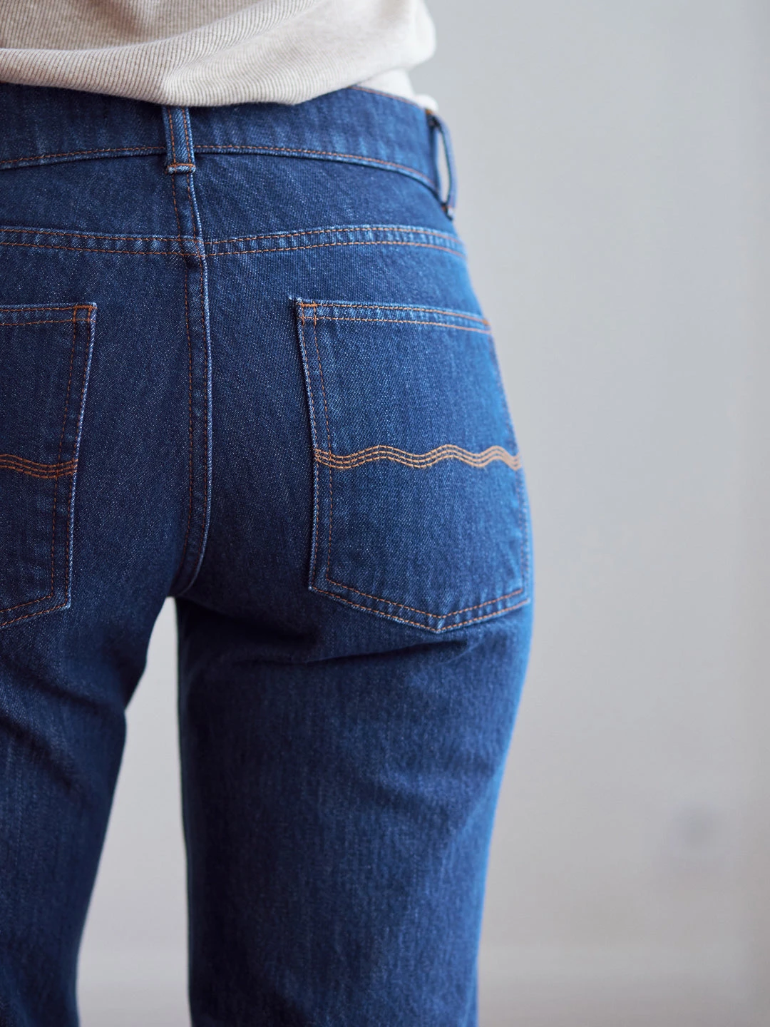 We’re proud to welcome the Armona to our ocean denim collection. The jeans have a rather slim and straight fit with washed mid-blue colour and silver button on the waist – imprinted with the word “TWOTHIRDS”. Wave detailing on the back pocket in recycled polyester thread.
