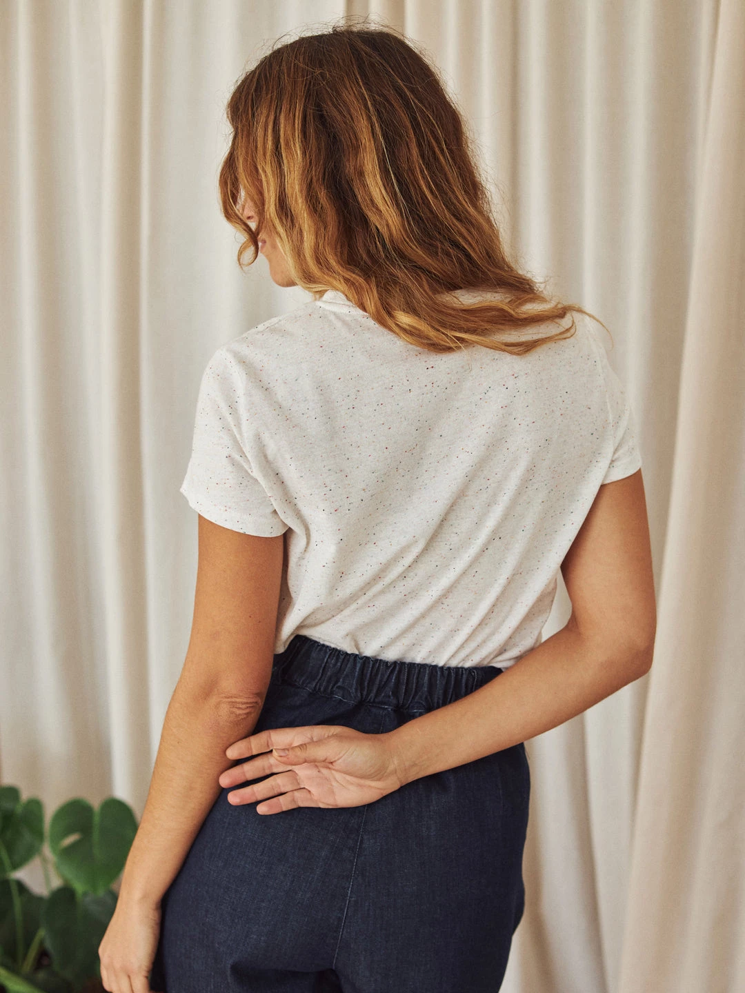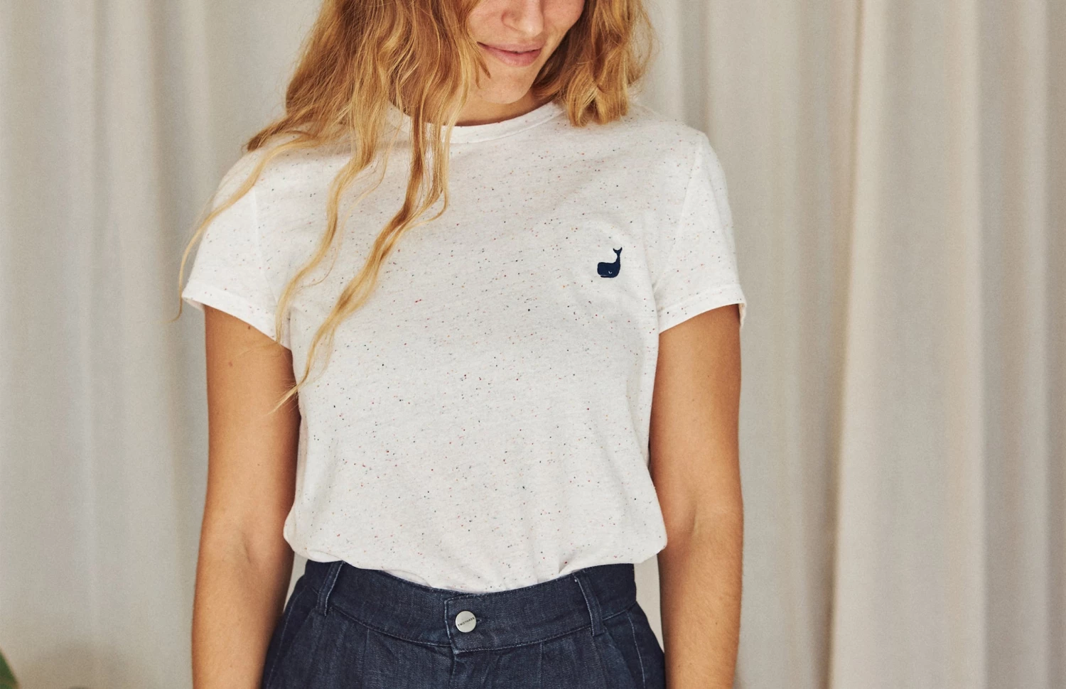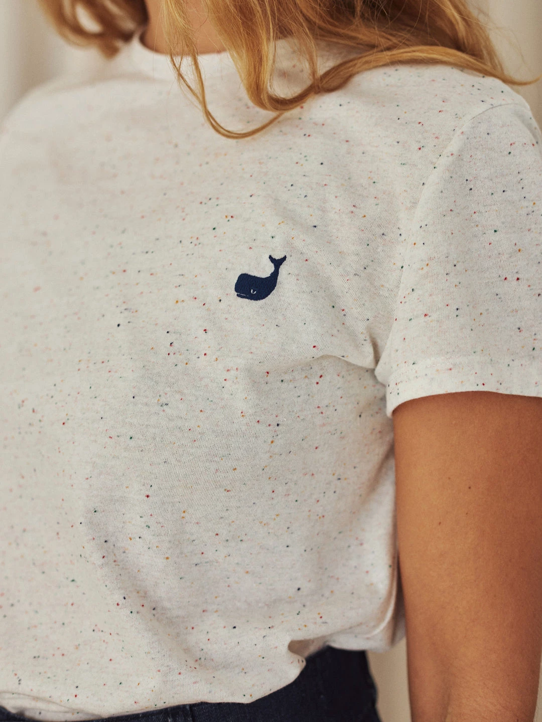 Fair fashion comes from conscious production and fabrics: as demonstrated by the Auckland top. A durable and sustainable tee, designed with beautiful multicolour neps all over and a whale embroidery on the chest. Contains recycled polyester to prevent pilling. In a slim fit and hip-length cut.Â