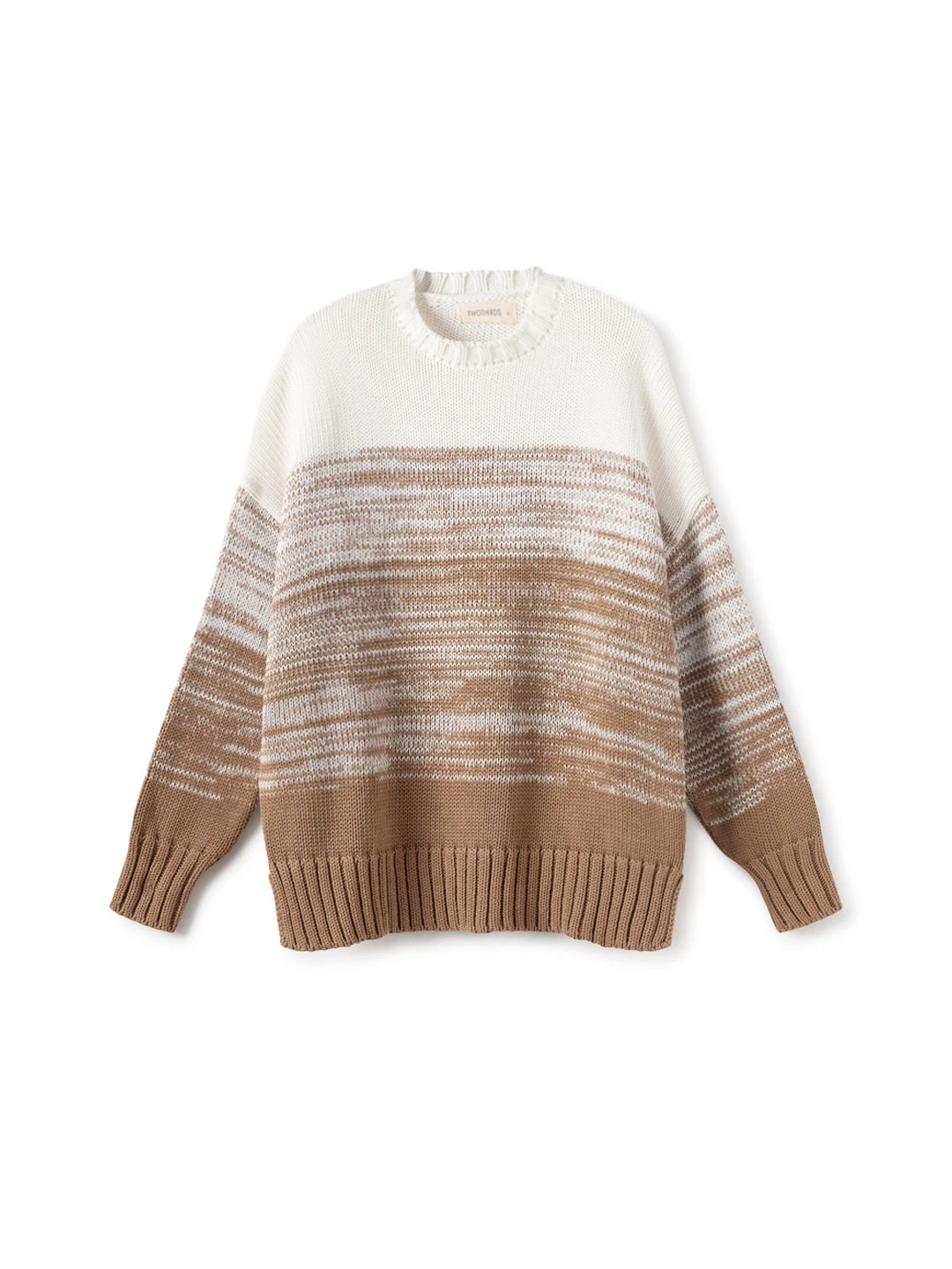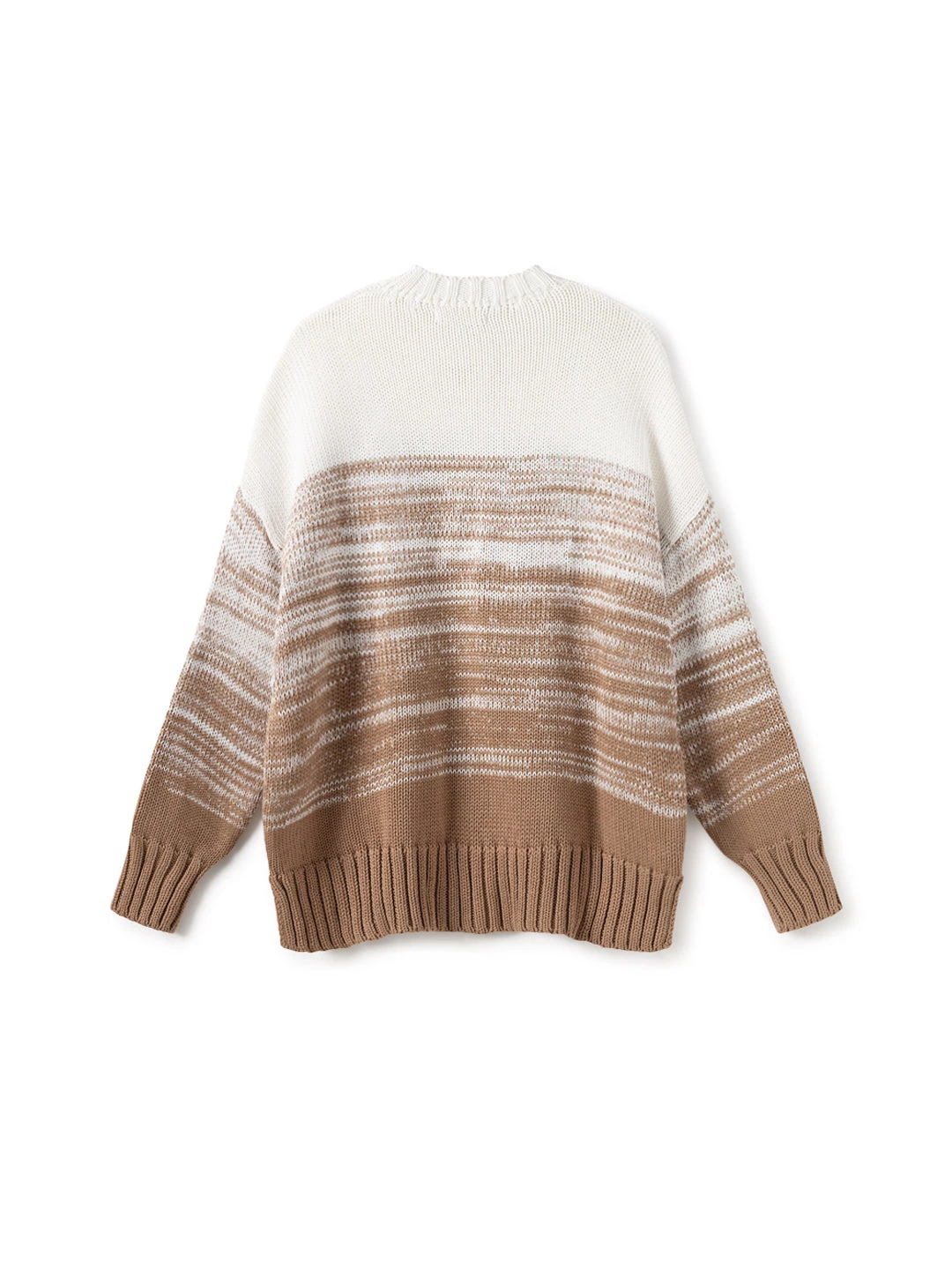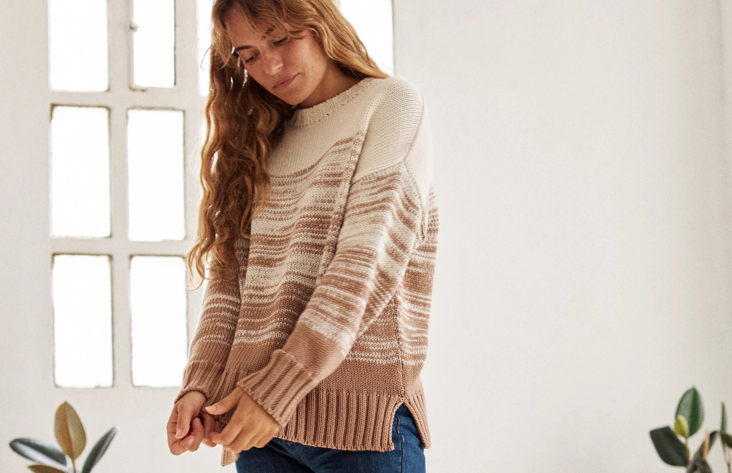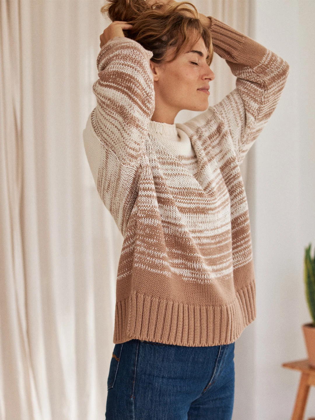 Inspired by snowy mountains, the Barbarita knit will feel soft on your skin and easy on the eye thanks to an organic fabric and ombre effect. The garment is designed with ribbed edges and side cuts. It comes in a fairly loose fit and falls around the hips.Â