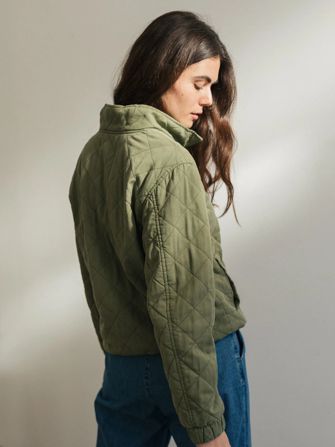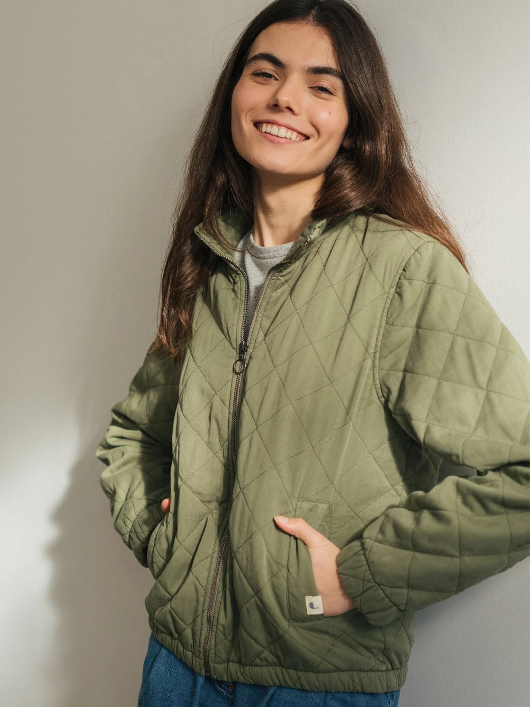 We love bringing conscious fashion to life with garments like the Bertha jacket, made from an exceptionally sustainable fibre. The Bertha is designed with thin exterior padding, raised neckline, elastic on the cuffed edges and 3 pockets in total – one on the inside. The jacket comes in a fairly oversized fit and hip-length cut.