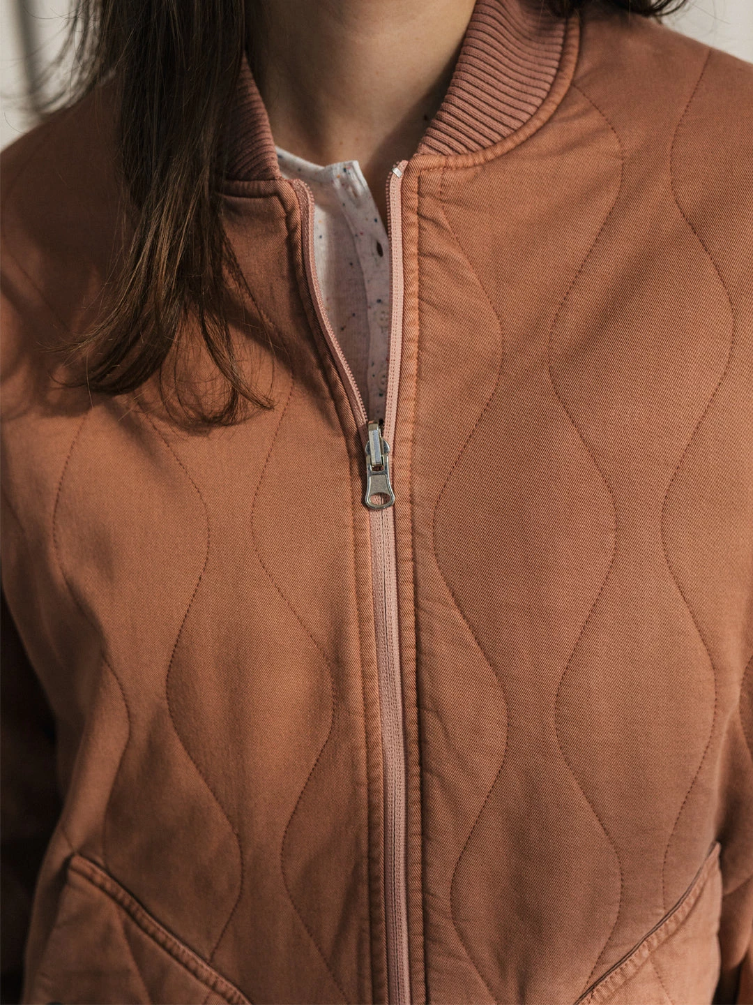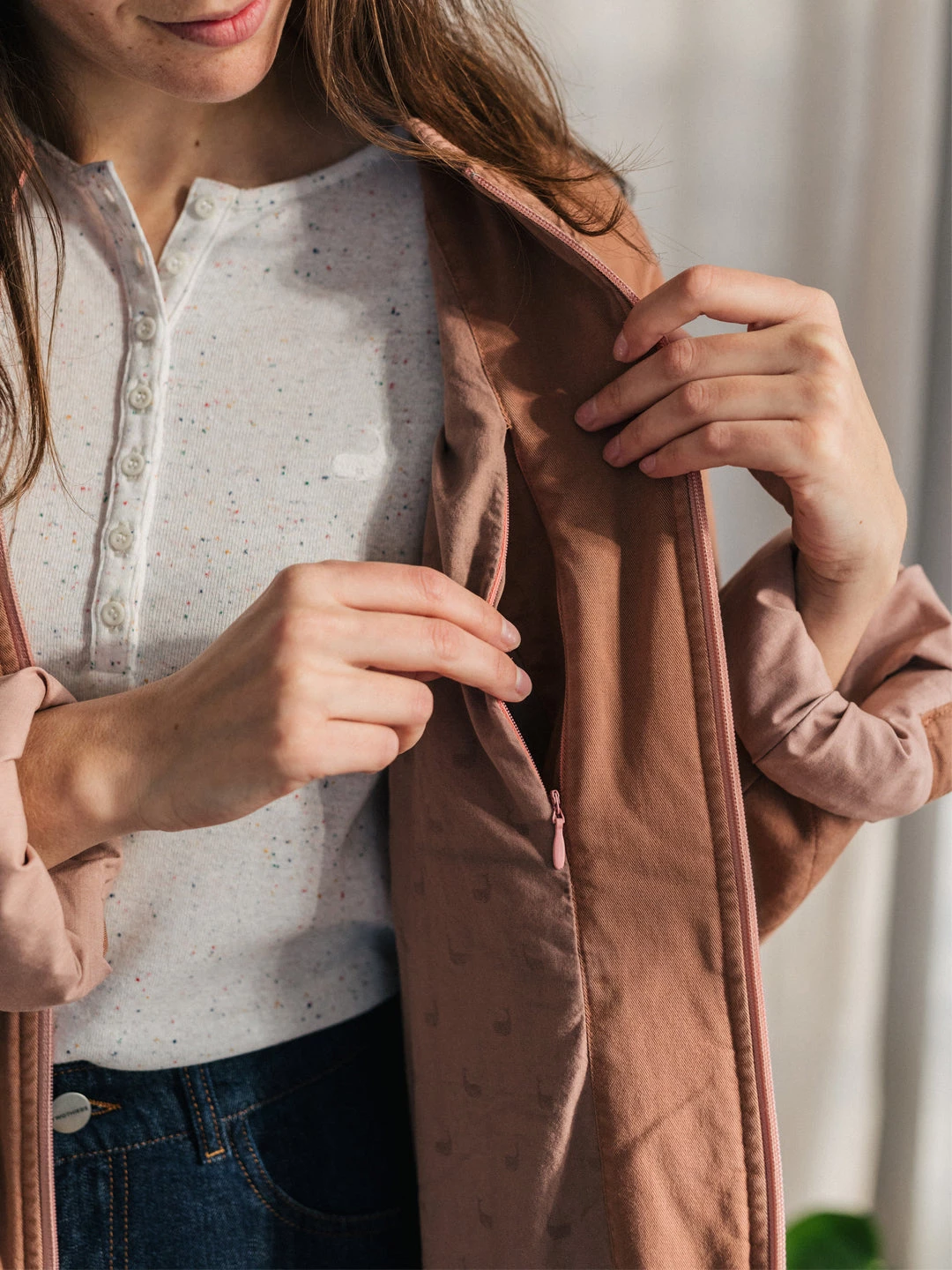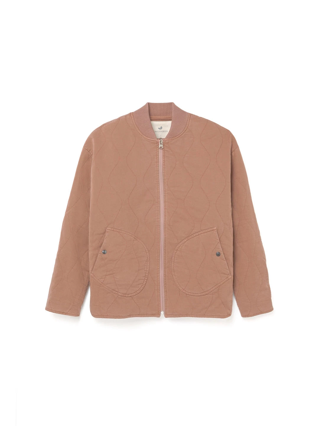The Bobel is a bomber style jacket, made of a combination of sustainable elements to achieve the smallest environmental impact. Designed with snap buttons on the sleeves and side pockets, a ribbed neckline, side cuts and a handy inside pocket. It has a regular fit and hip-length cut.