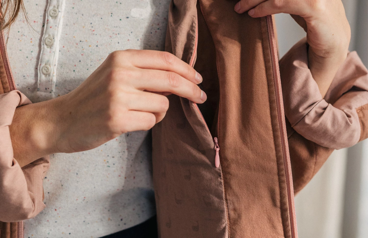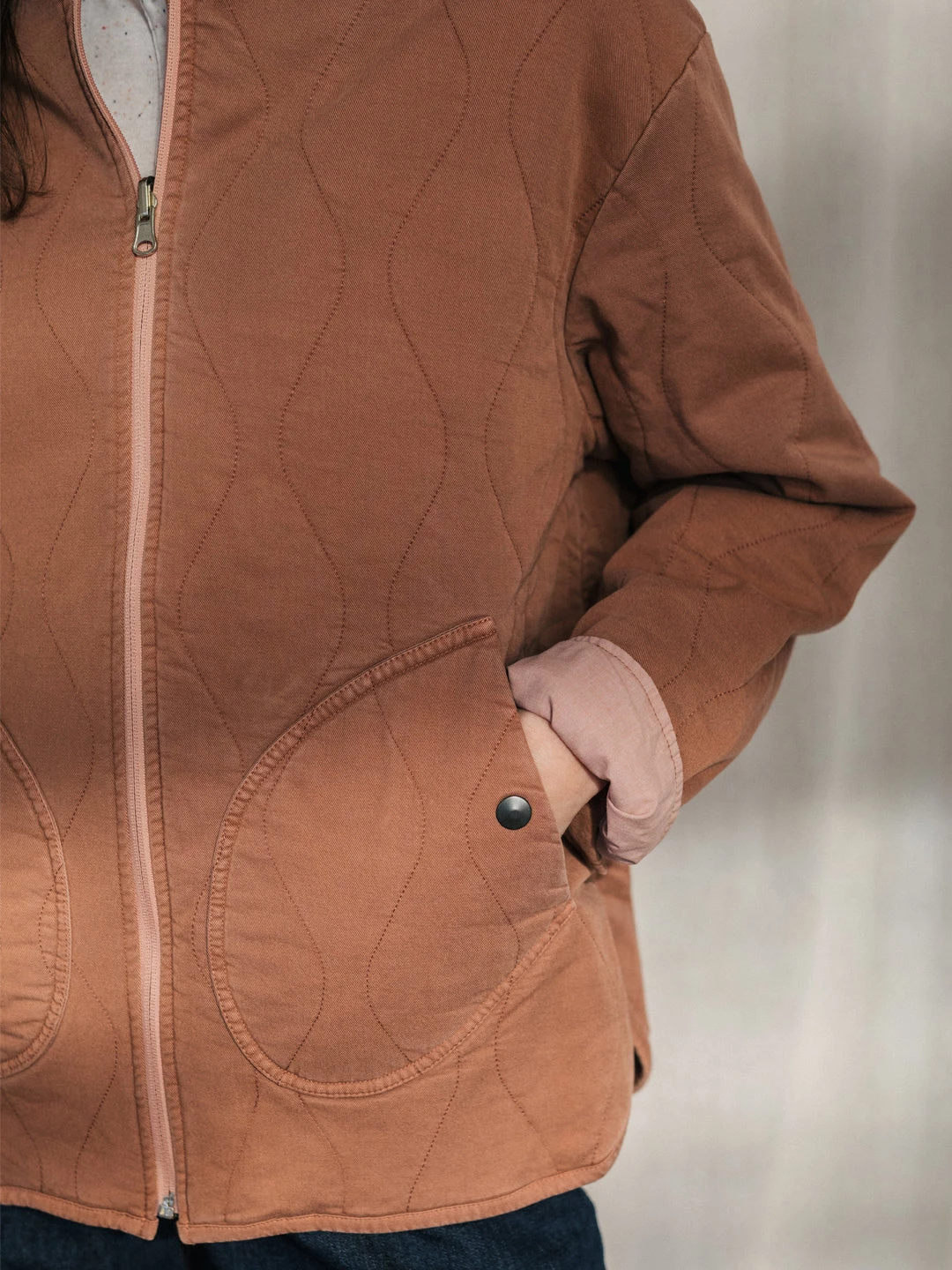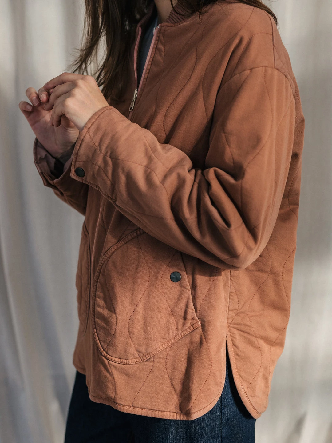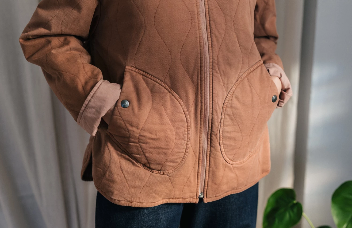 The Bobel is a bomber style jacket, made of a combination of sustainable elements to achieve the smallest environmental impact. Designed with snap buttons on the sleeves and side pockets, a ribbed neckline, side cuts and a handy inside pocket. It has a regular fit and hip-length cut.