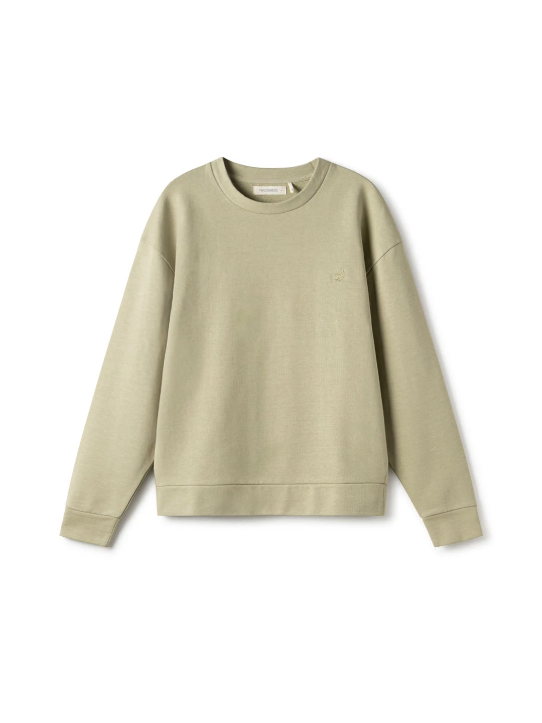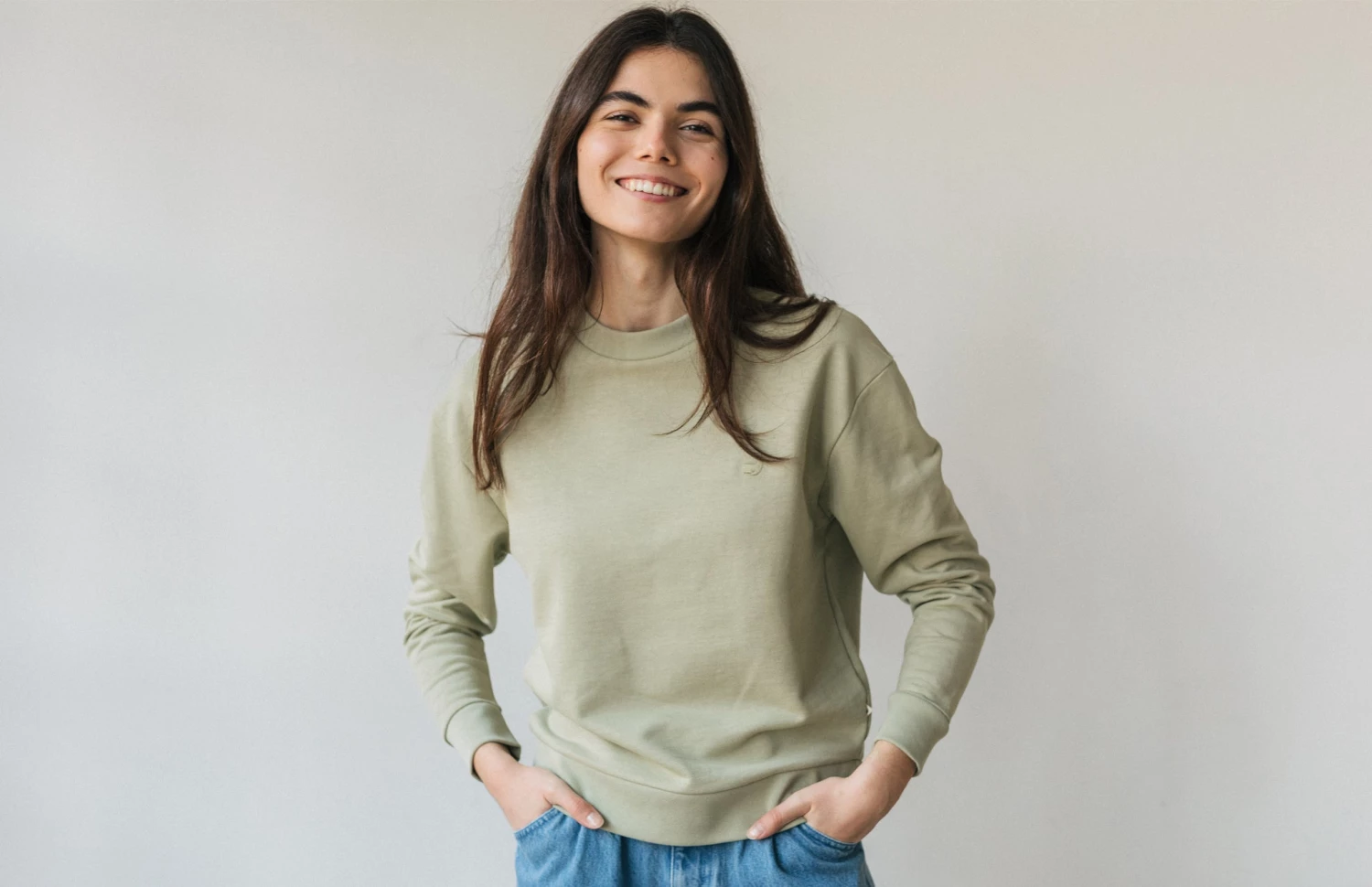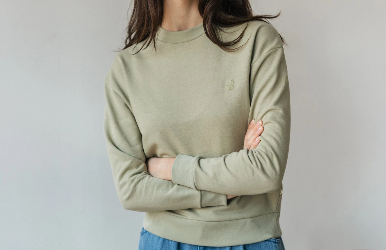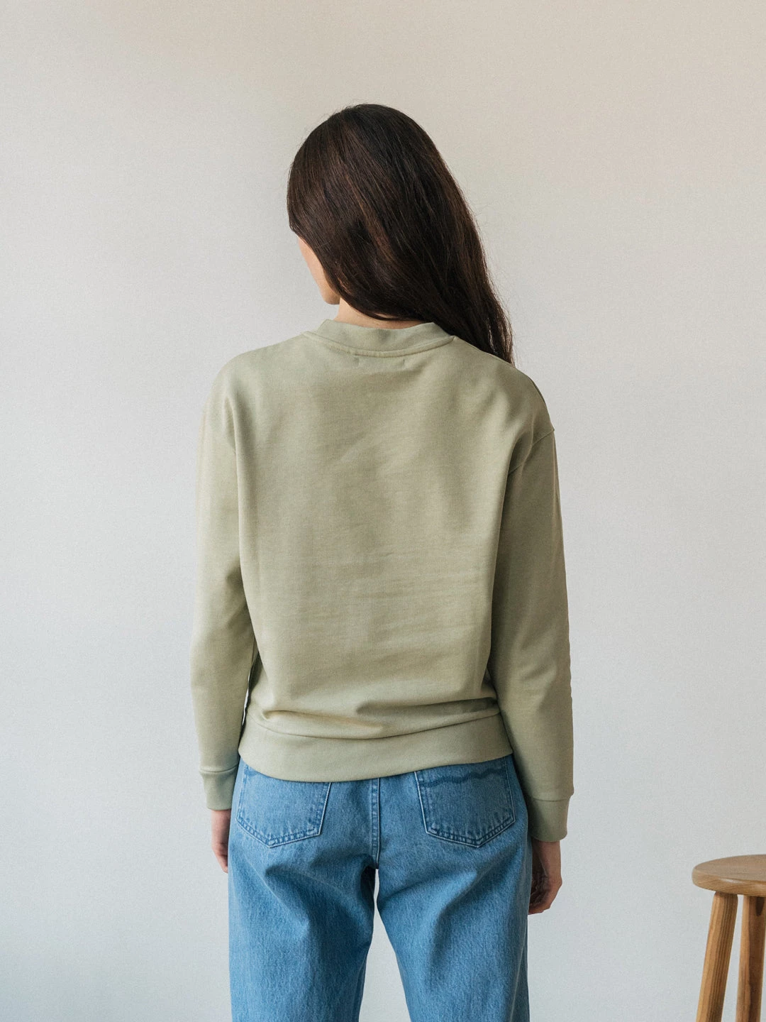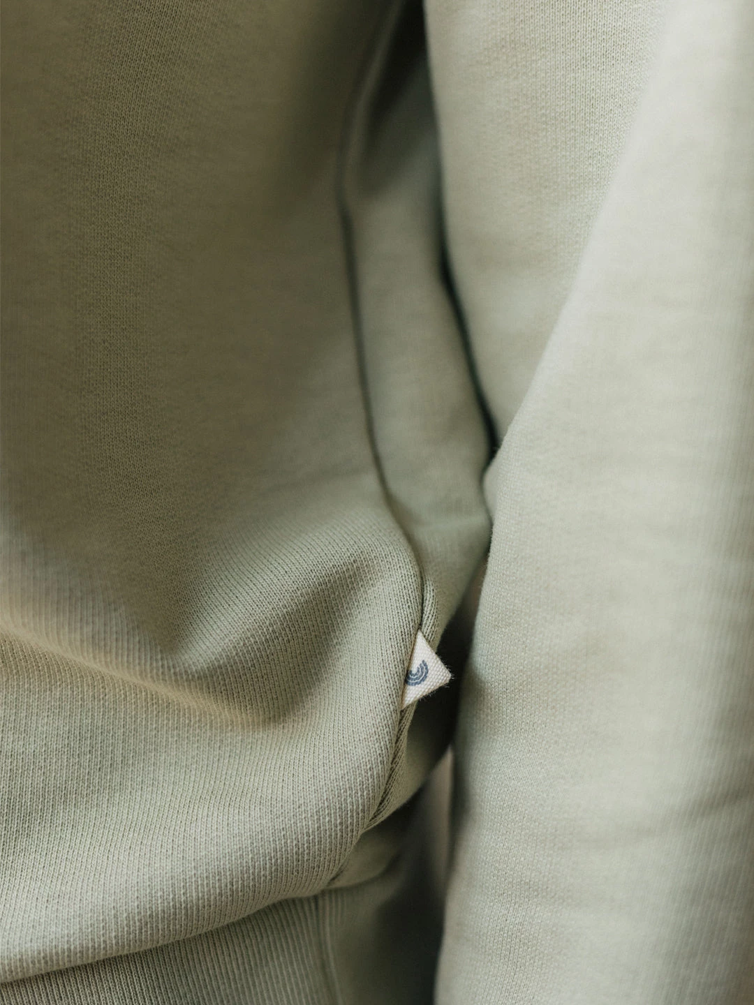 The Calf sweatshirt comes in a beautiful green colour and comfortable design. The finest garment to wear on an everyday basis – pair it with our sustainable denim for the complete look!Â