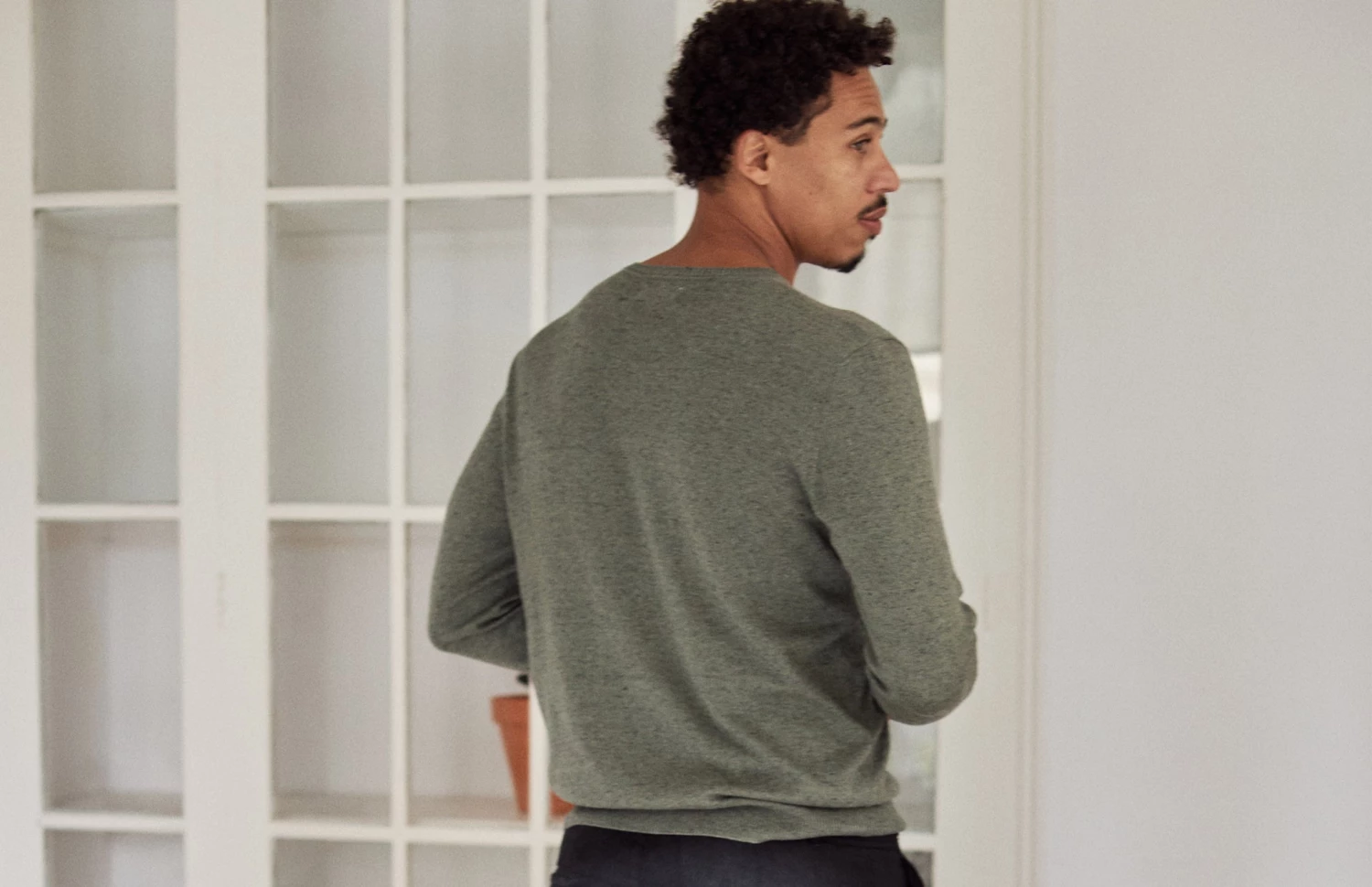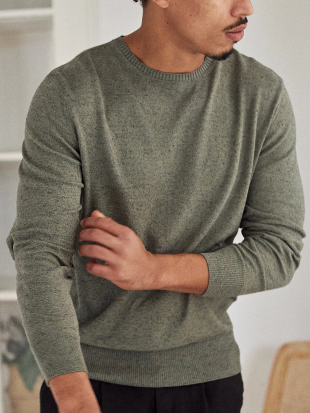 The Canide can be your go-to knit for fancier settings. A beautiful yet simple style garment, with neps all over, slightly dropped shoulders and ribbed edges.Â