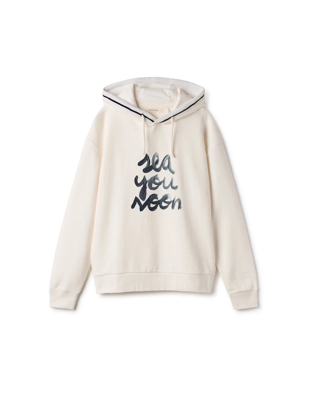 ‘Sea you soon’: a reminder to always come back to the ocean. The Carrizal is a beautifully soft garment, with a drawcord hood.Â