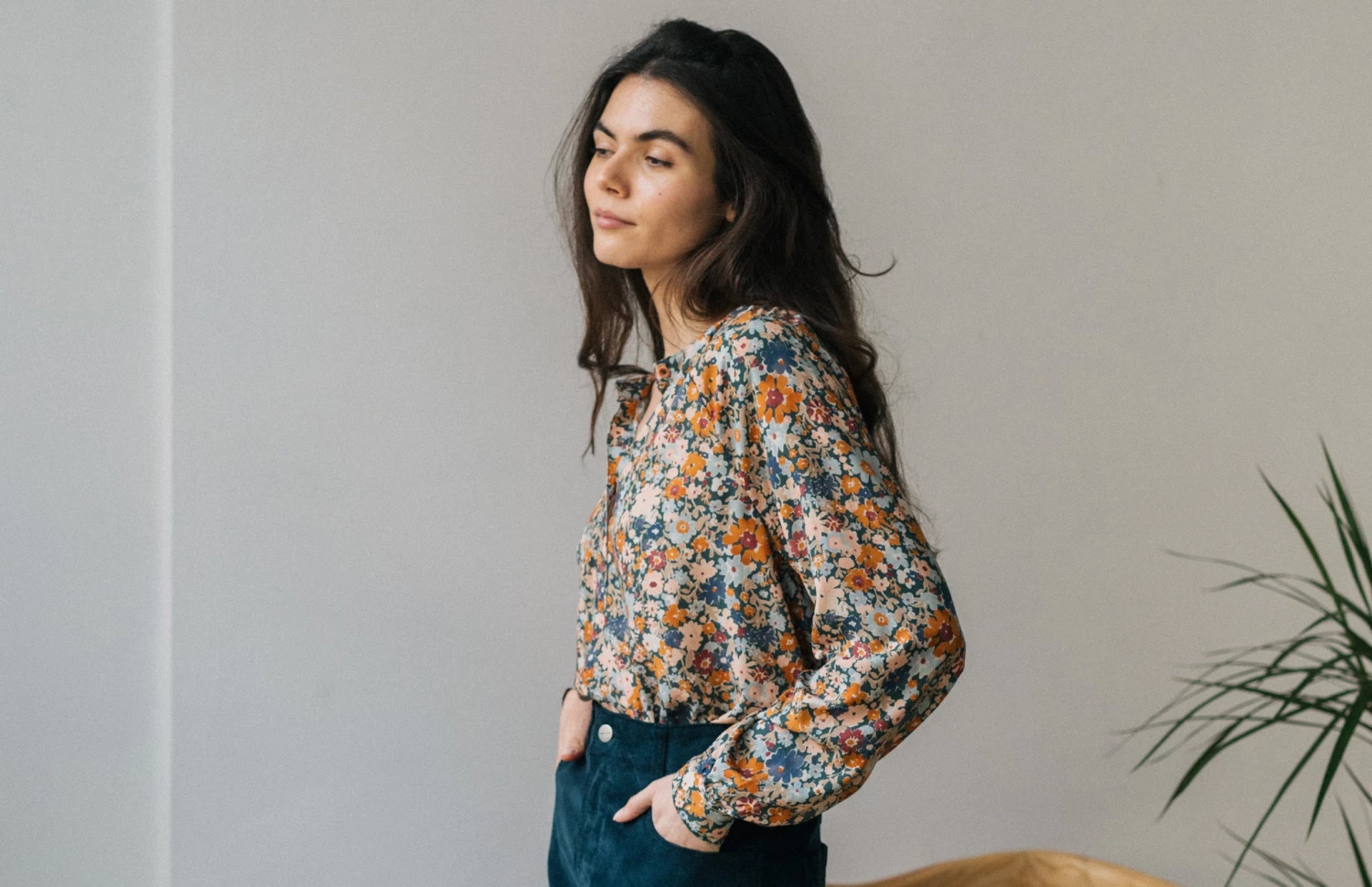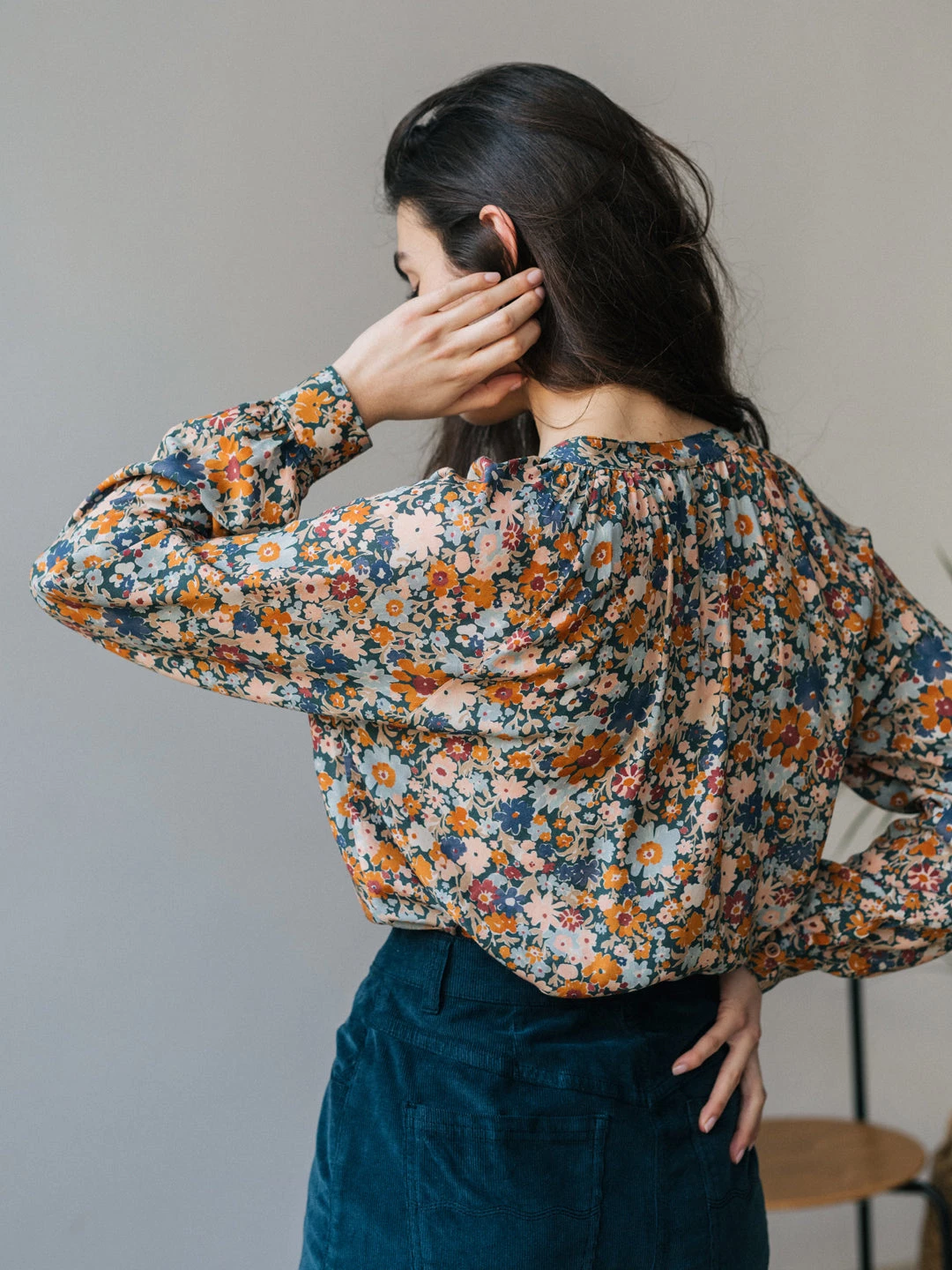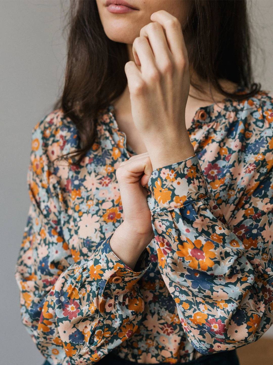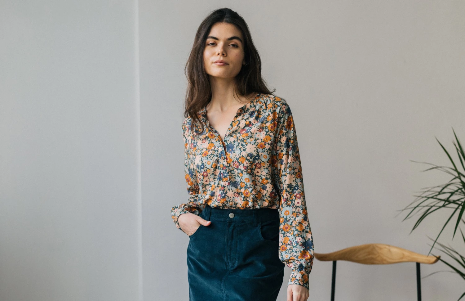 Welcome the warmer weather with this beautiful flower print shirt: a natural eye-catcher. Pairing wonderfully with bell-style jeans and plain flowy skirts.