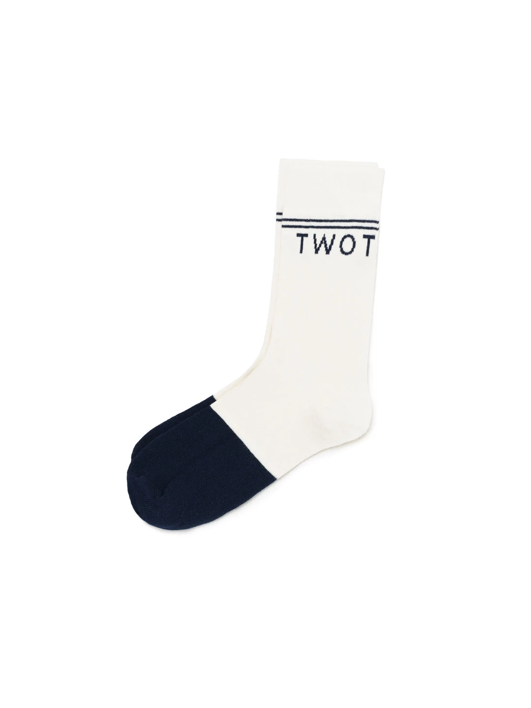 The Colt are a pair of cosy socks with just the right amount of elasticity. They are designed with a high ribbed top featuring “TWOTHIRDS” embroidered around the circumference. Also, they come in a double colour: the base of which is a beautiful navy blue.