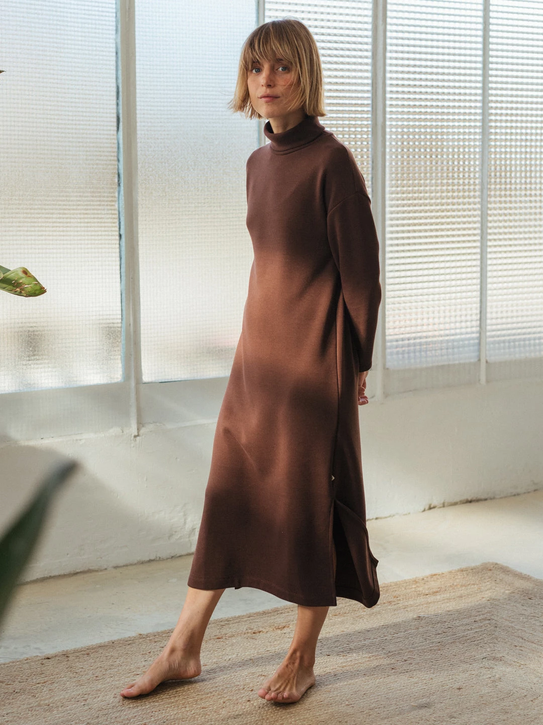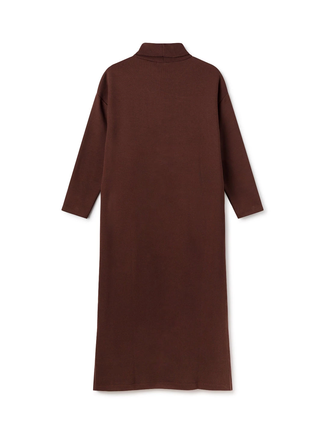 We are excited to bring you the Contoy Dress this season, with a soft and gentle to the touch ribbed fabric. The dress feels extra cosy with its turtleneck for protection from the cold. Designed with side cuts and a midi length.