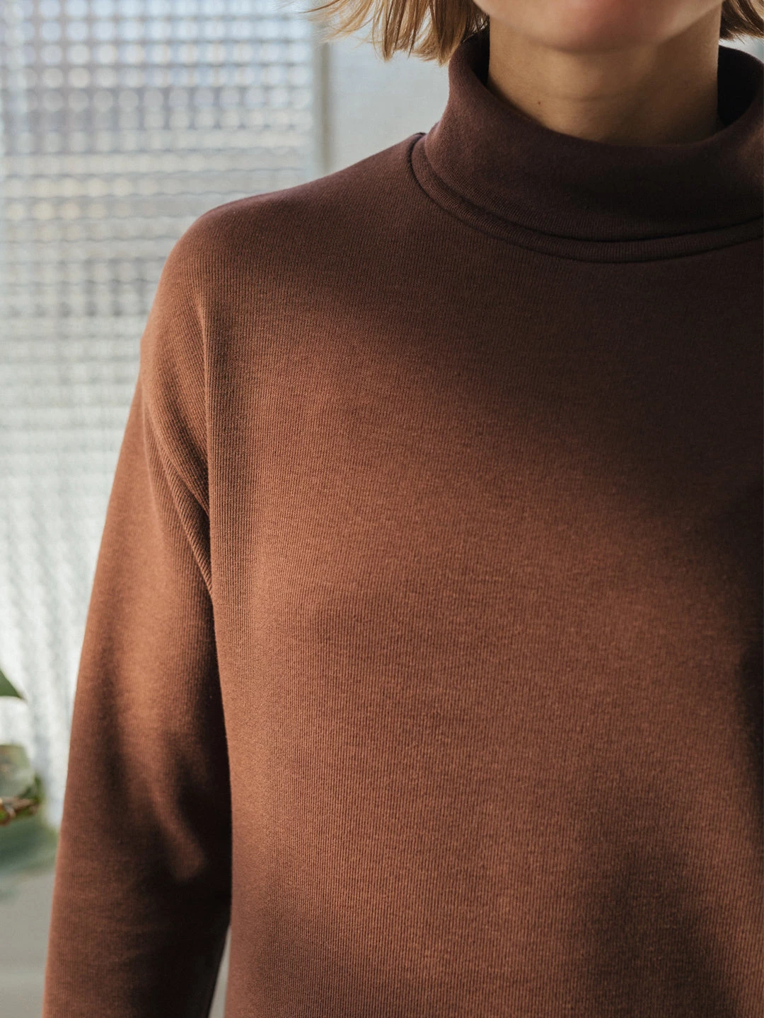 A simple and effortless look, your everyday staple for the colder weather. We love pairing it with a hip-length oversized jacket to enunciate the silhouette of the dress. Â