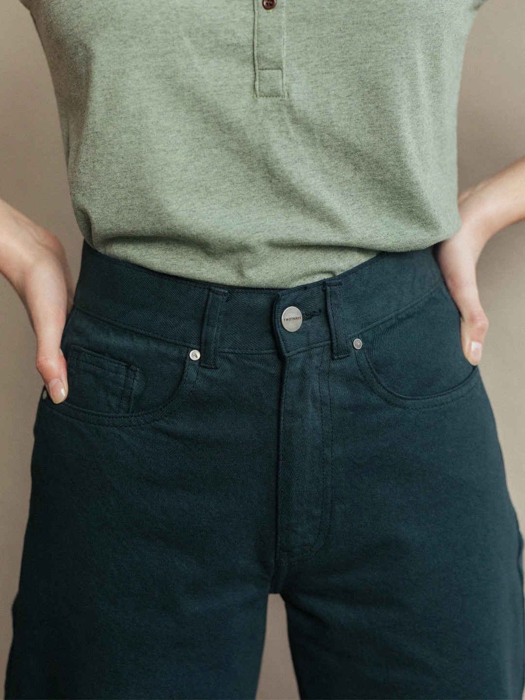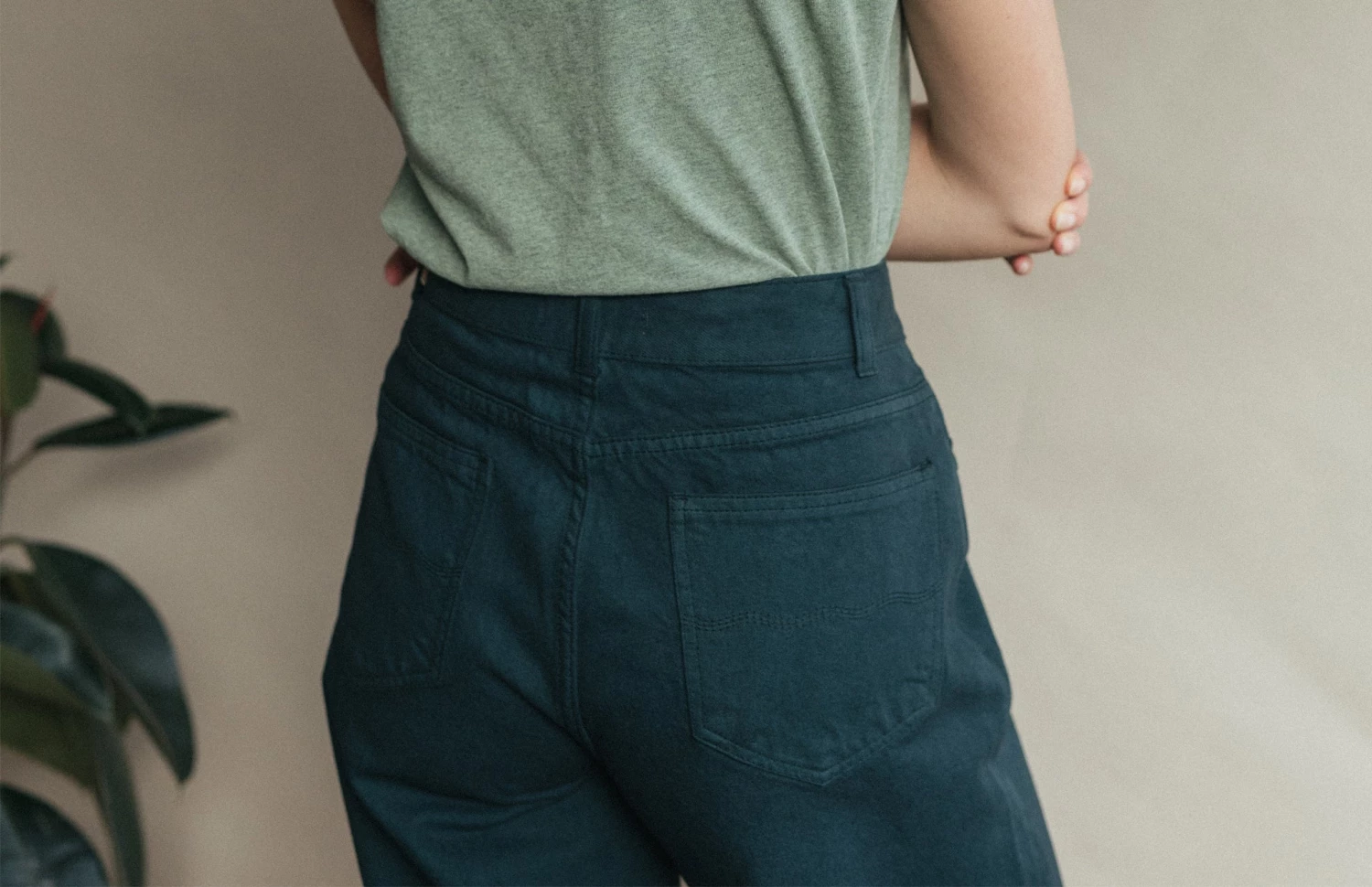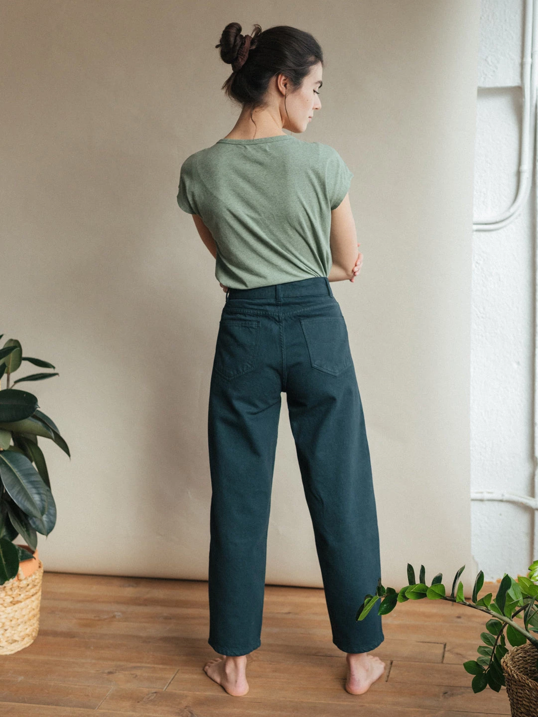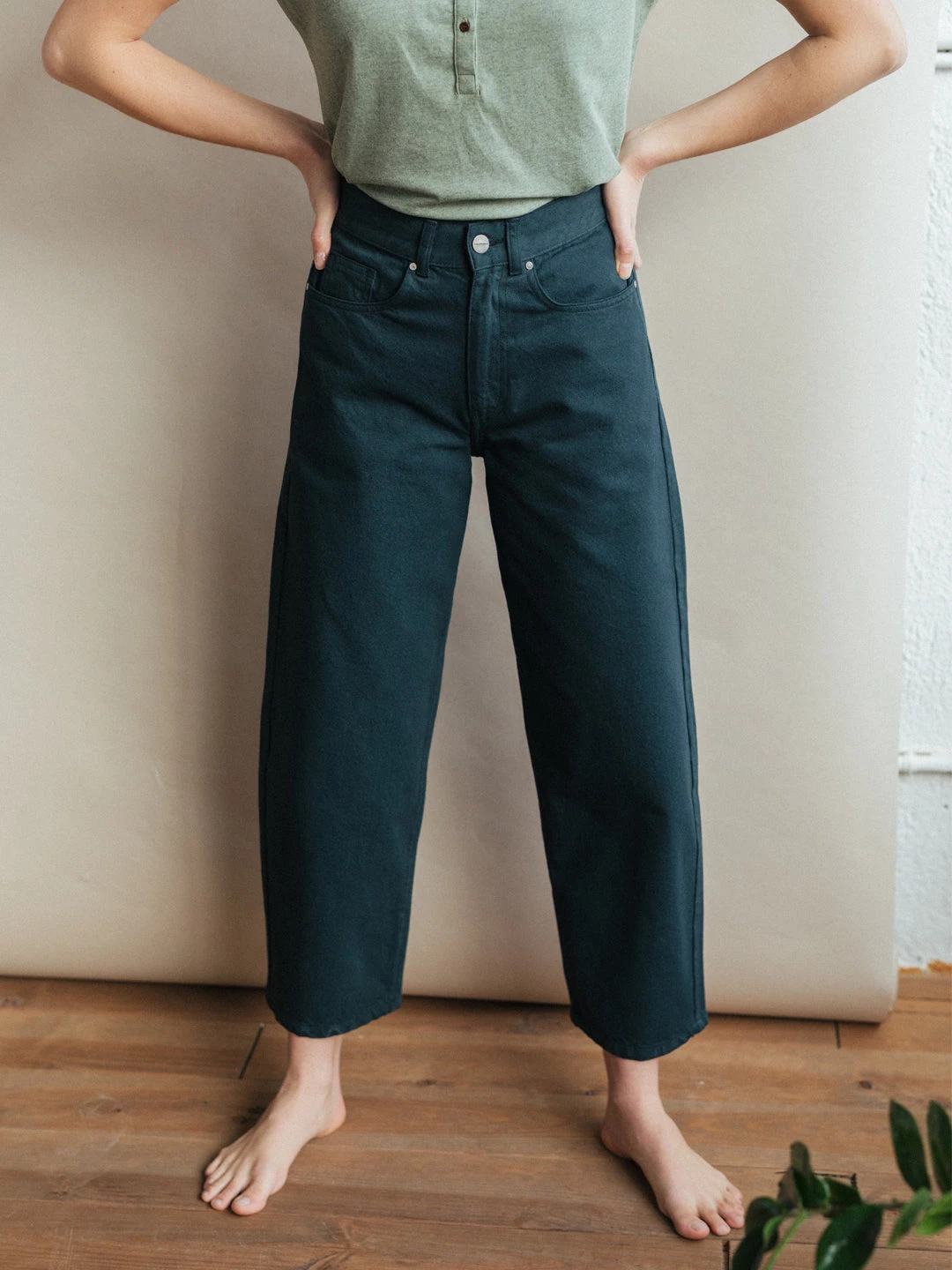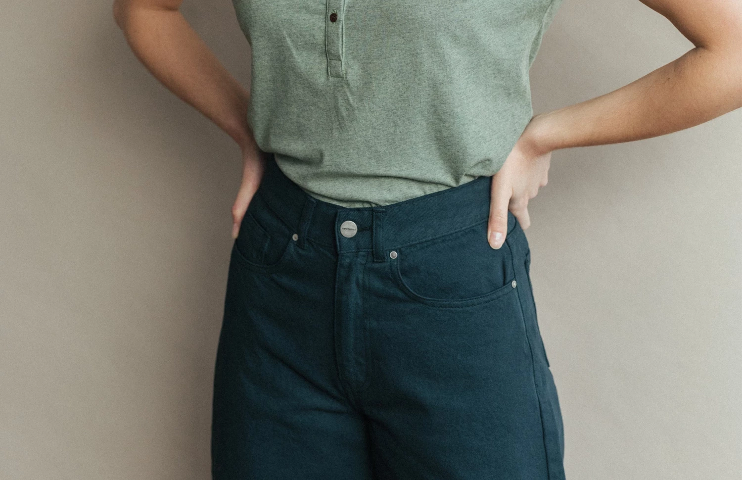 Beautiful colours with a go-to style, our sustainable denim is made to last. Make it part of your everyday wardrobe, we love pairing it with a turtleneck tee and cropped knit over the top.