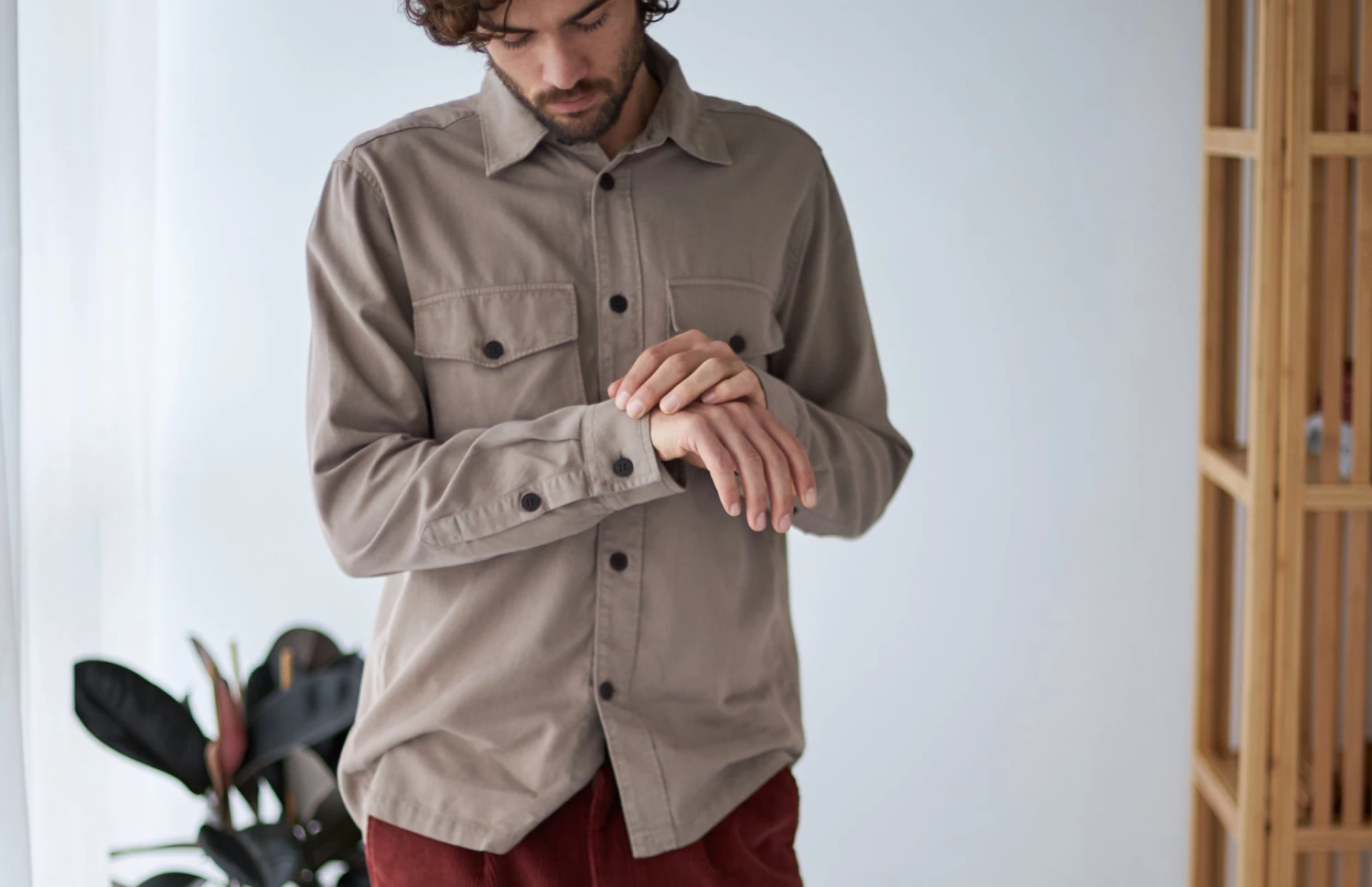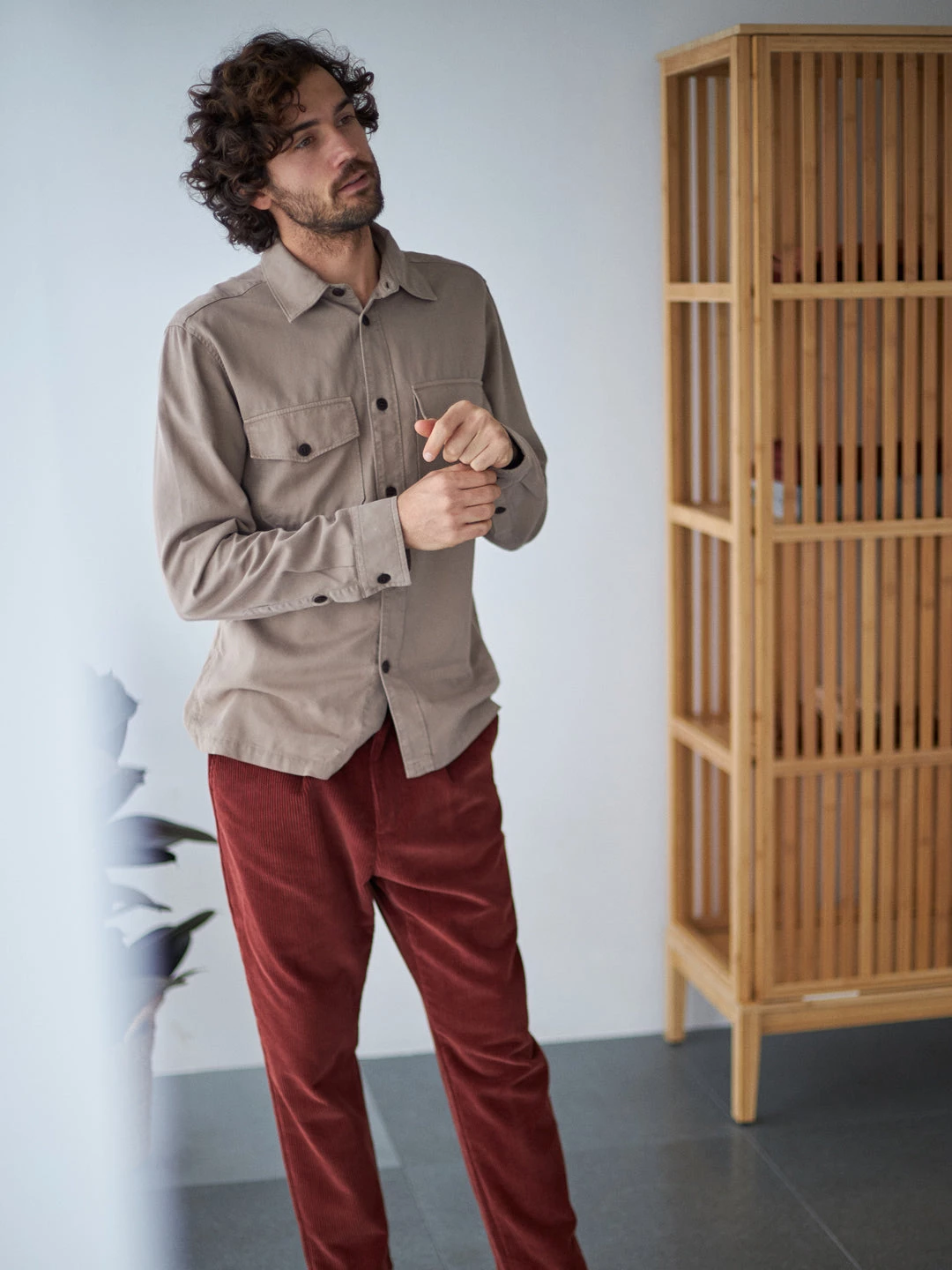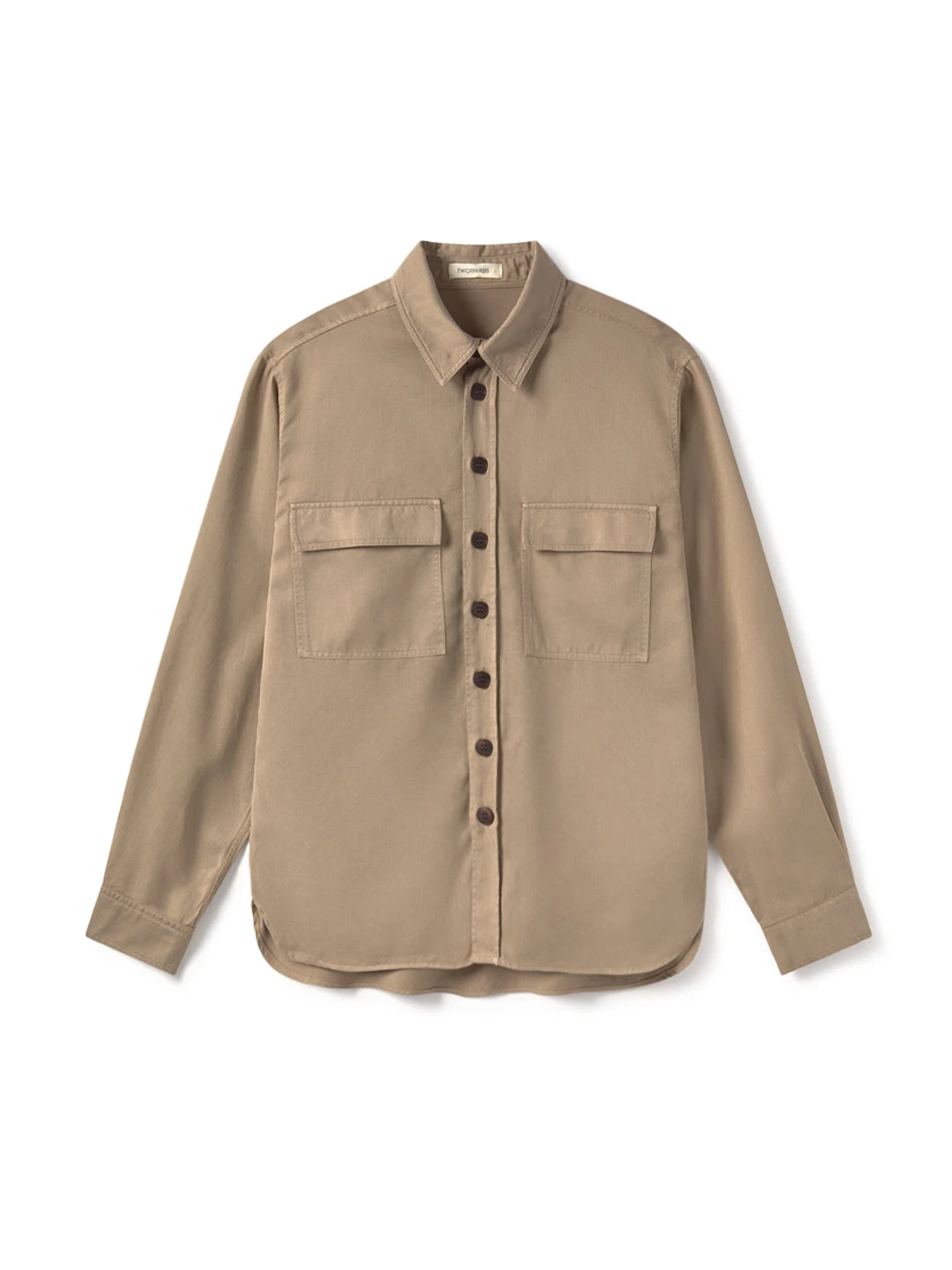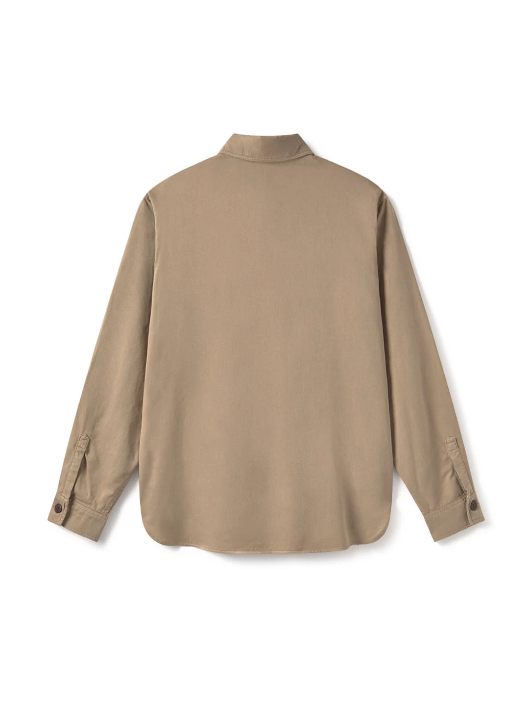 Cotton from post-and-pre-consumer sources and pulp from sustainably managed forests give life to our Funen shirt. With a regular fit and collar, naturally sourced corozo buttons, two pockets on the chest and cut edges on both sides making the back length a bit longer.