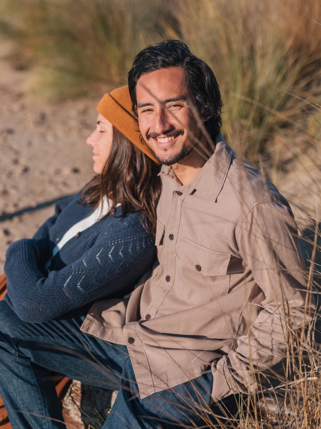 We love how many styling possibilities a shirt has! Tuck our Funen into some beige chino trousers and put a long black coat on top. And if the day gets colder you can pull a knit over the shirt and let the collar show for an even smarter look.