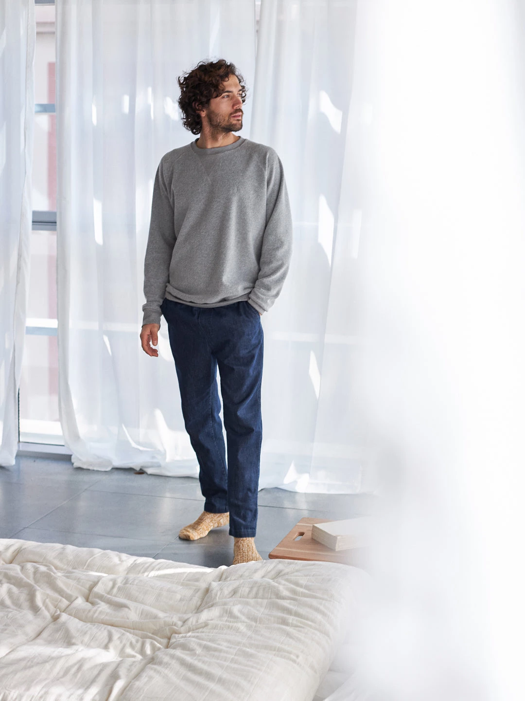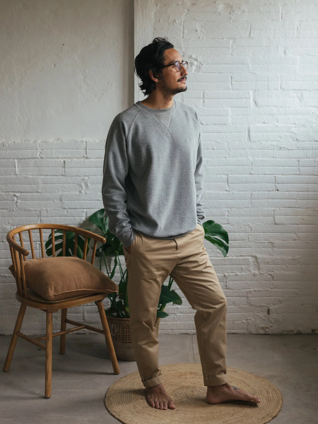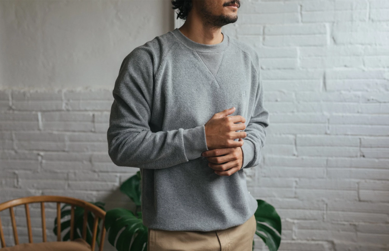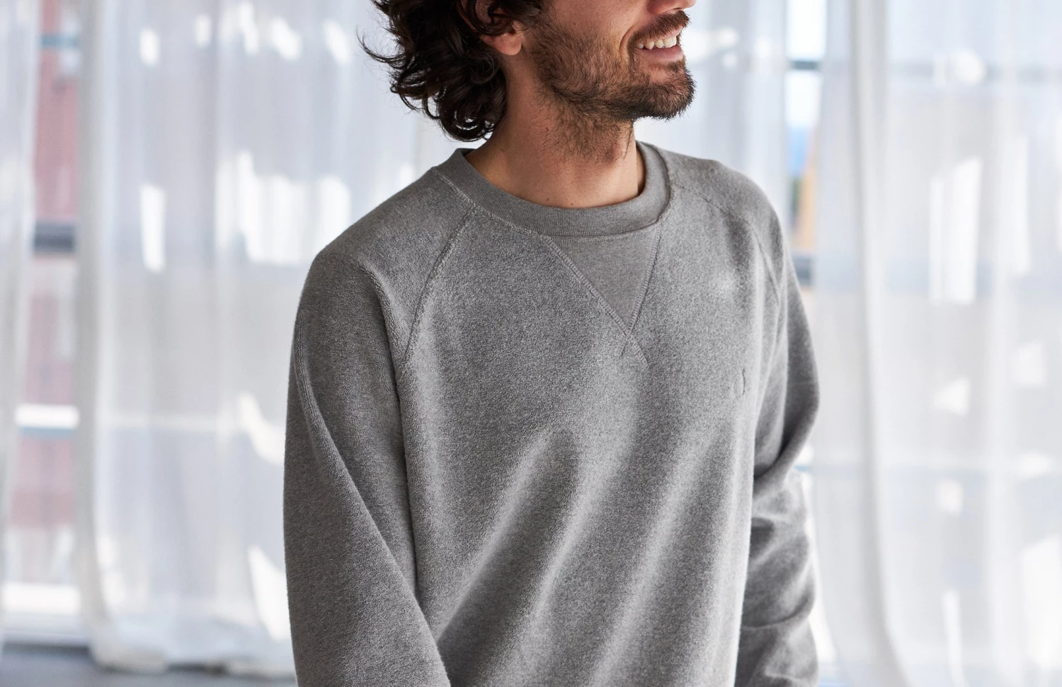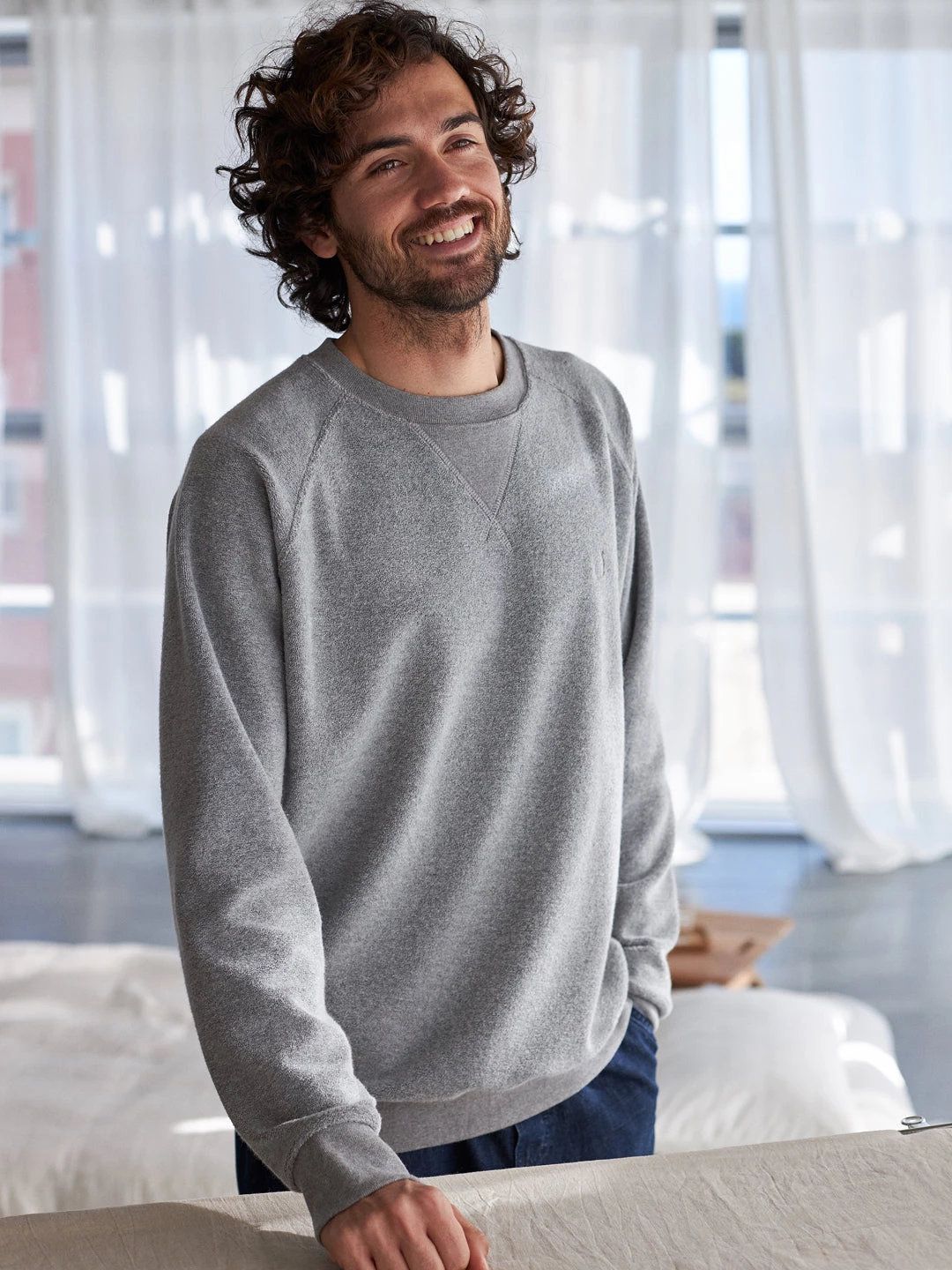 Thanks to the neutral colour of the Grant sweat, it will be as easy as it gets to match with the rest of your wardrobe. Try pairing it with a bold pair of trousers for a strong look!
