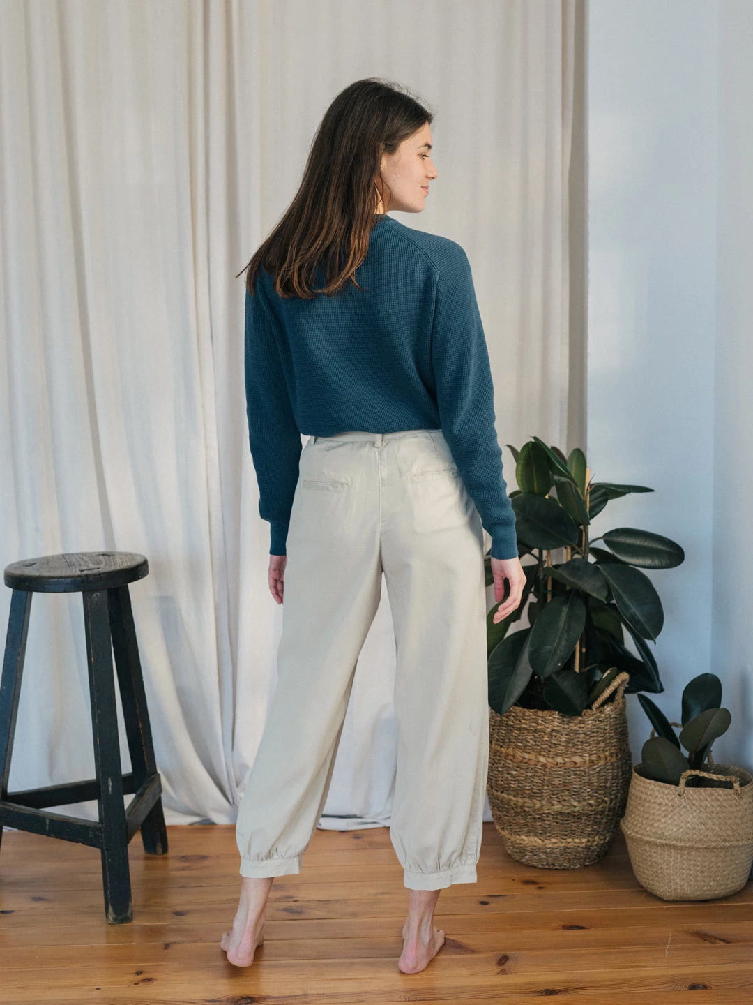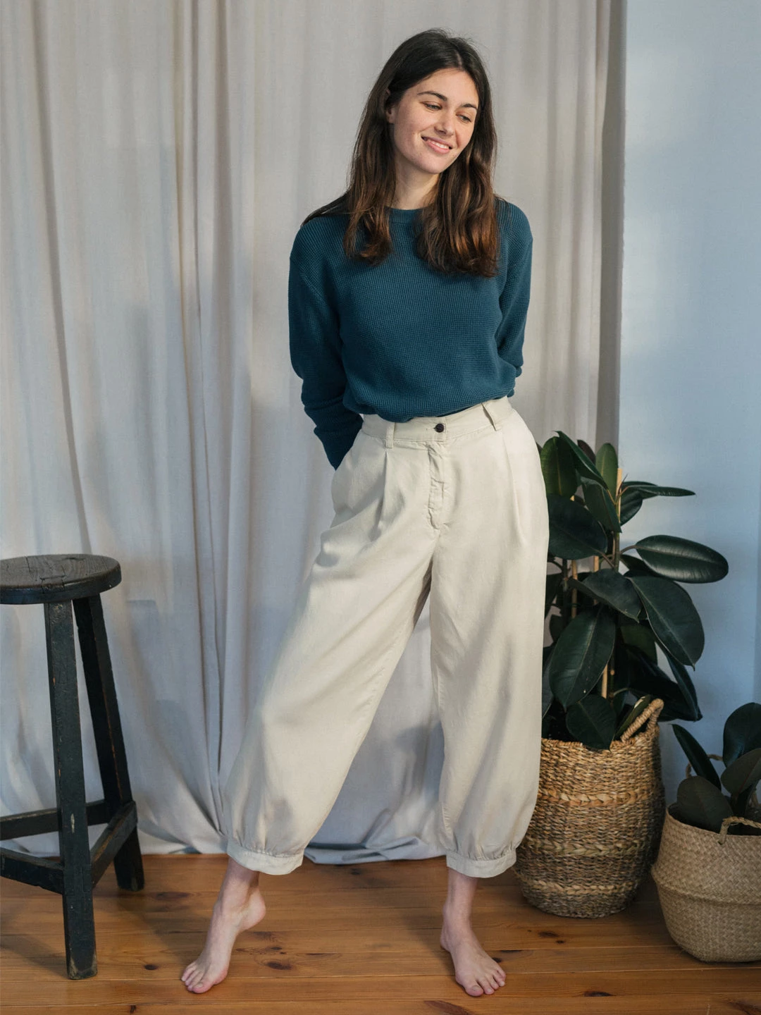 The Holbox trousers are a great choice to pair with tight tops for the warmer seasons as they are rather lightweight. If it gets chilly, we love how they look with an oversized cardigan as well.