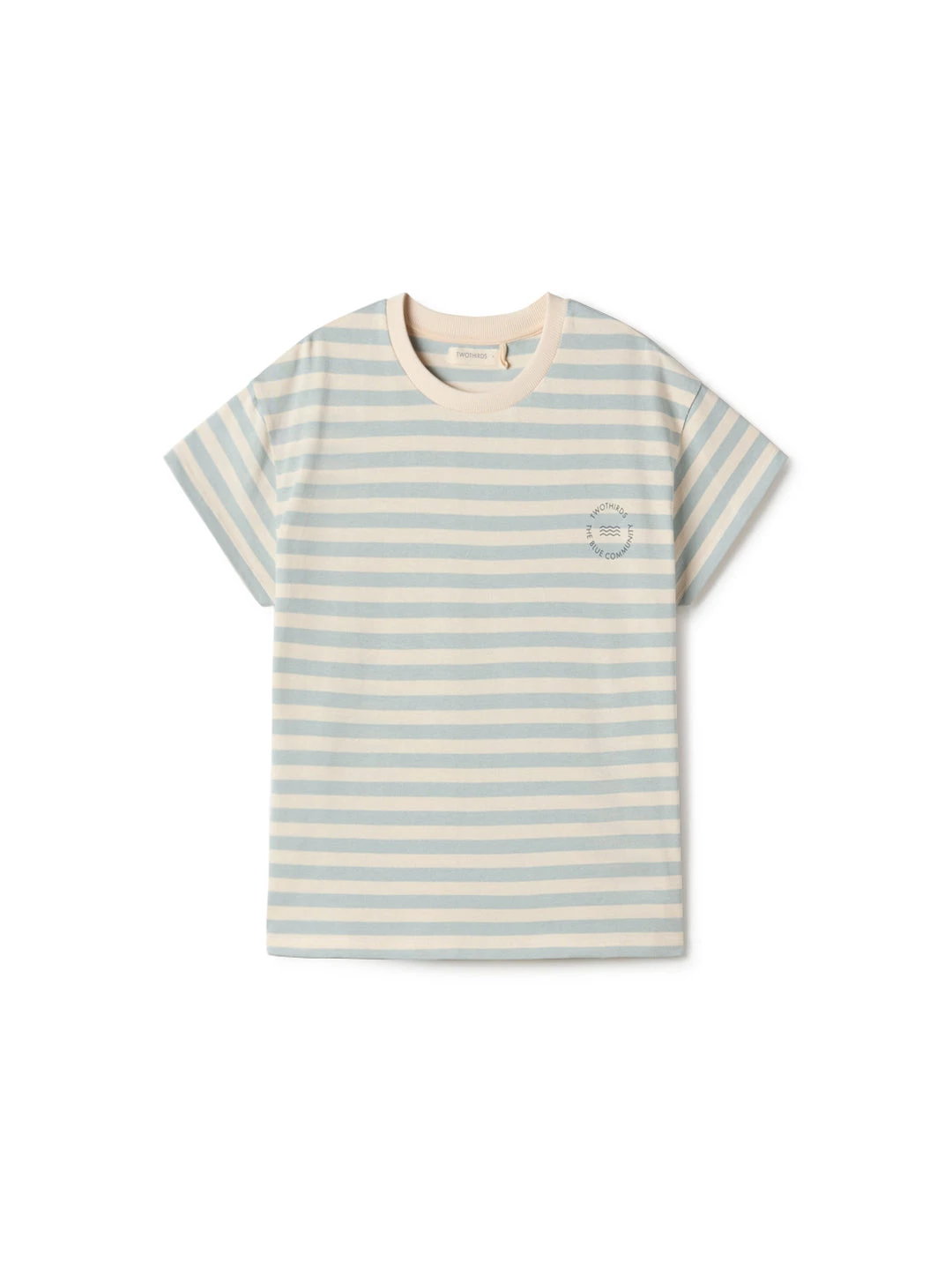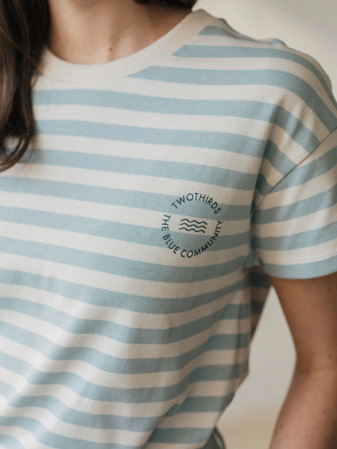 The Hugla is a maritime style top with beautiful stripes all over. Designed in a soft and gentle fabric with a “TWOTHIRDS, THE BLUE COMMUNITY” print on the chest, for those who share our love for the ocean. The tee comes with a ribbed round neckline, in a regular fit and hip-length cut.