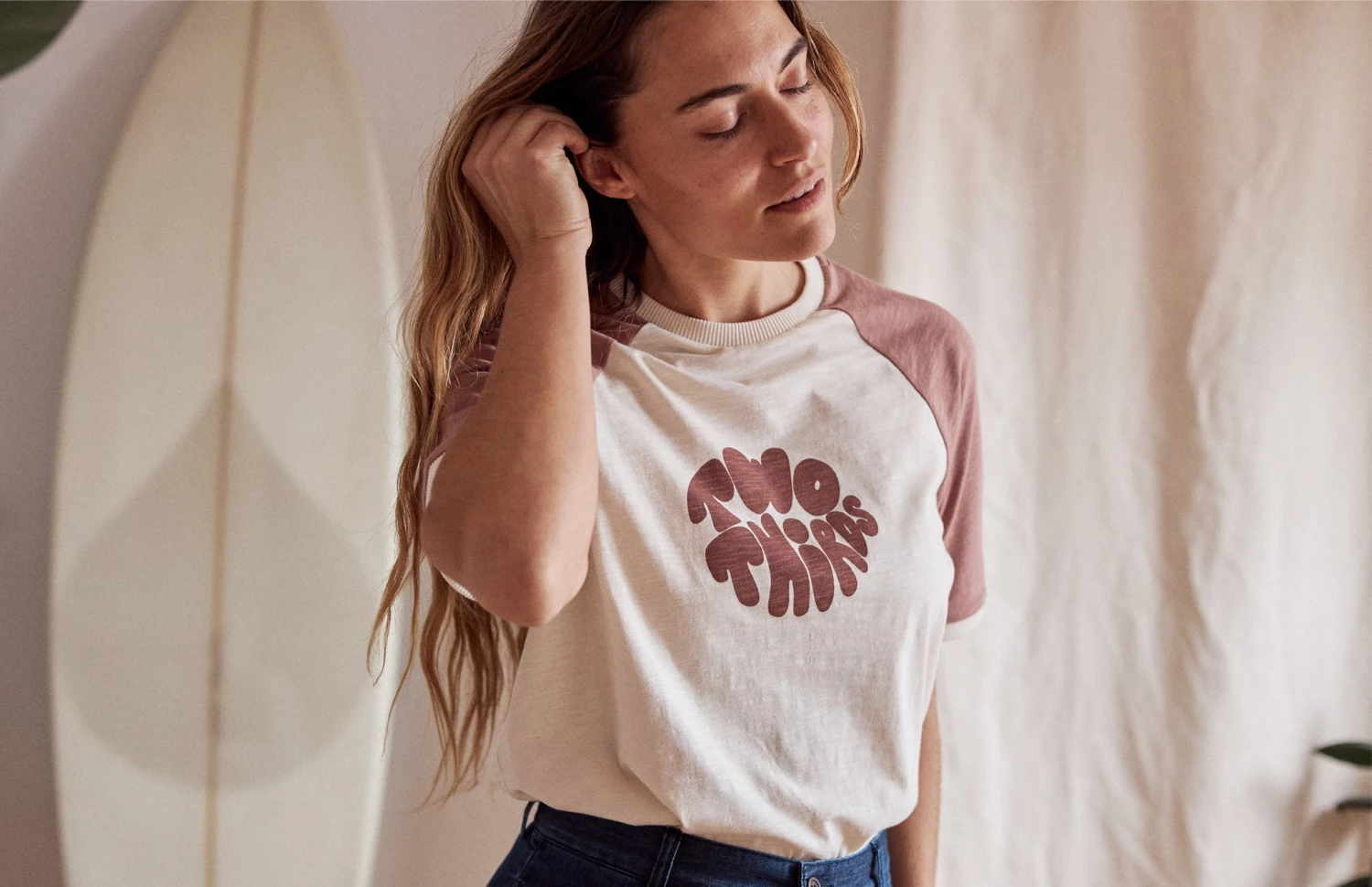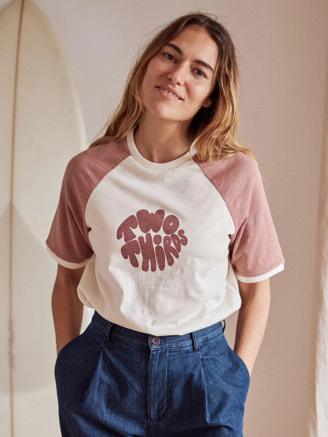 Fashion persists through time. Here’s a vintage style to prove it: the Idse! A beautiful graphic tee with ‘TWOTHIRDS’ printed on the front and matching sleeves for a contrasting look.Â