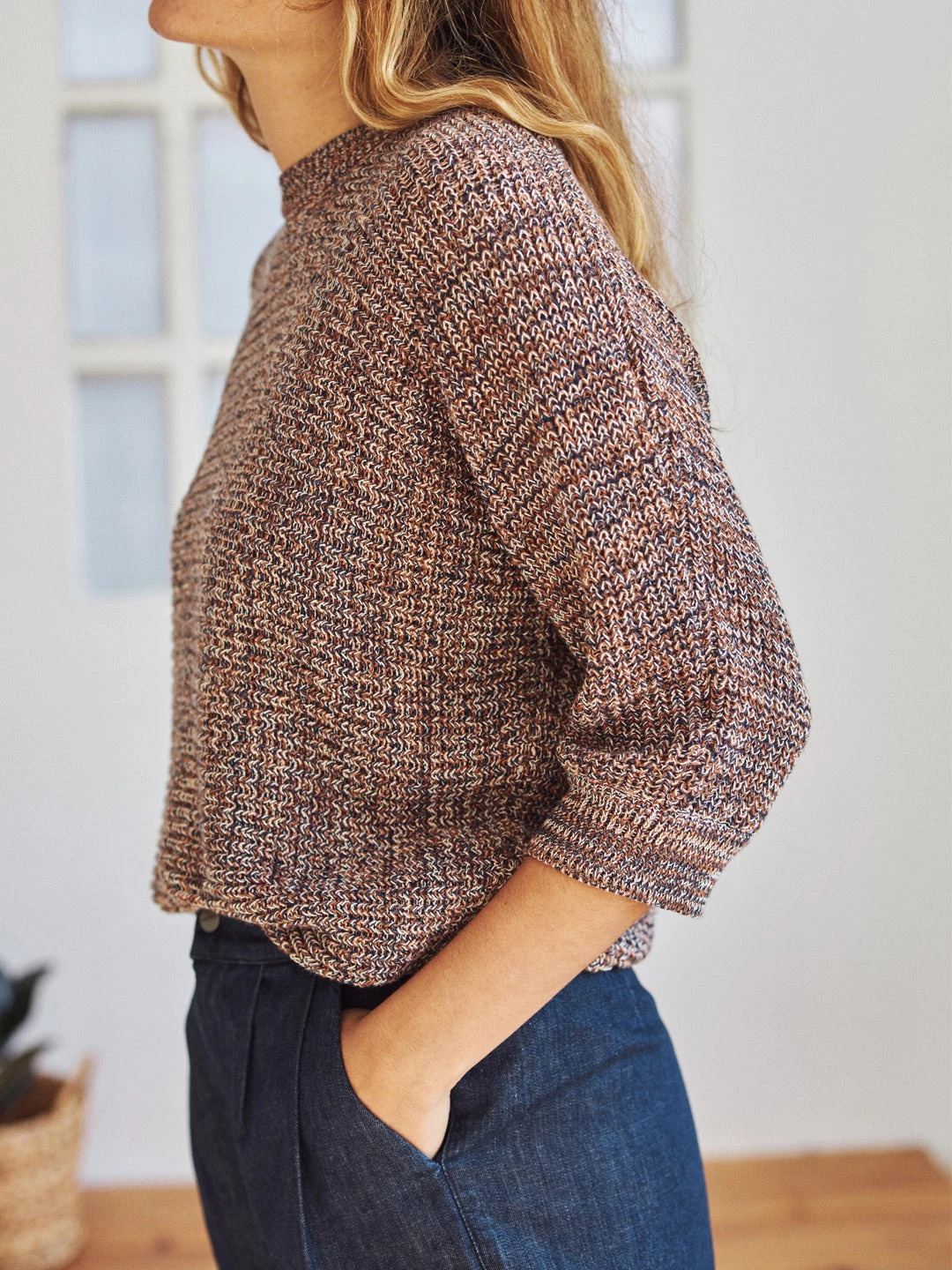 Bringing a touch of warmth and colour to your sustainable collection with the Islita knit. Woven with a beautiful multicoloured thread, the garment is soft and has ribbed edges for optimal comfort. It is designed with a fairly loose fit but is cut rather short.Â
