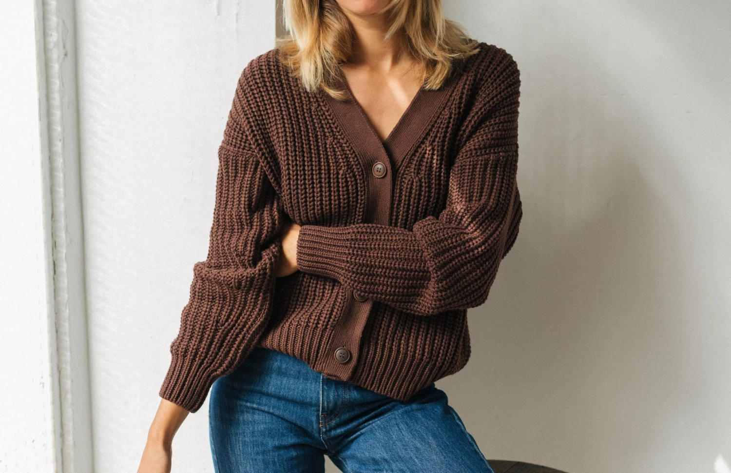 You can easily wear the Itaparica as an oversized cardigan, opened with a turtleneck tee underneath or buttoned up as a knit with a basic white tee.Â
