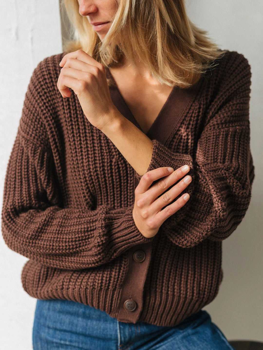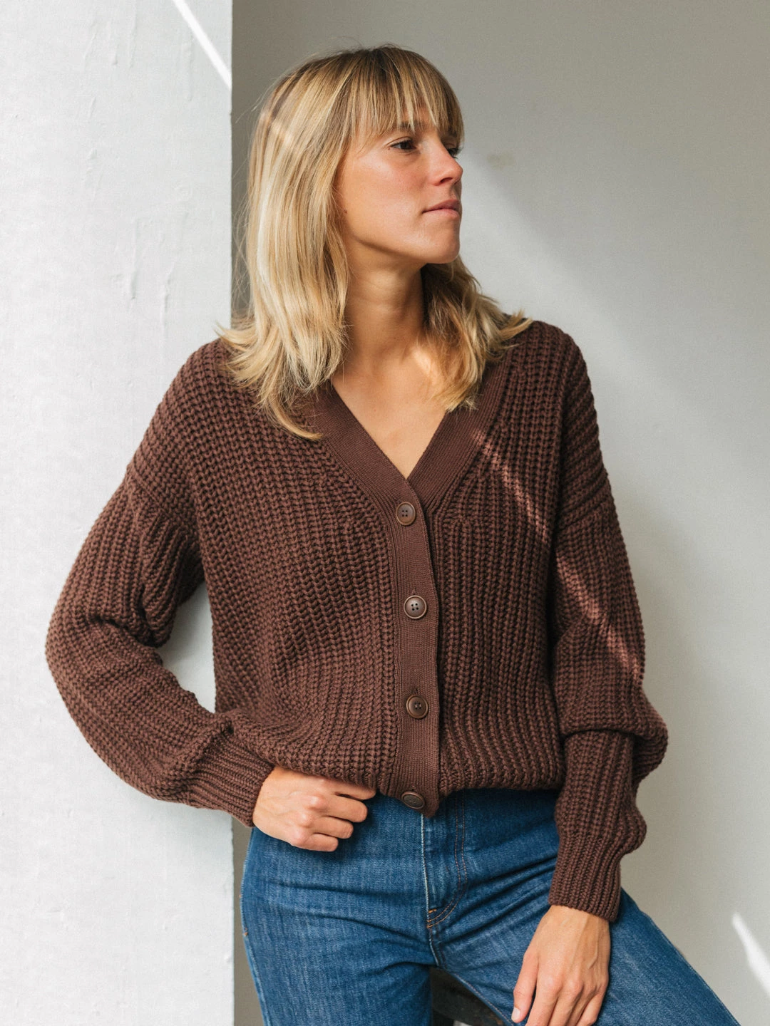 Who doesn’t love a cosy cardigan when the cold seasons come? The Itaparica will not only warm you up, but it will also feel great against your skin thanks to pesticide free organic cotton. With dark brown corozo buttons and a rather loose fit.Â