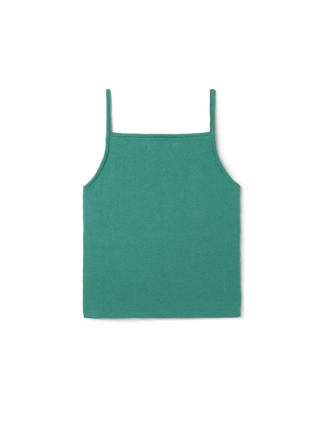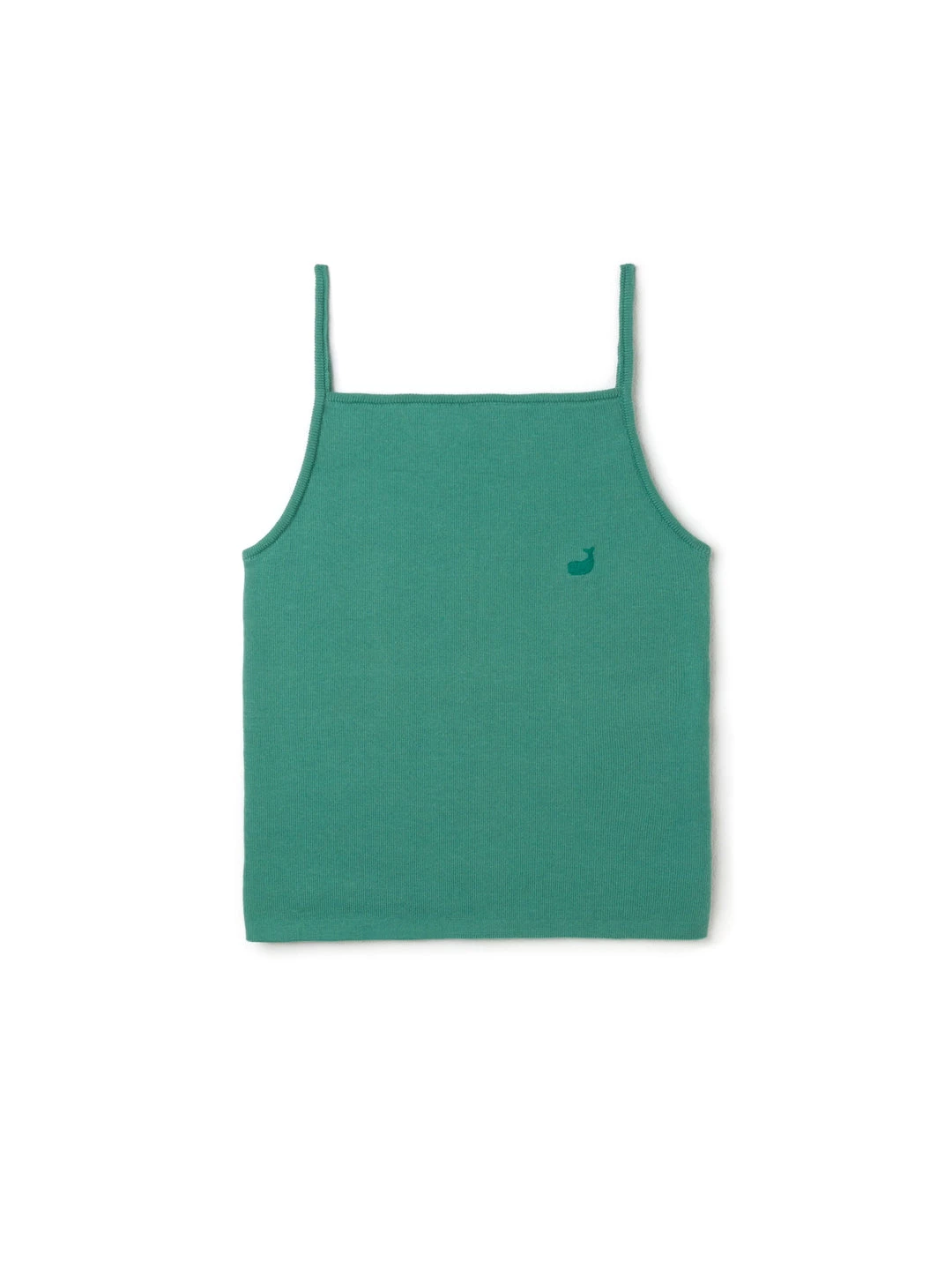 We bring you our new sleeveless top, a great addition to your sustainable wardrobe for those warm sunny days! With thin straps over the shoulders, a rather slim fit and whale embroidery on the chest.Â