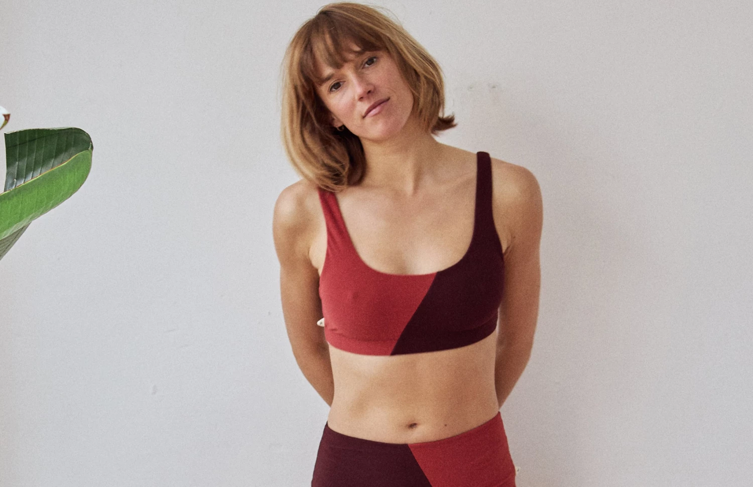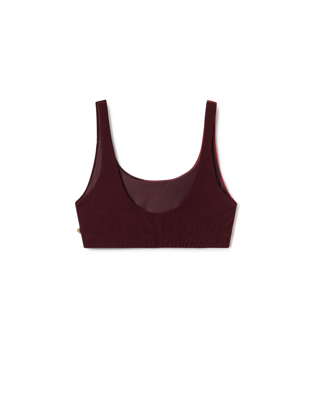The Koch top is a sporty style, with wider shoulder straps and a rounded neckline that goes lower at the back. It stands out for a plush terry fabric that yields adaptability and softness.Â