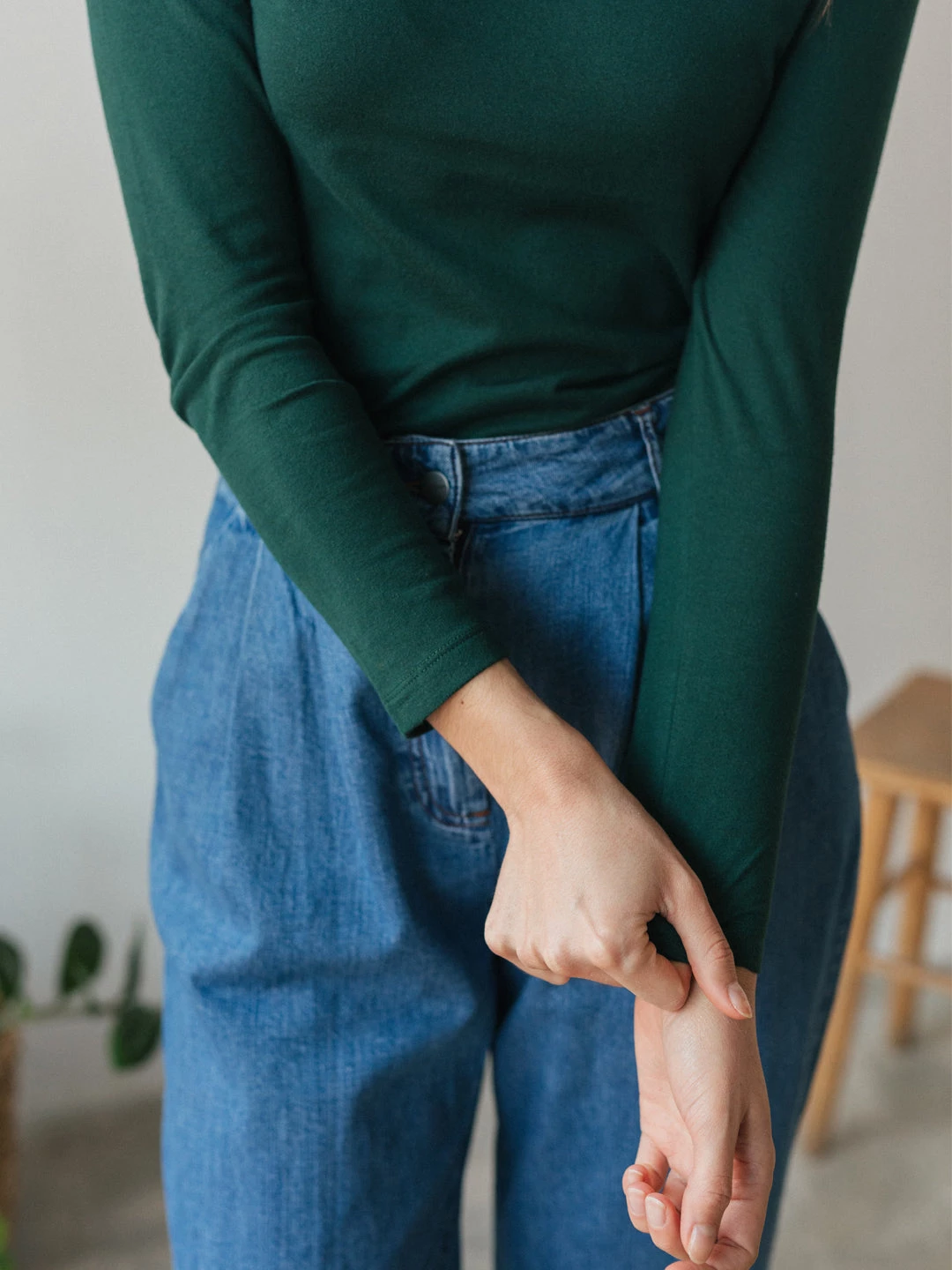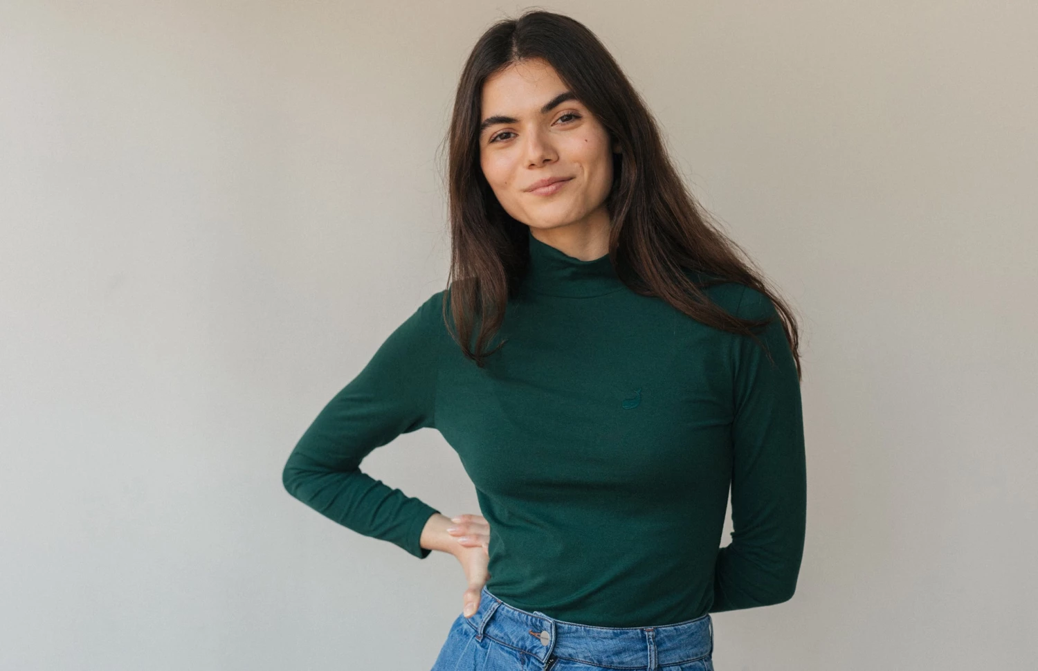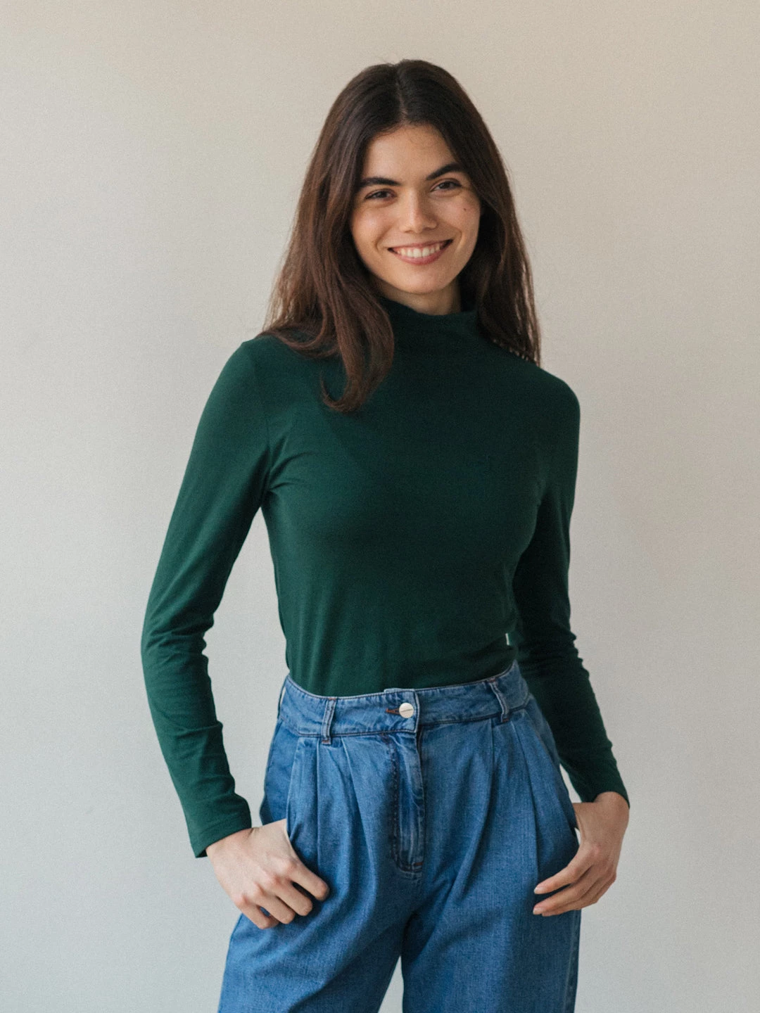 A wonderful underlayer for your autumn and winter outfits. Perfect to wear under a knitted vest, a long dress or just by itself with high-waisted jeans – versatile and sustainable!