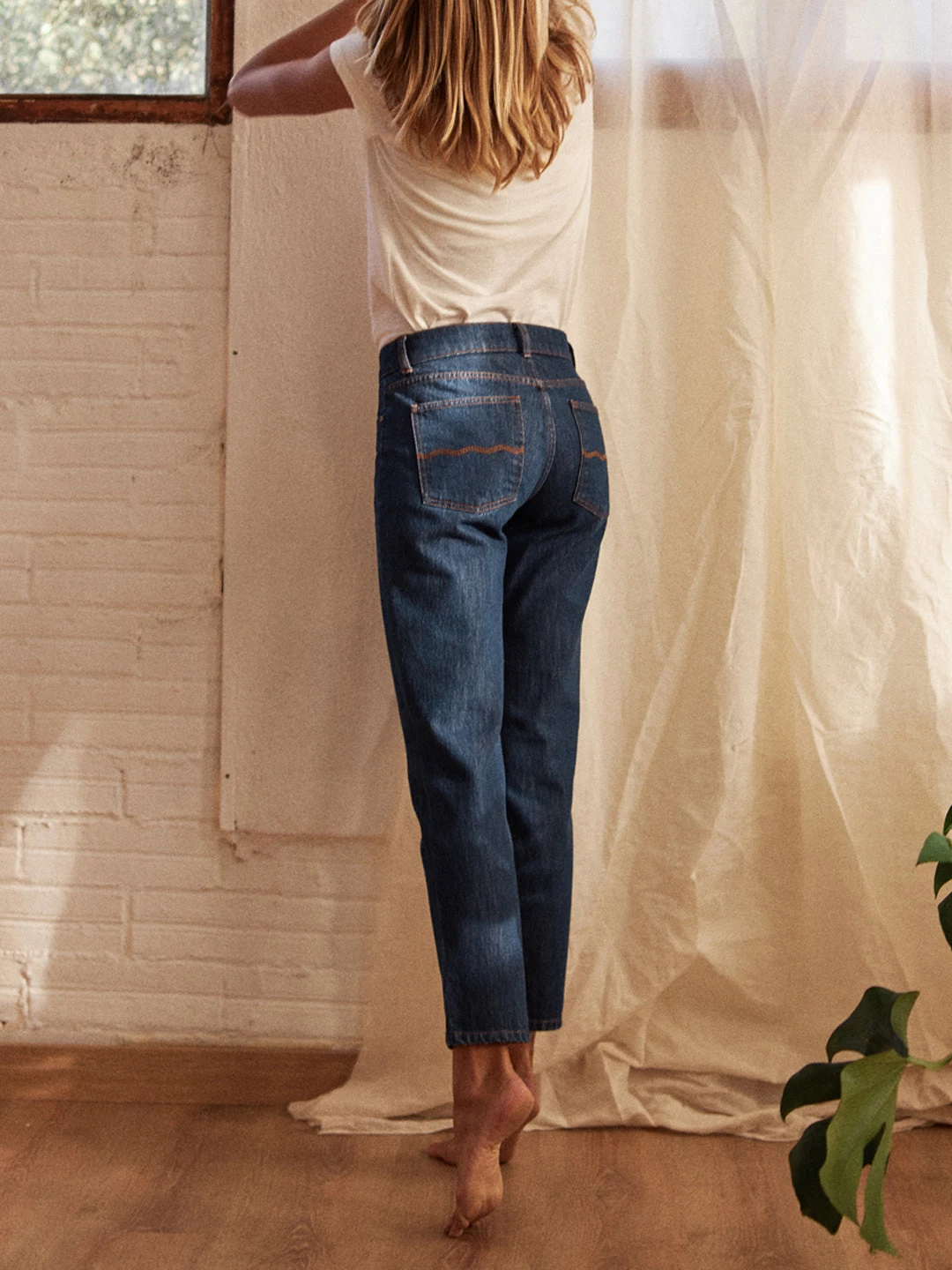The Marin jeans will fit smoothly with your favourite outfits! We love pairing them with a breezy TENCELâ„¢ Lyocell shirt or a cropped top to enjoy the sun. But of course, this garment is a year round staple: regardless of the weather, wear sustainable denim.Â