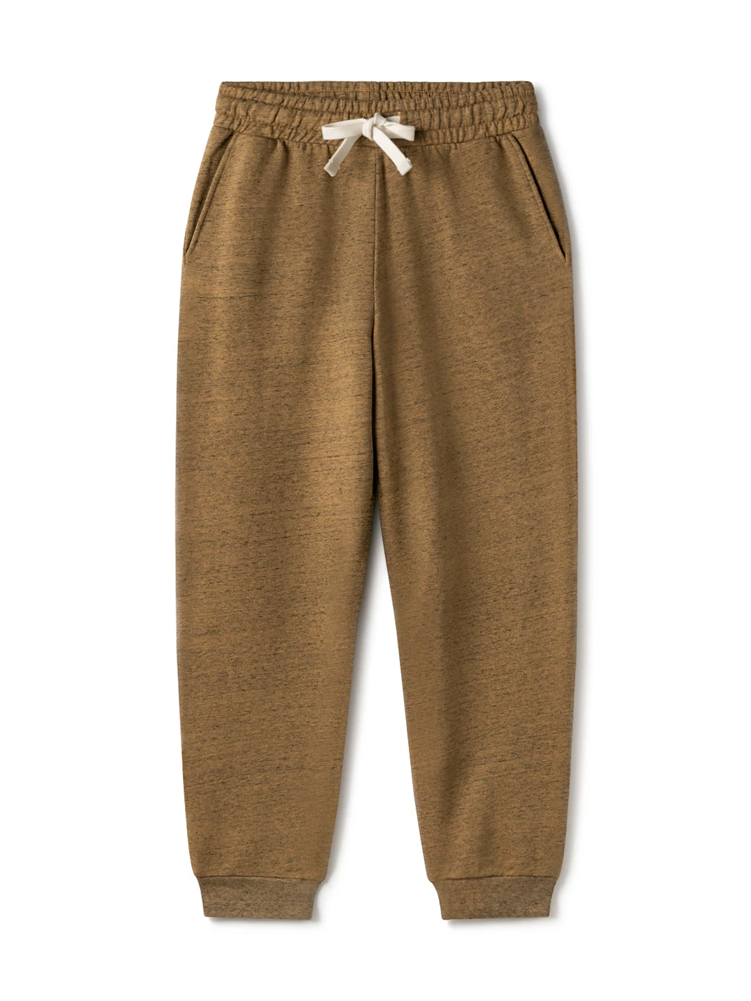 Comfy sweatpants are always a nice staple in one’s wardrobe, hence the Nayau. Designed in a light brown colour, with an elasticated waistband and an inside cord. These pants come with 2 pockets in total, ribbed bottoms and a fairly loose fit.Â