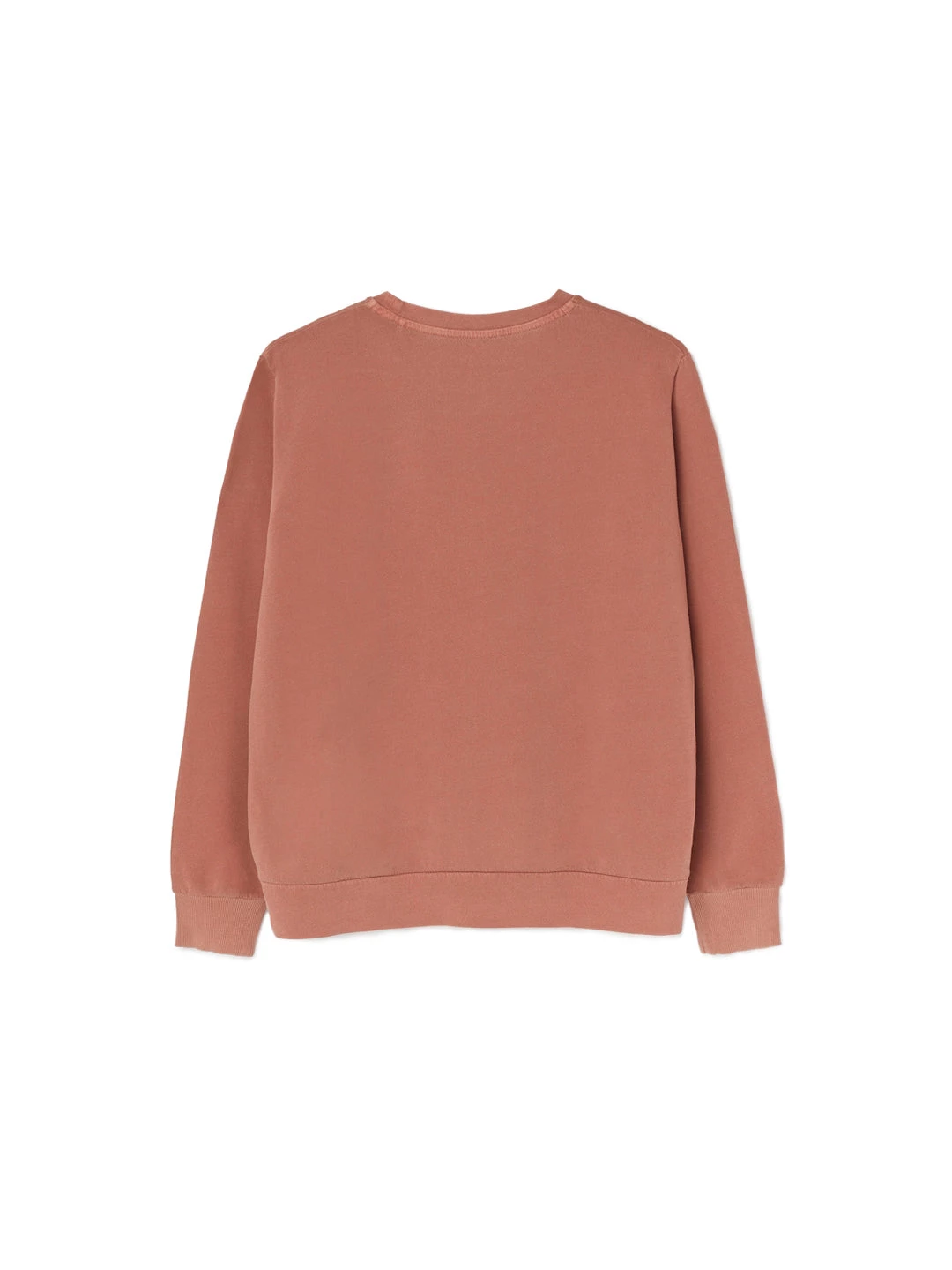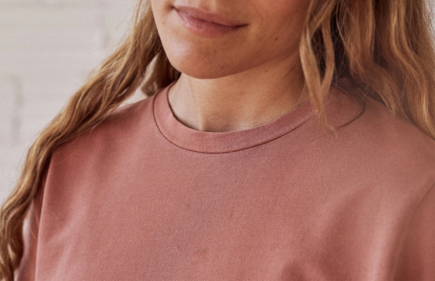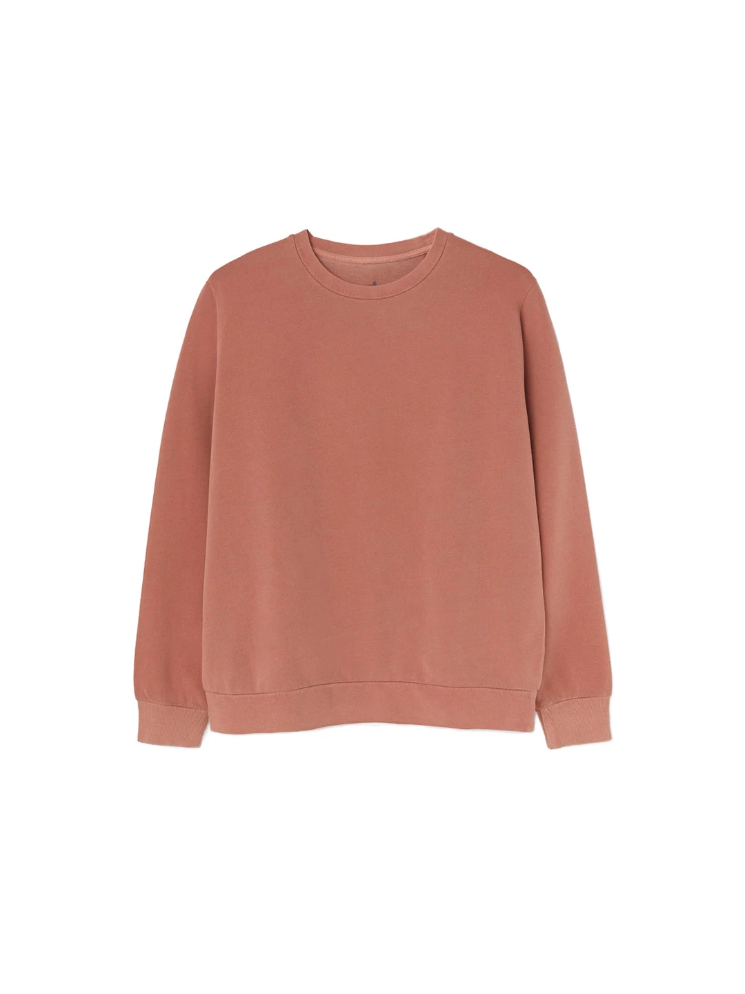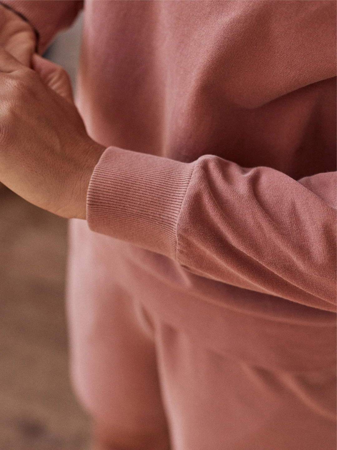 The sustainable sweat comes in a regular fit, overdyed colour and hip-length cut.