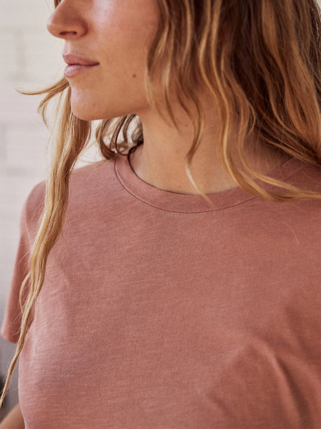 The Balta is a simple soft top designed in an organic fabric that is coloured using natural minerals. With a smooth overdye, the tee comes in a fairly slim fit and hip-length cut.