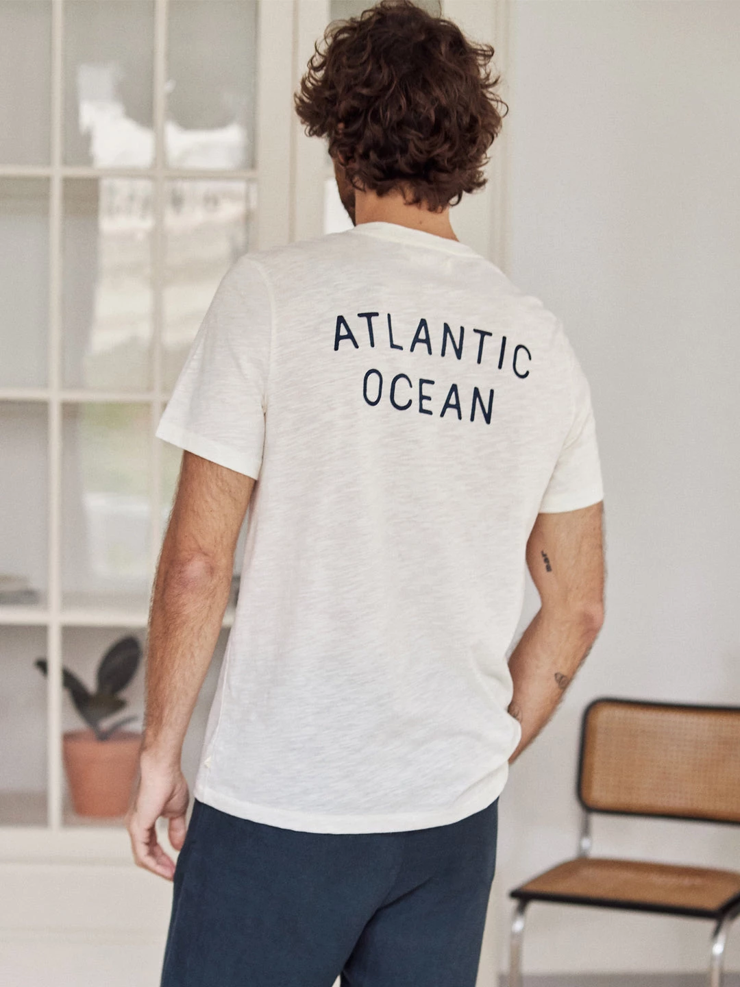 For people who love the ocean, become a part of the blue community. The Cambaredo t-shirt is designed in an ecru colour with another print on the back and front in navy colours.