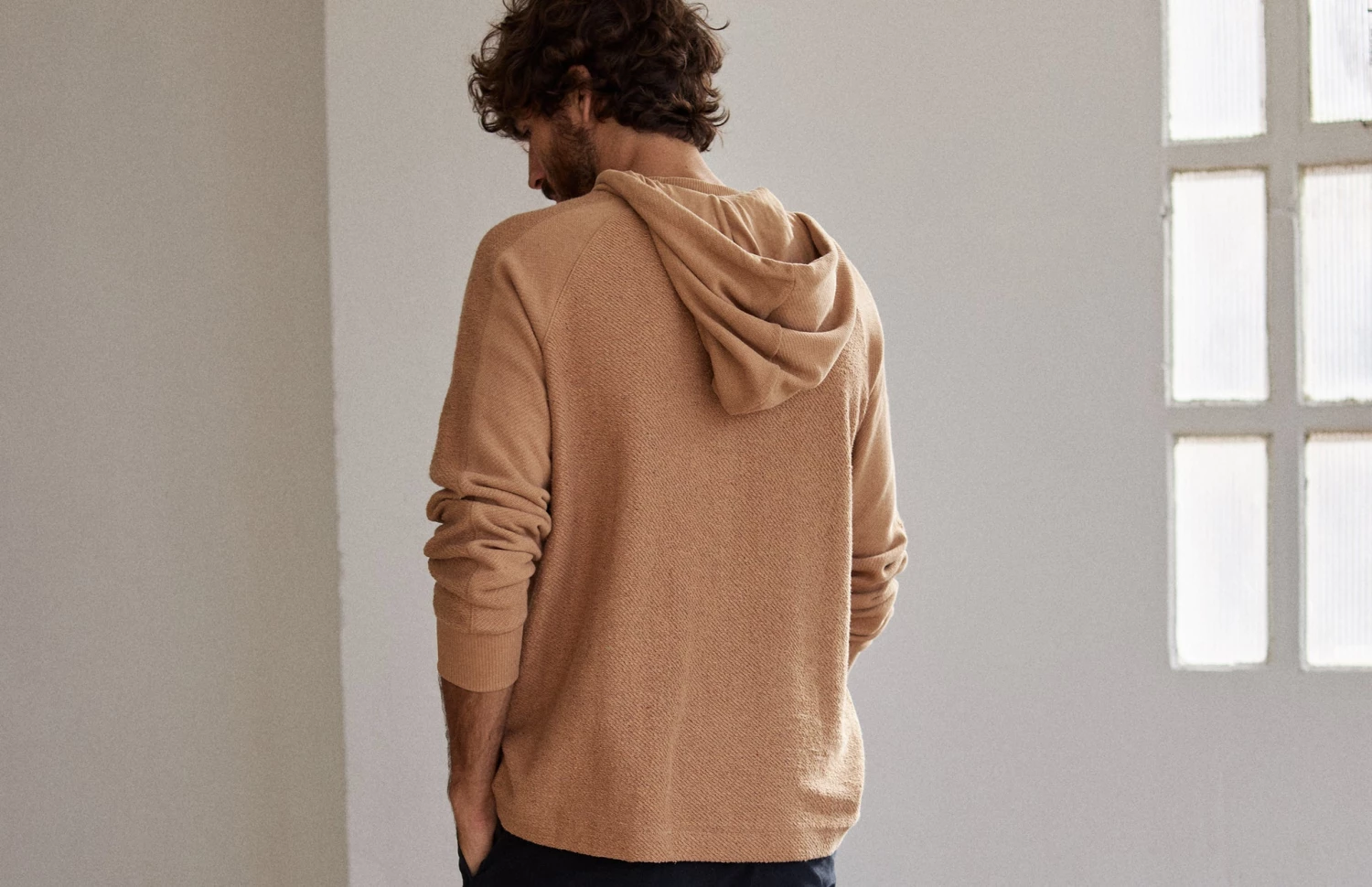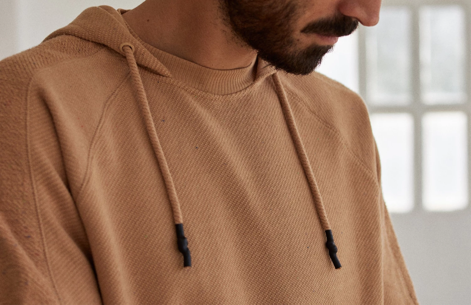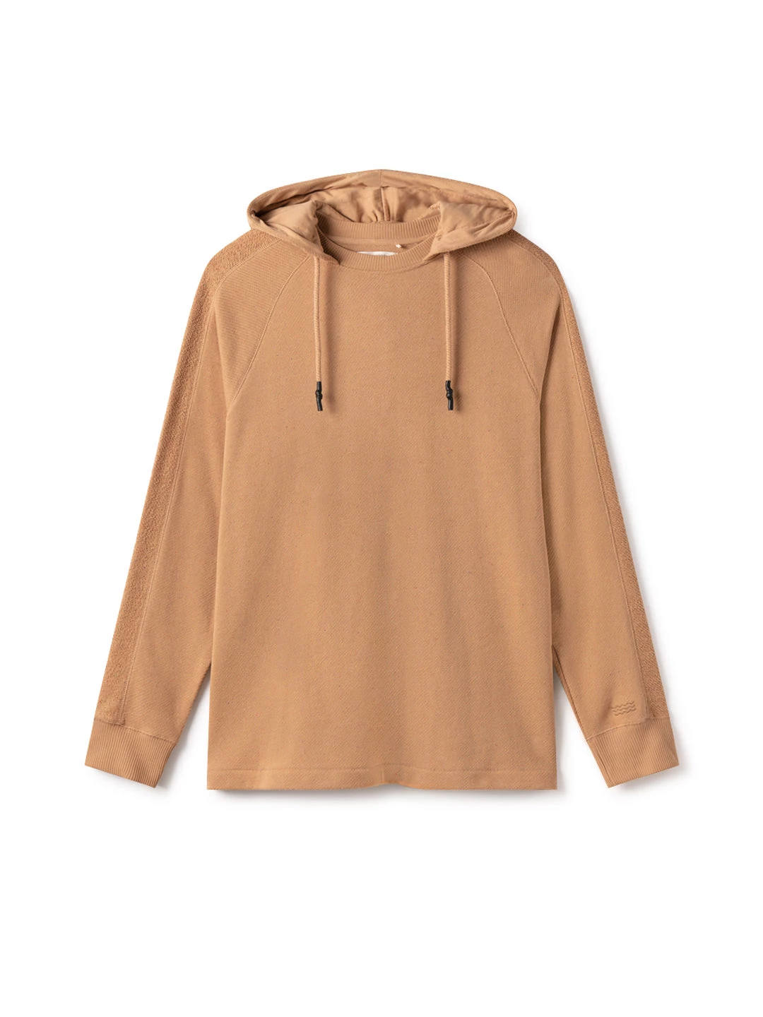 A sustainable basic for your wardrobe, the Niulakita sweatshirt. To give it a unique twist, the fabric is inside out on the top of the sleeves and back. Also designed with a beautiful nepped effect. The hoodie comes with ribbed edges, wave detailing on the left wrist and a regular fit. Â