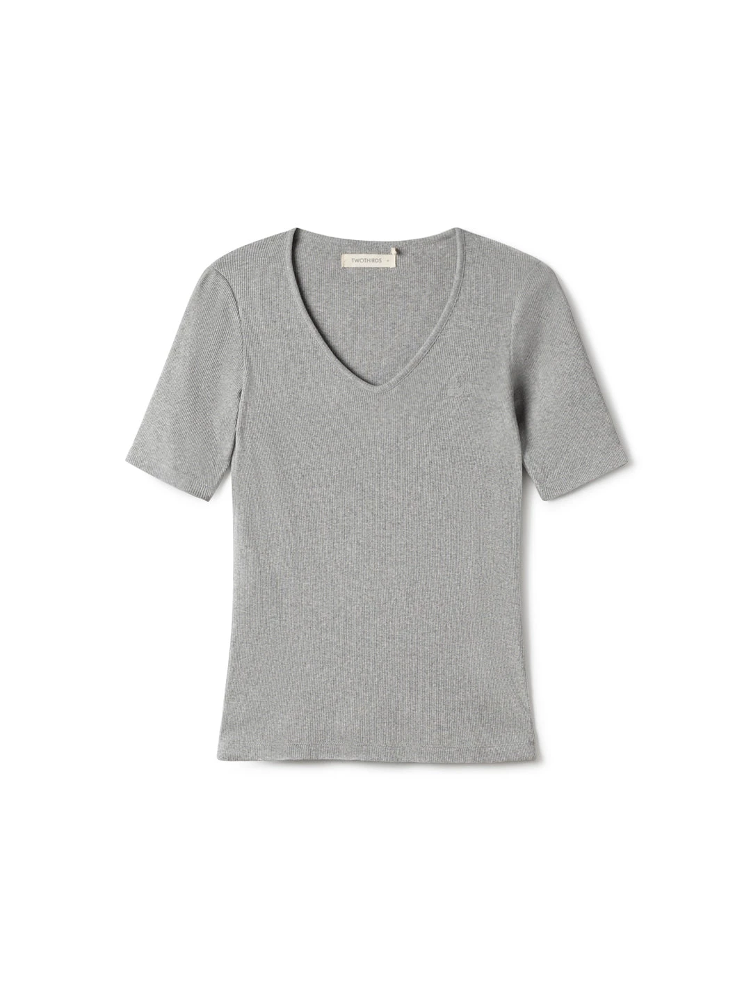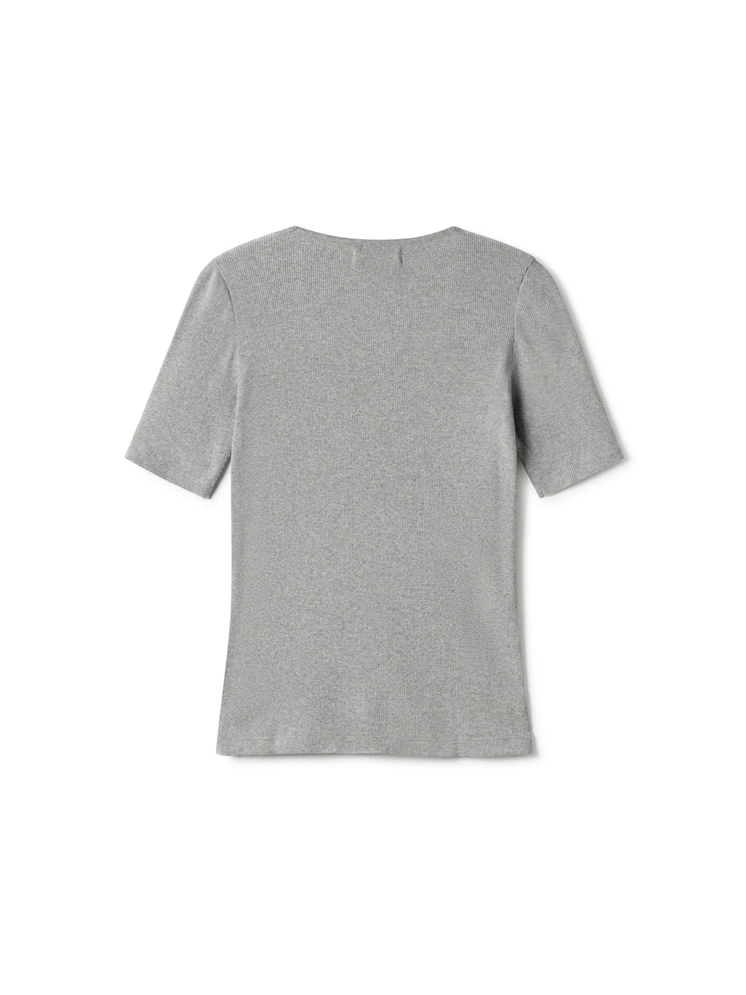For our new collection we present the Nuku top. A sustainably made tee, designed with a V-neckline and a lightweight fabric. It comes in a fairly slim fit and hip length cut, featuring whale embroidery on the chest.