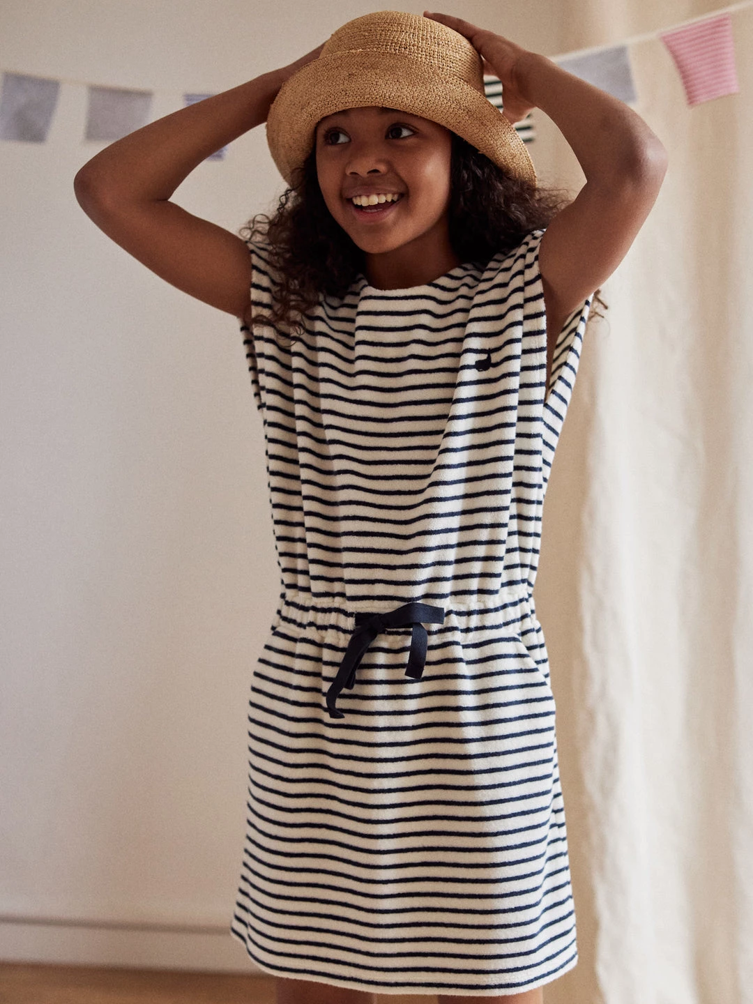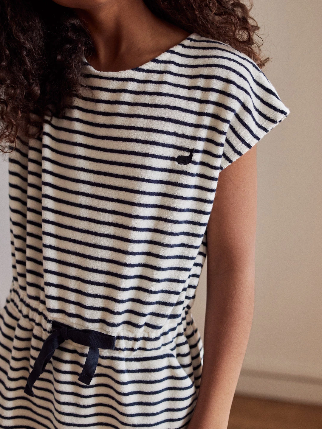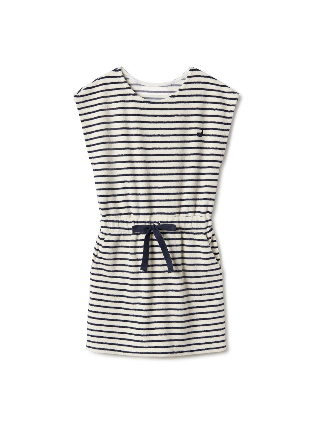 Stripes all over! A beautiful maritime style, the Aldinga is a soft rizo dress with chest whale embroidery and convenient side pockets. An elastic cord waistband allows you to adjust it as you prefer.Â