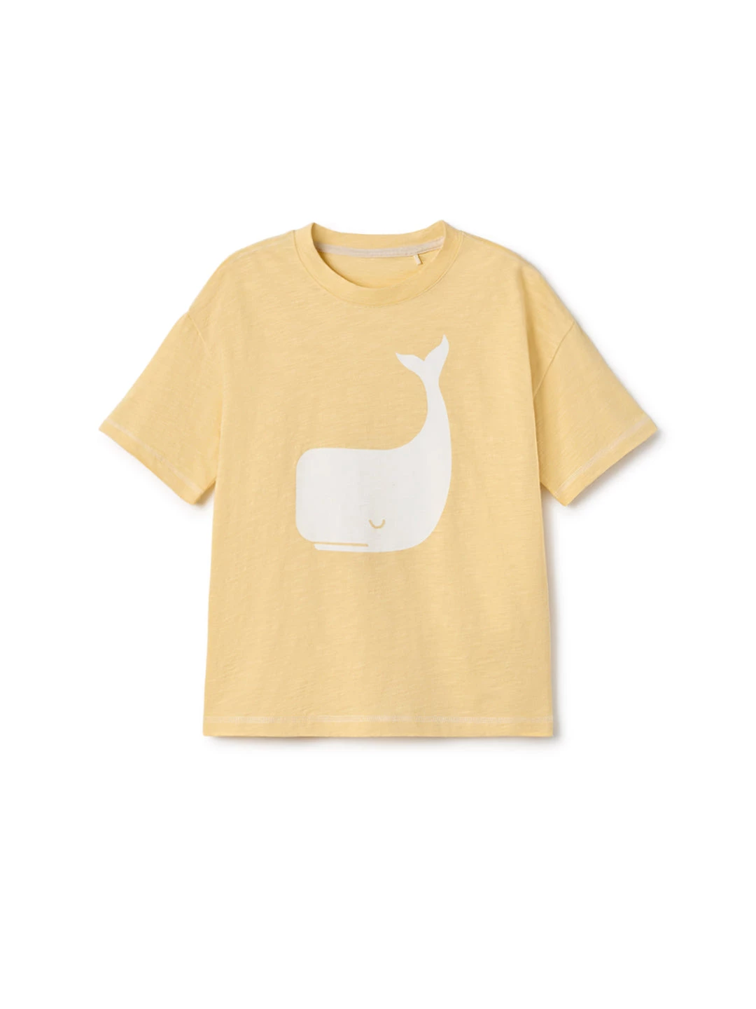 Whale ahead! Choose your favourite colour for the Orzán tee and matching whale print. A t-shirt everyone will love, designed in a soft organic fabric and contrasting hem colours on the sleeves and bottom.