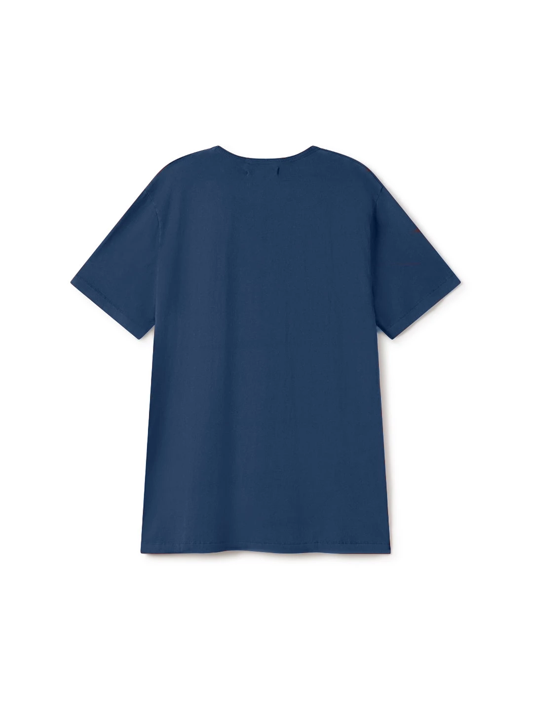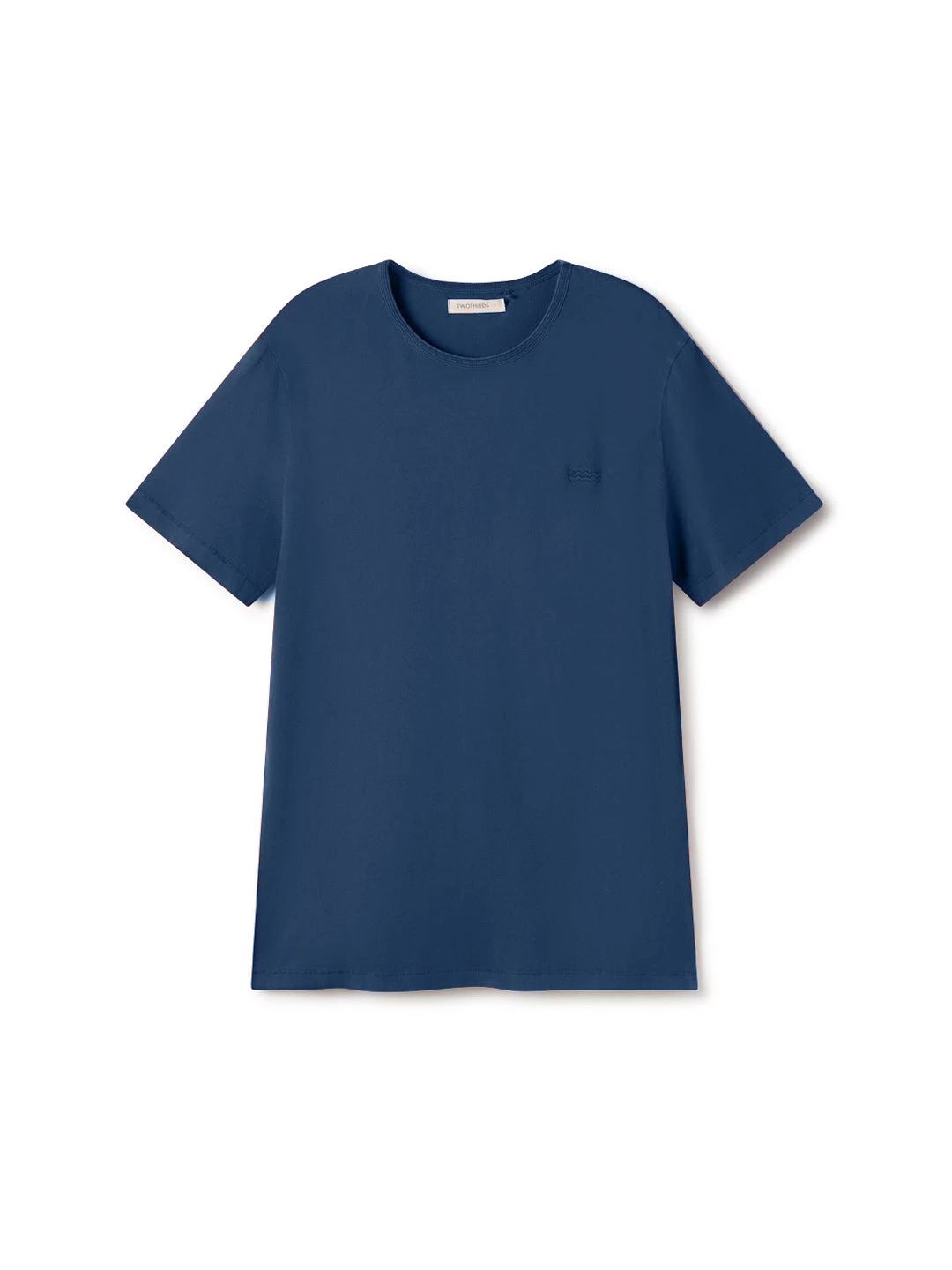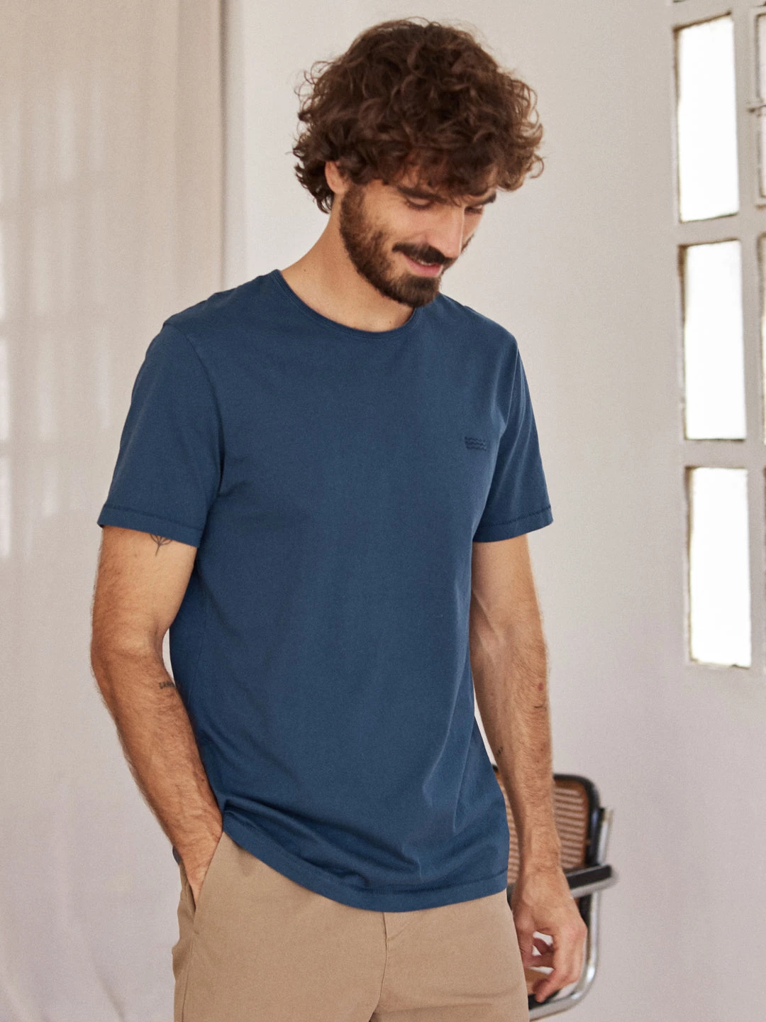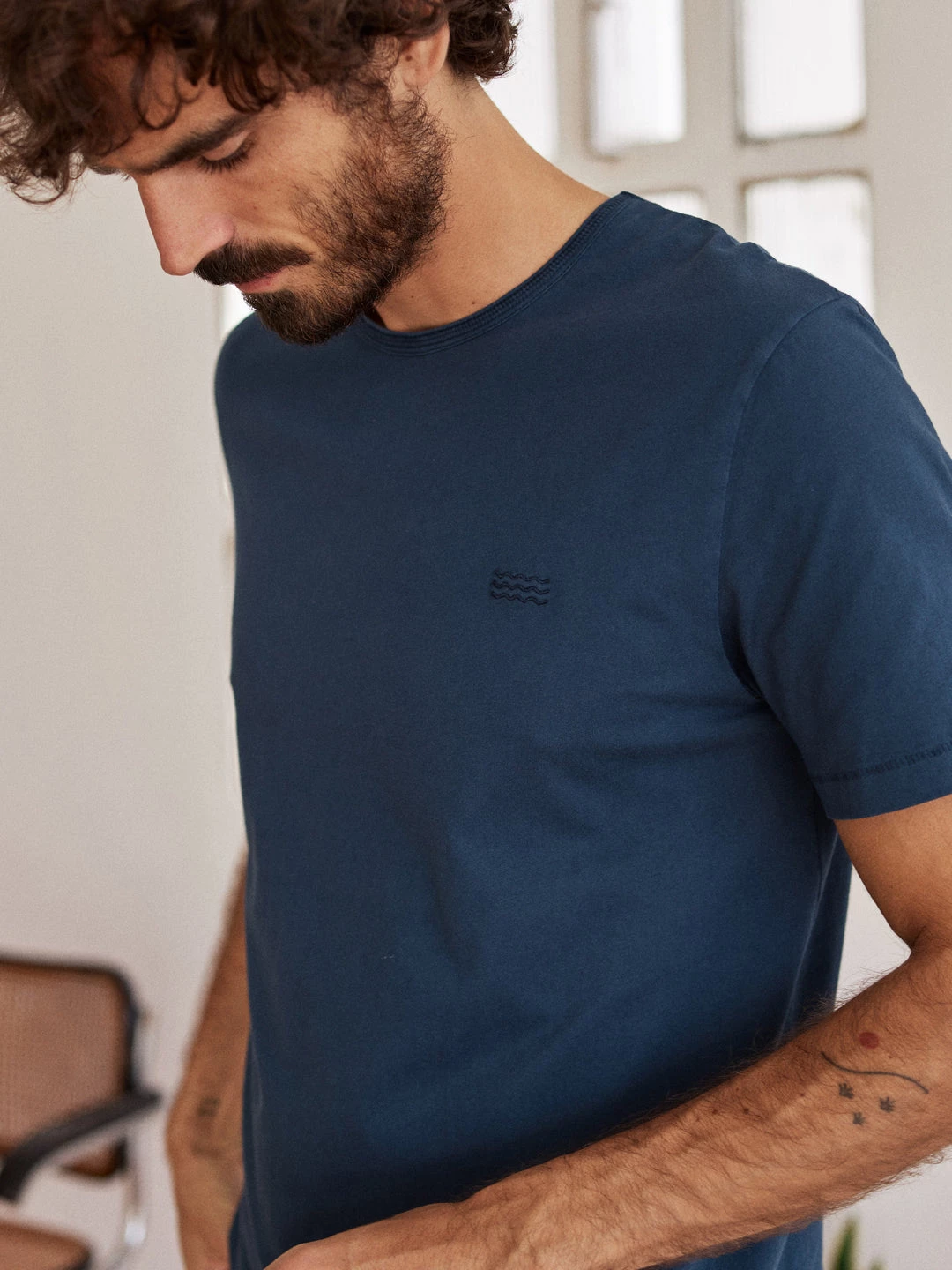 The Paleng is a standard t-shirt, made in a blend of recycled and organic materials. Designed with wave embroidery on the chest and a small triangular label located at the bottom. The tee comes in a regular fit and hip-length cut.