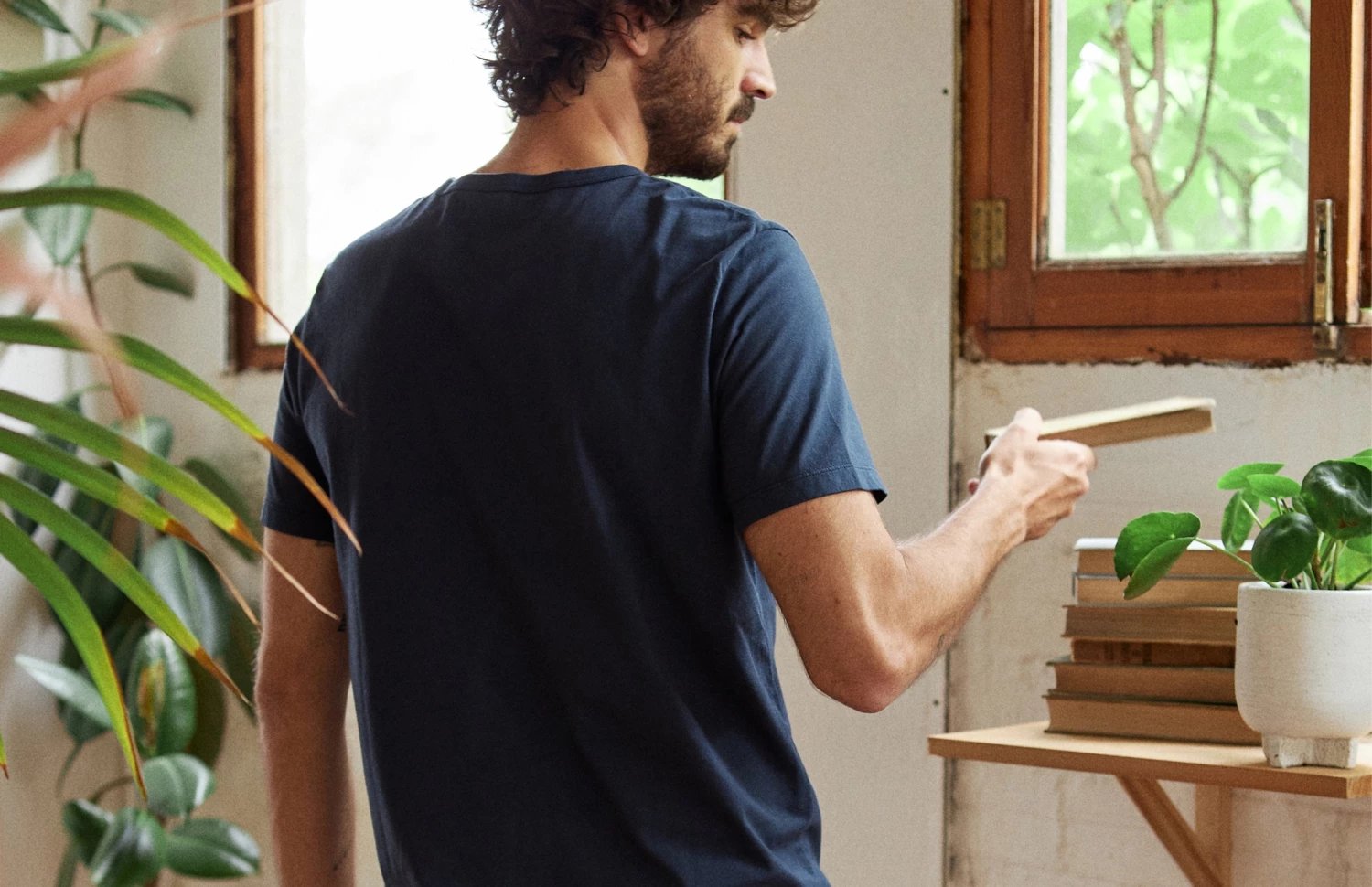 The model’s height is 1.88m and he is wearing a size M.