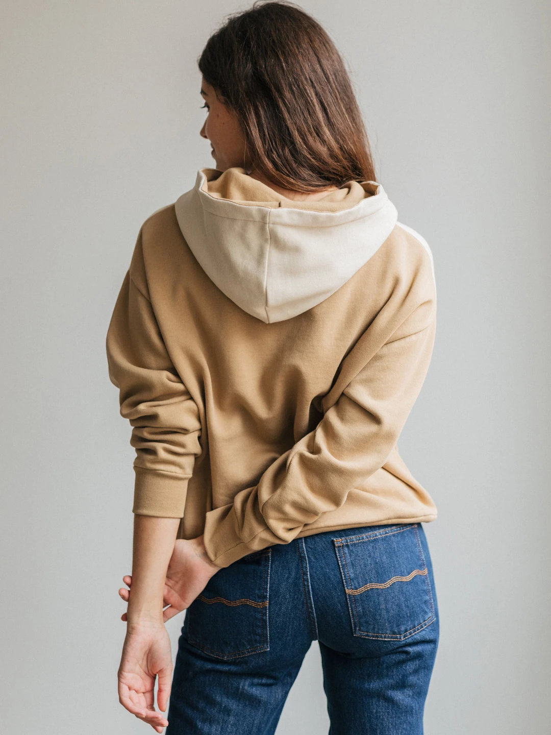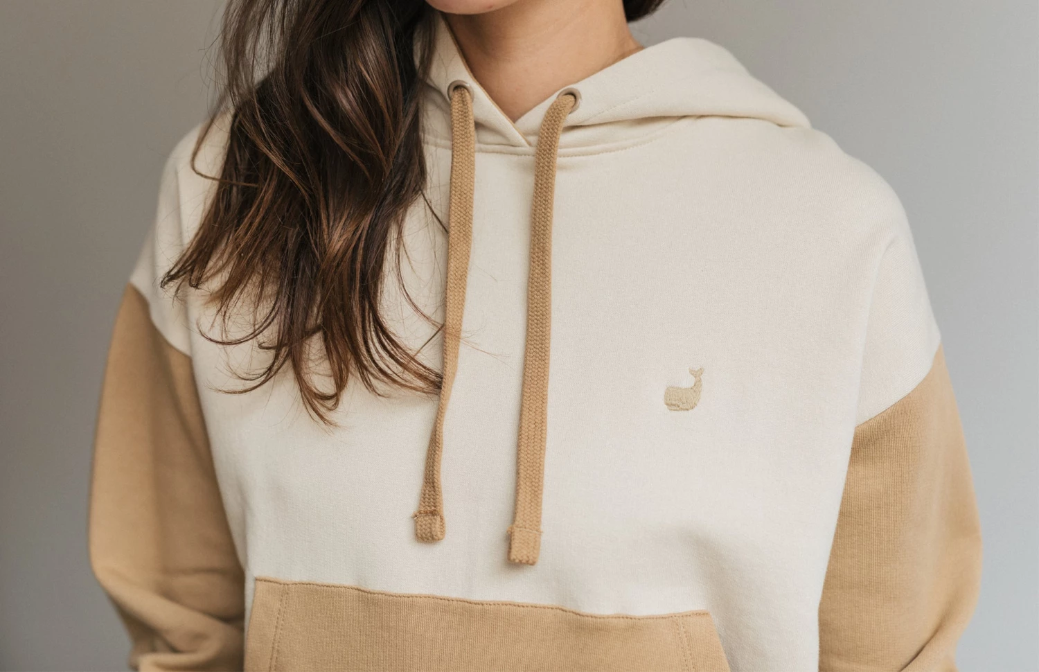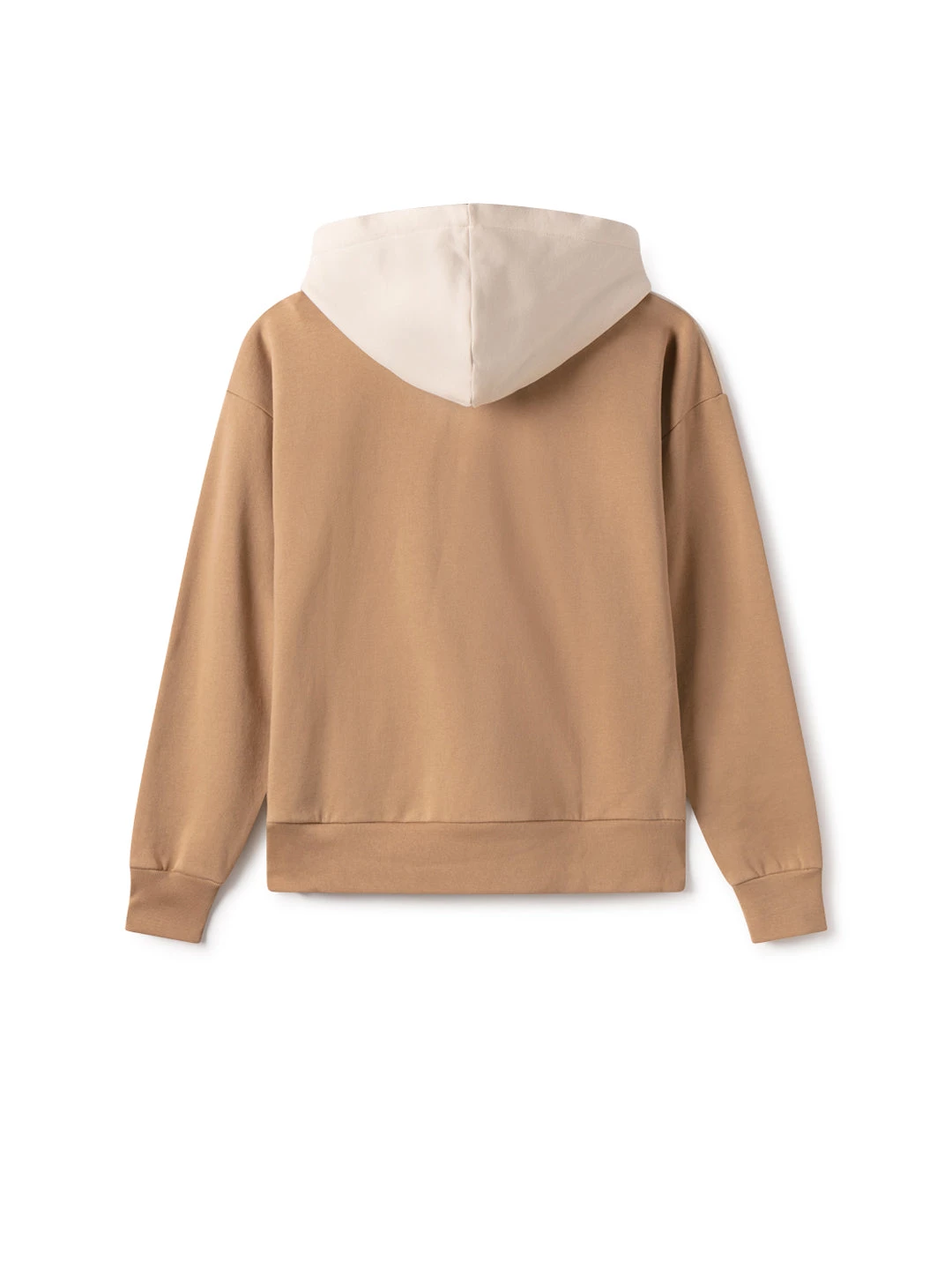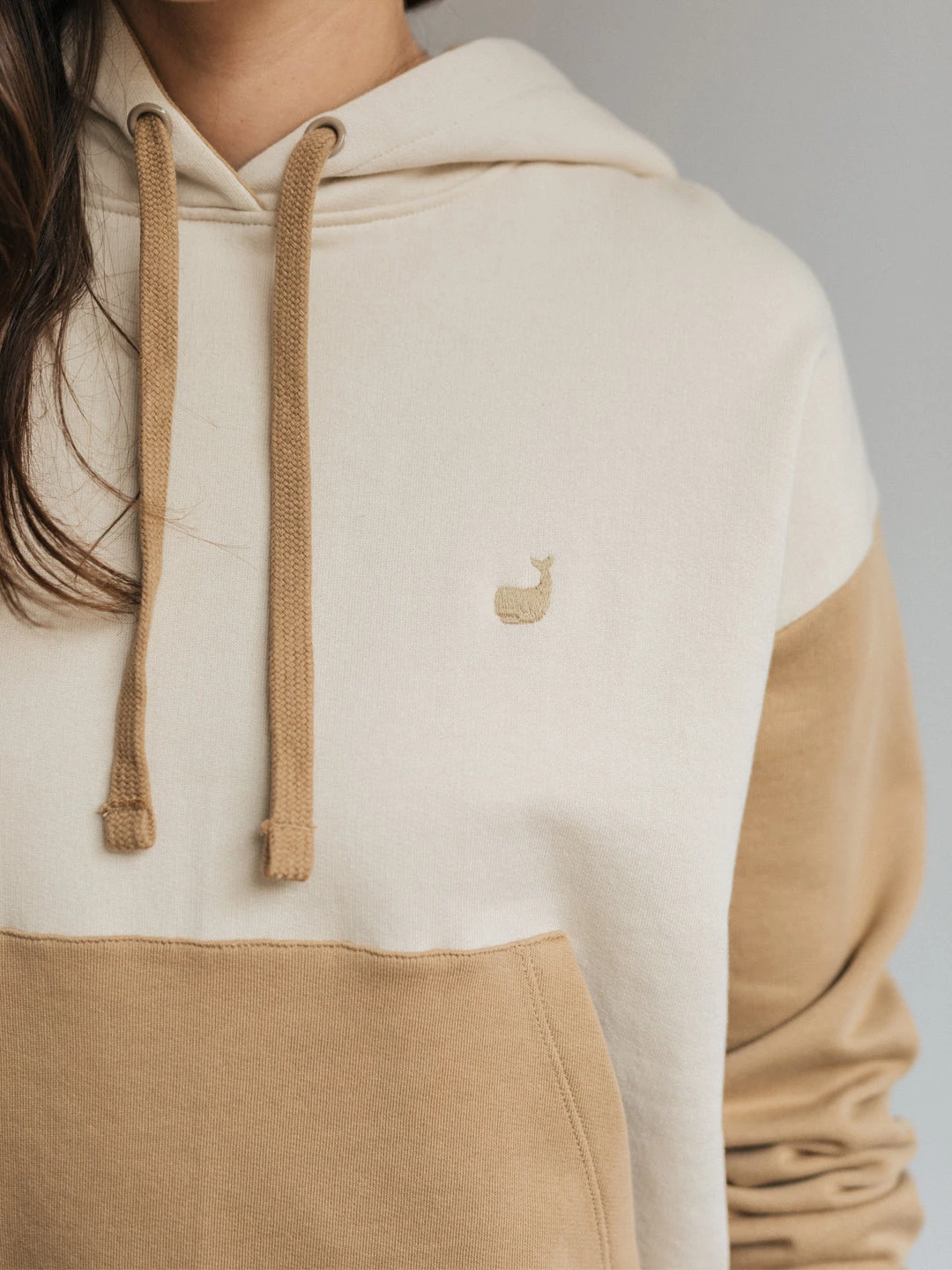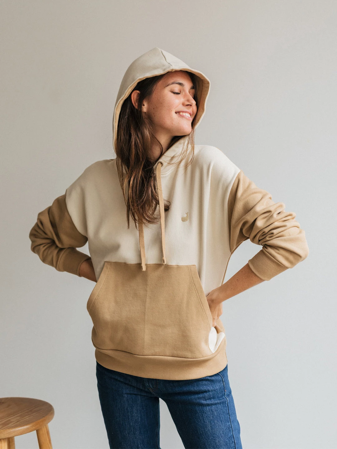 A soft and natural colour with a brushed warm inside fabric, we are happy to bring the Piratiní sweatshirt to our new collection. It is designed with a drawcord adjustable hood, a kangaroo pocket and whale embroidery on the chest. The hoodie has a regular fit and hip-length cut.
