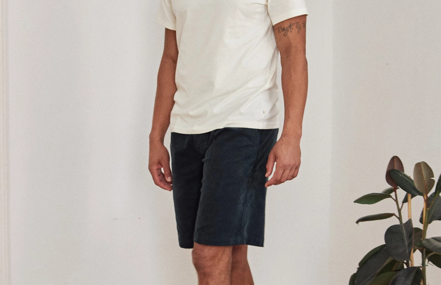 Get in the groove for summer. Micro corduroy shorts designed with an elastic waistband with a girdle adjuster belt, front pleats and 4 pockets in total – wave detail at the back on the right.