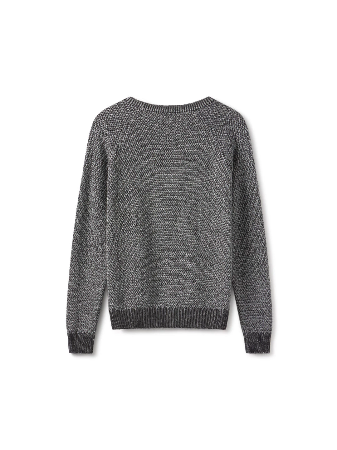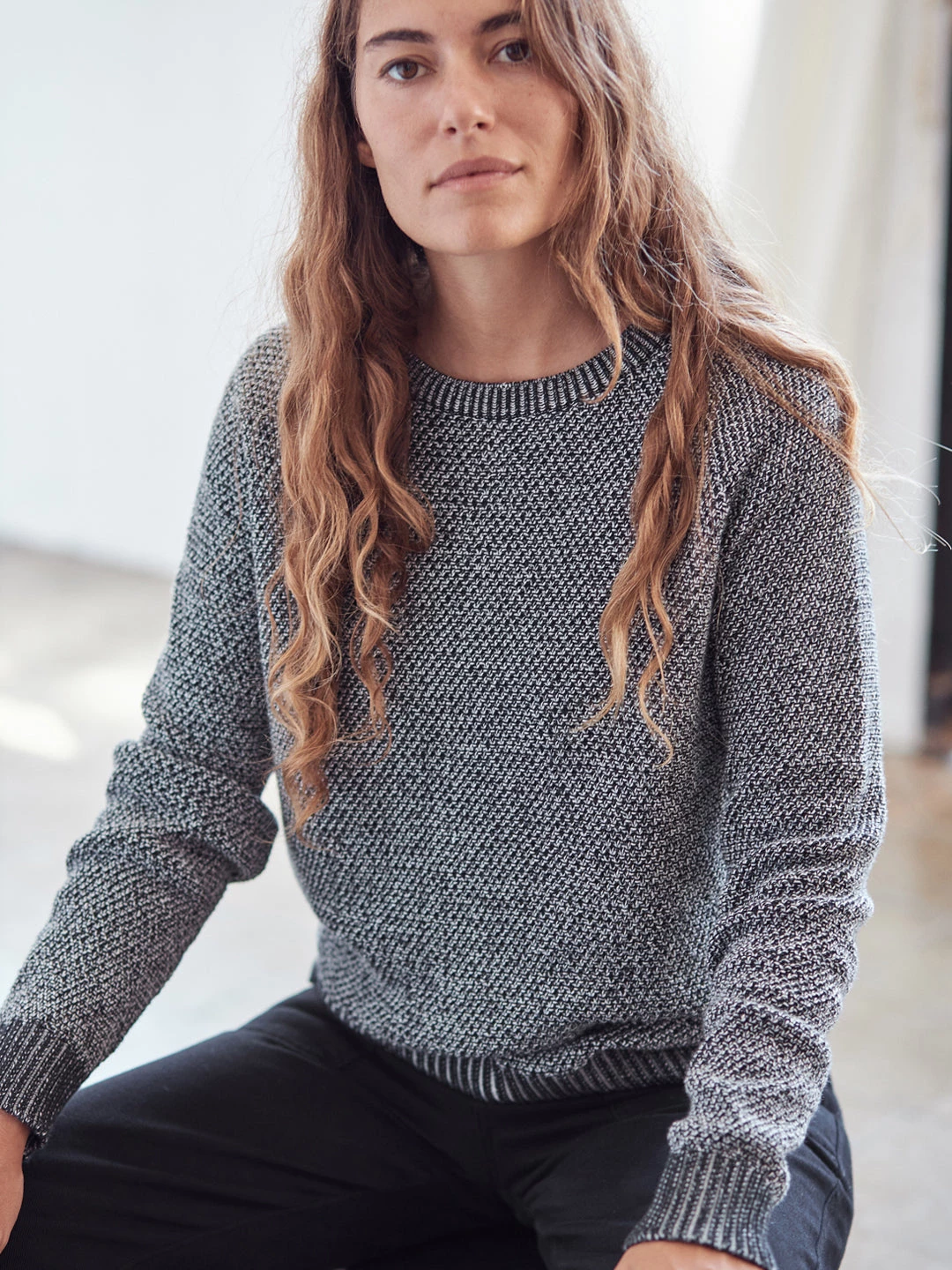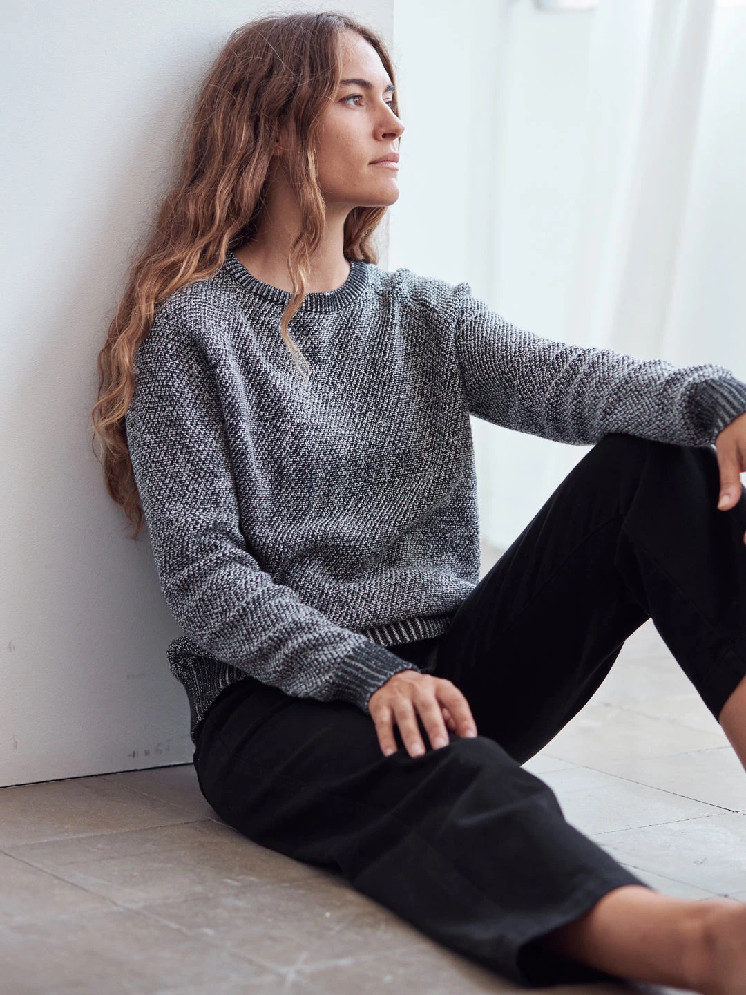 Our Procida knit is one of our team favourites because of its patterned feel with beautiful structure and comfy loose fit. The garment has ribbed edges and falls a bit below the waist.