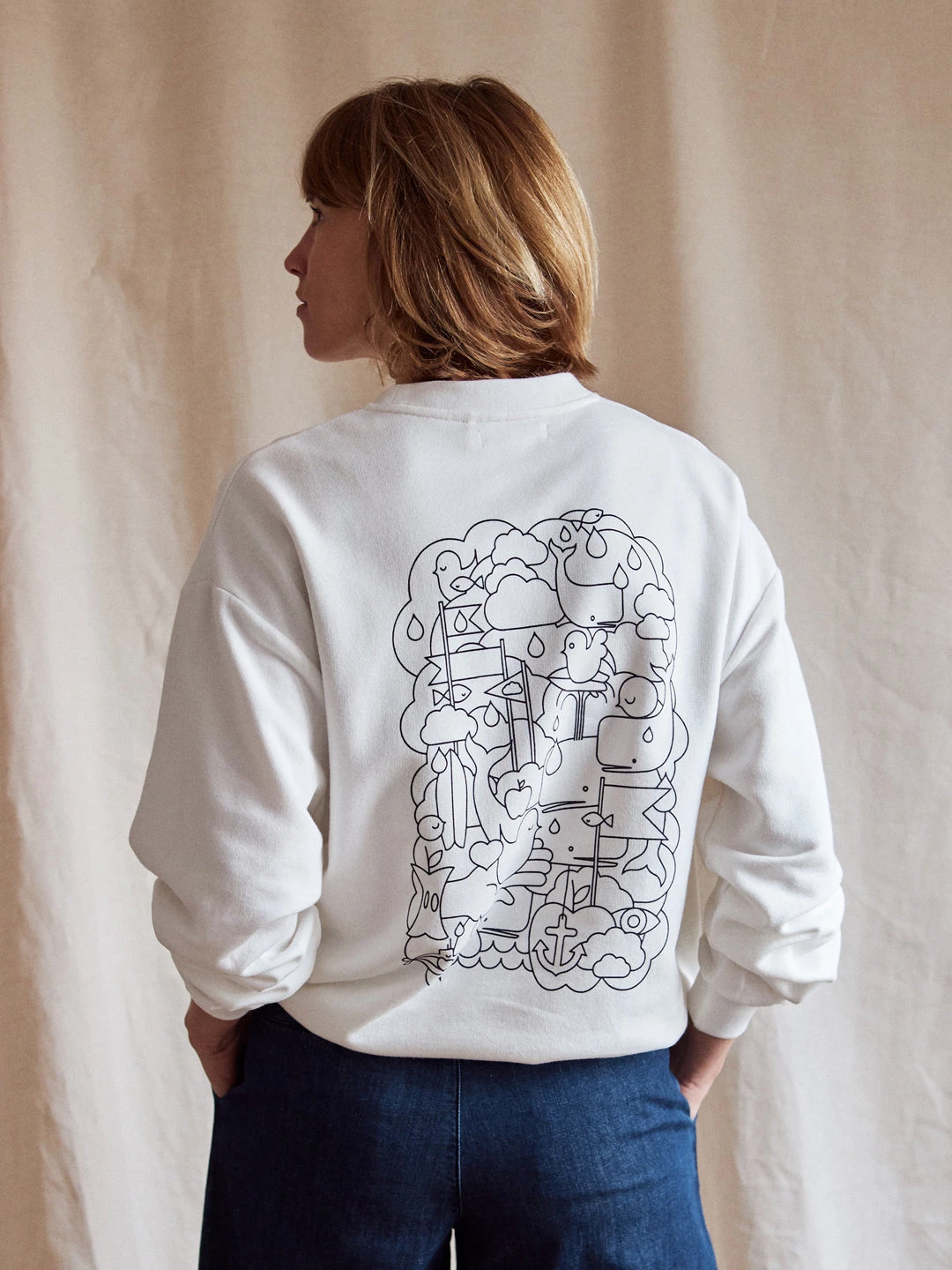 We are very excited to bring the Quiriquina to our latest collection! A beautifully soft sweatshirt that features an ocean-inspired design by Emil Kozak on the back.