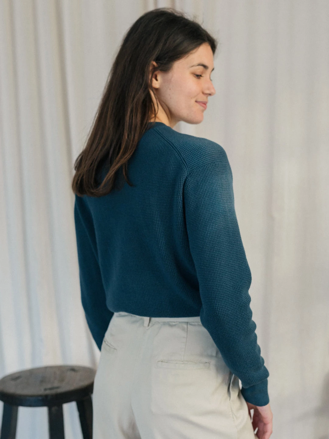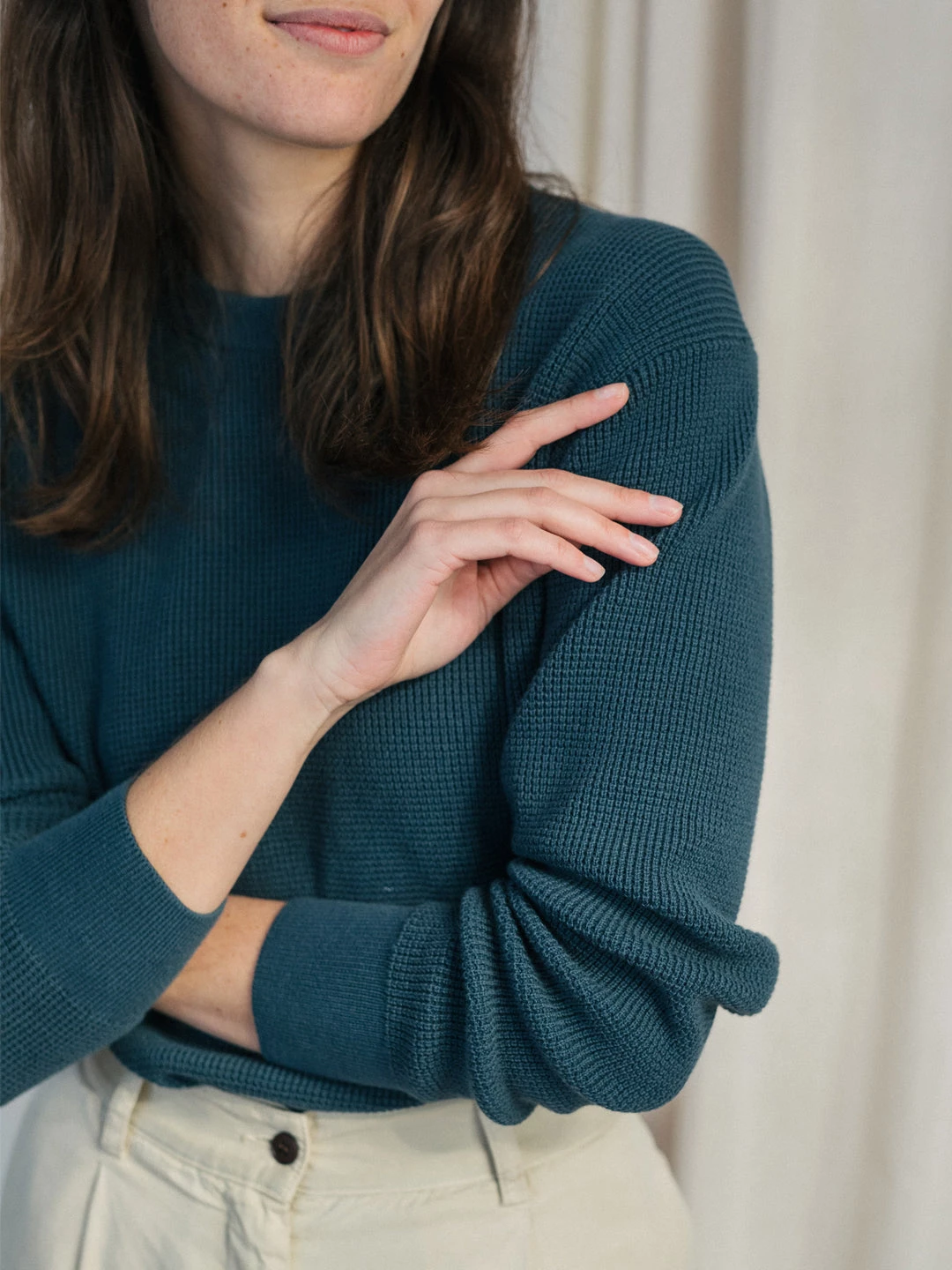 A beautifully simple design, the Raoul has a completely ribbed fabric. Soft to the touch and pesticide free so it’s great for sensitive skin. It comes in a loose fit and hip-length cut.Â