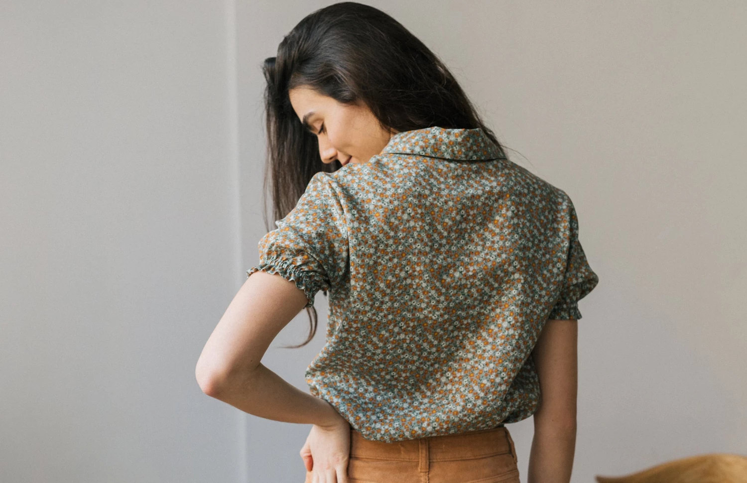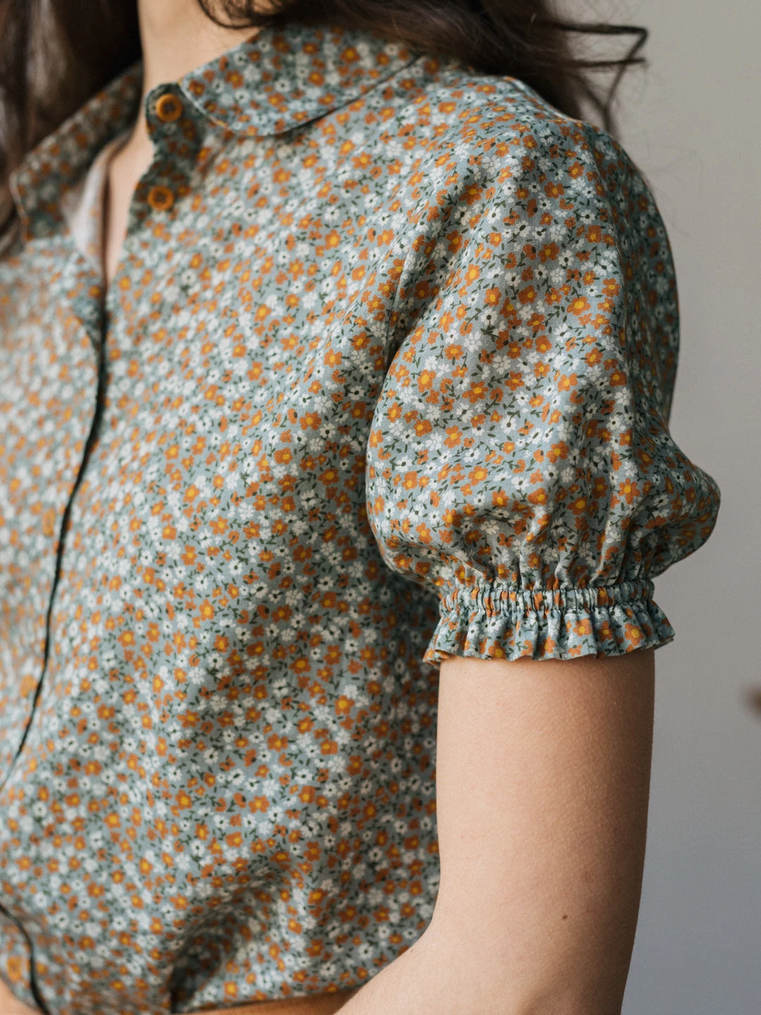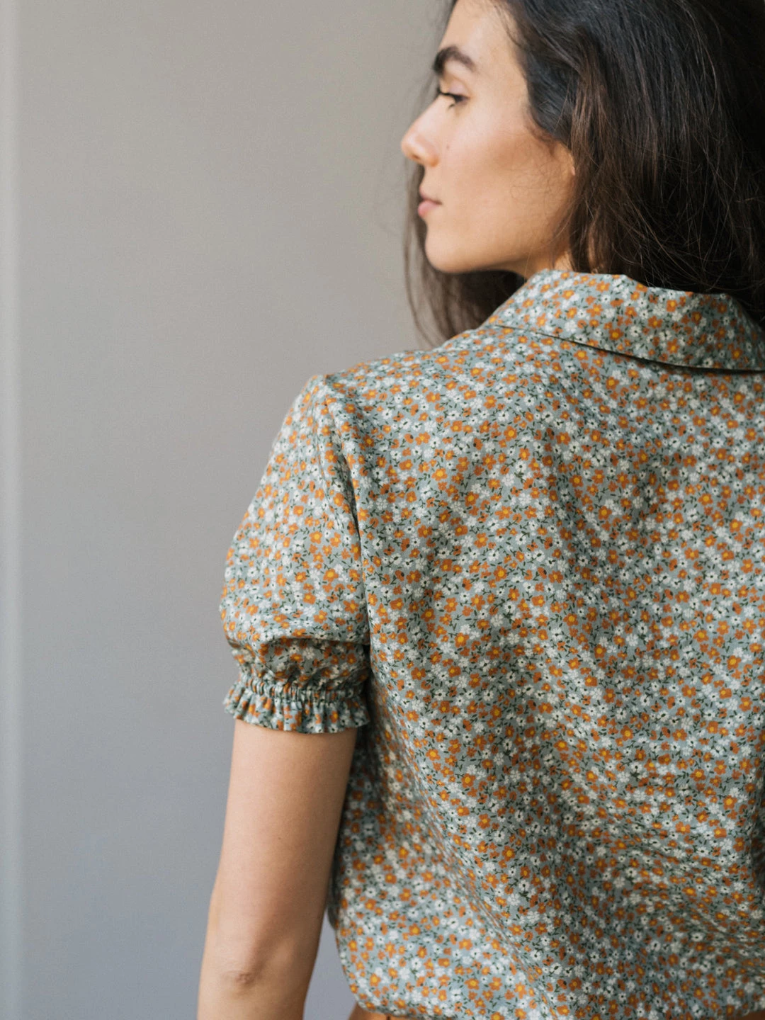 Warmer weather is ahead, and so we decided to bring this floral print shirt to match the sun. Designed with naturally sourced corozo buttons and balloon sleeves with an elastic gathering at the end for a feminine touch! It comes in a regular fit and hip-length cut.Â