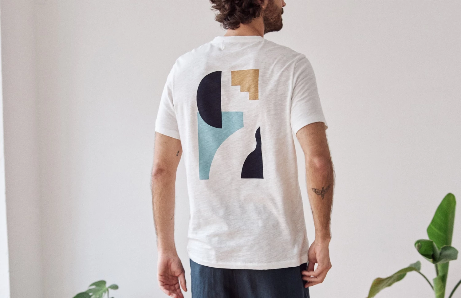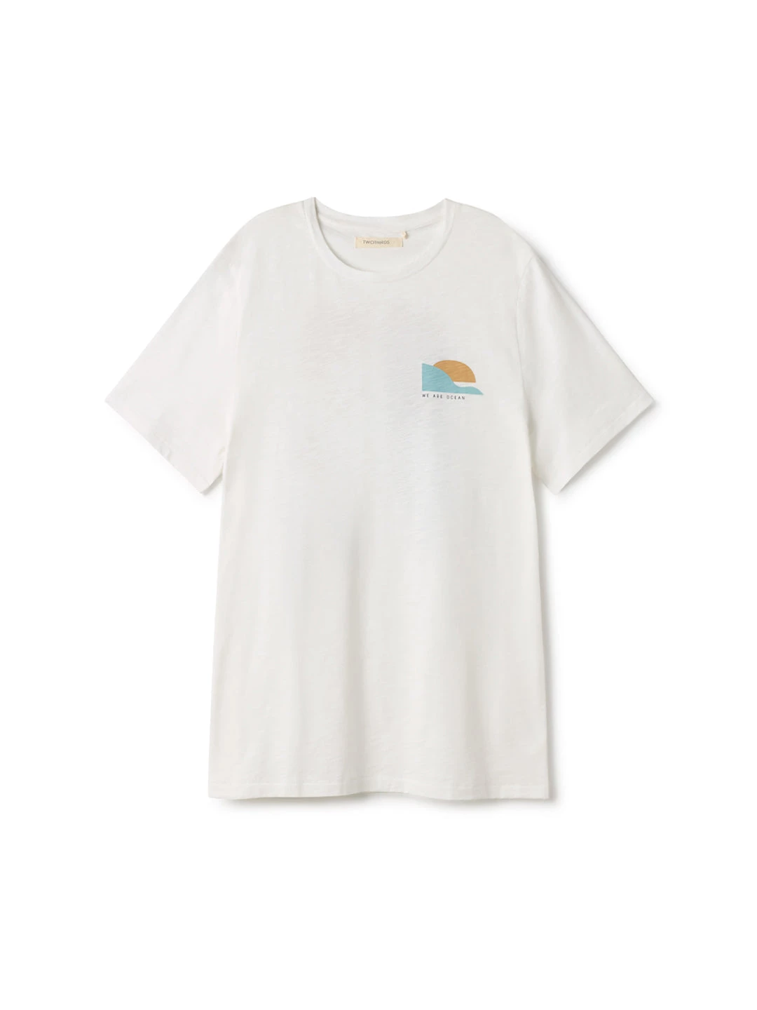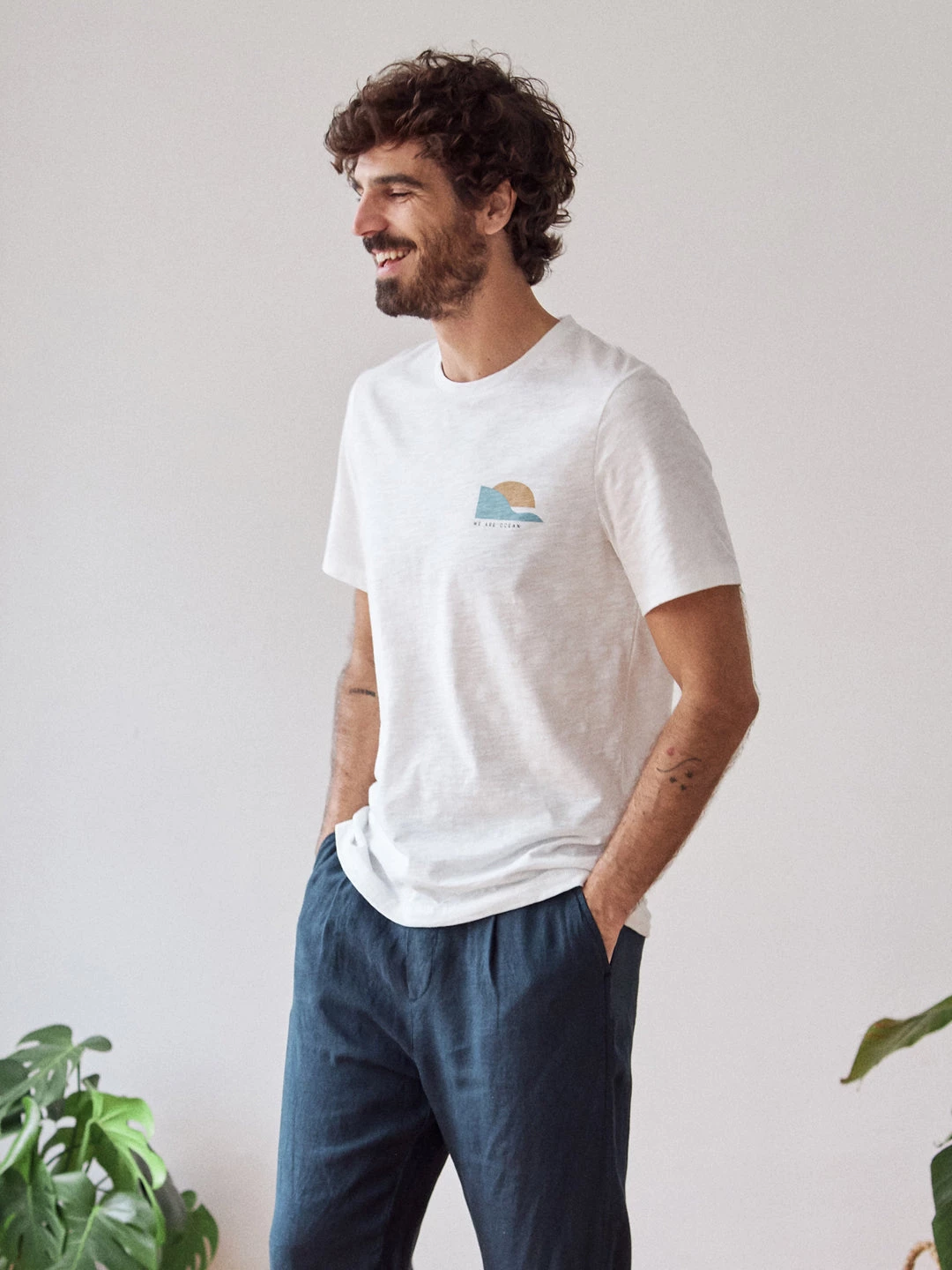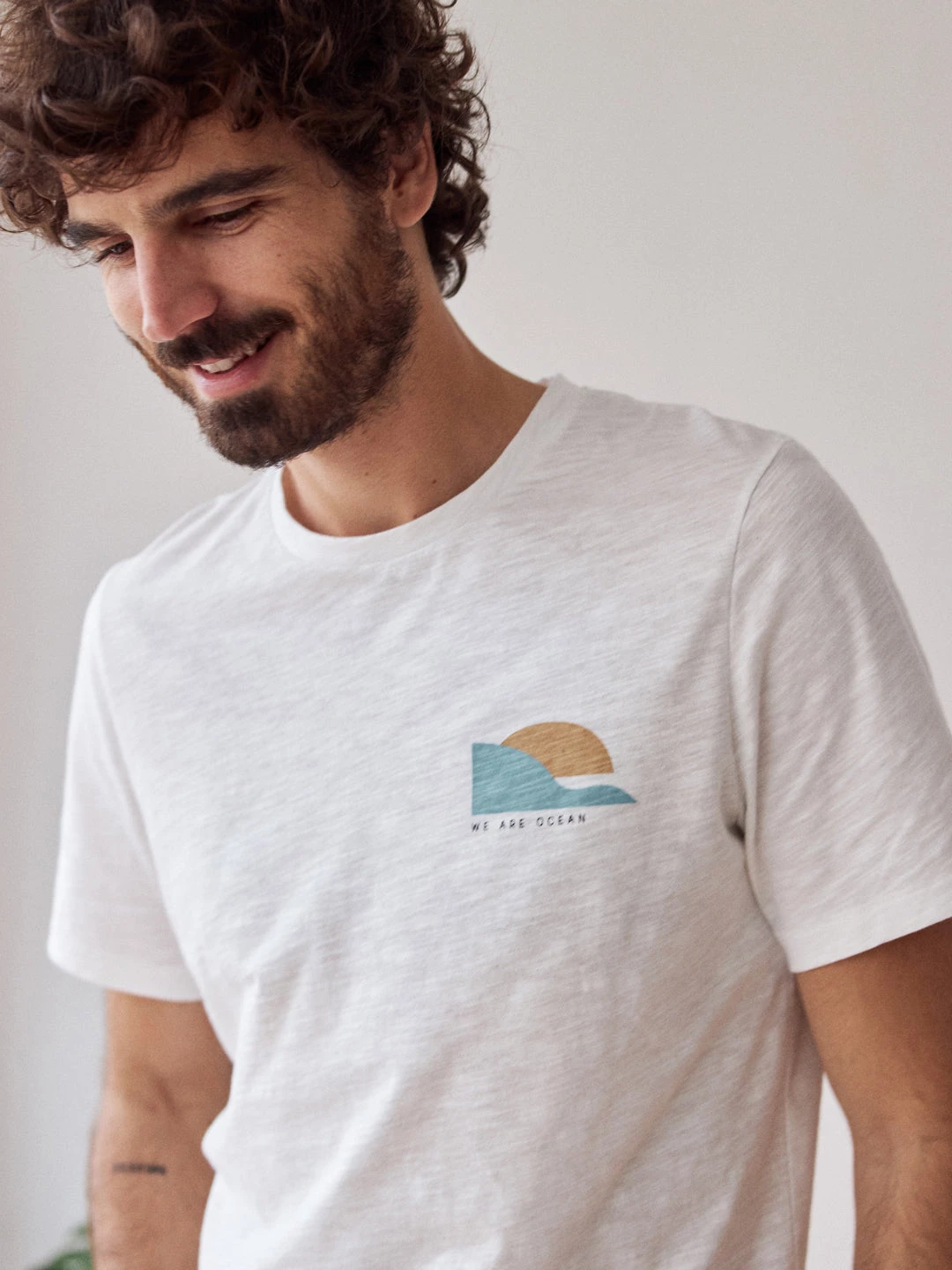 A surfy landscape on the front becomes an abstract design on the back in the Rons tee. The garment has a regular fit and hip-length cut and features the word “We are ocean” on the chest.