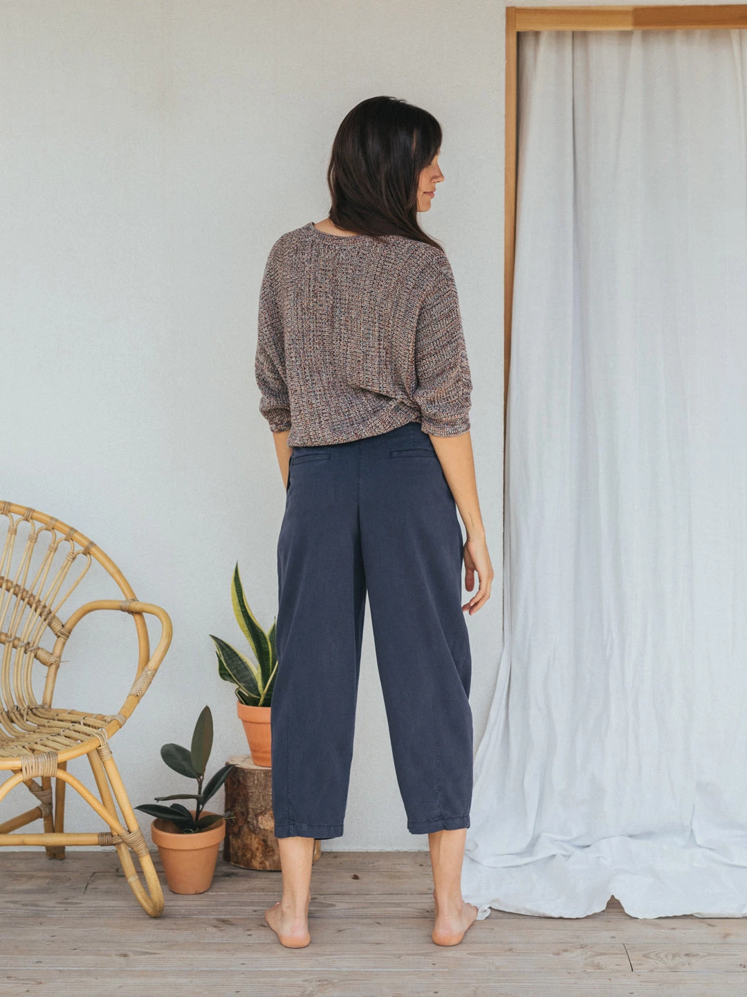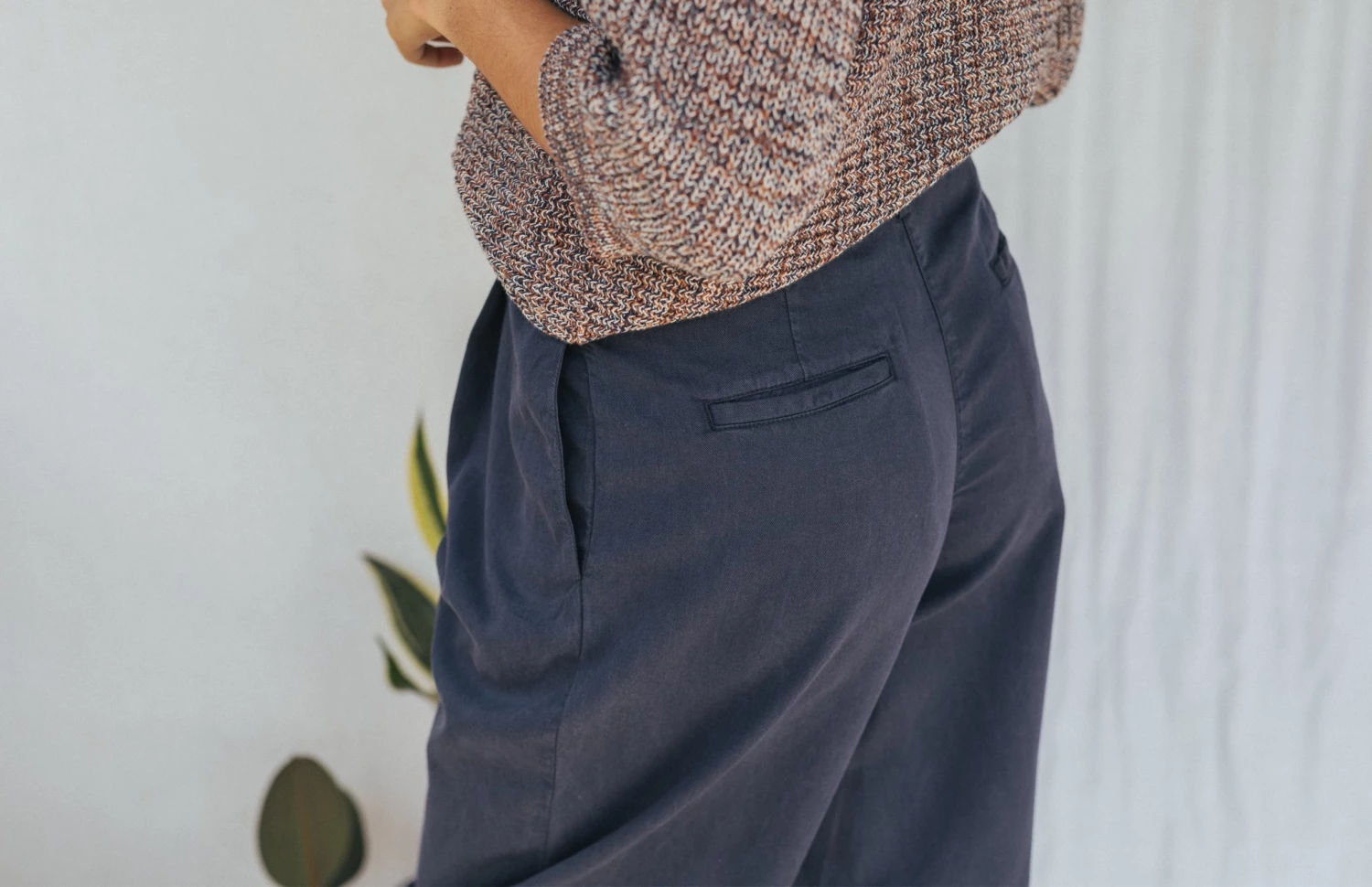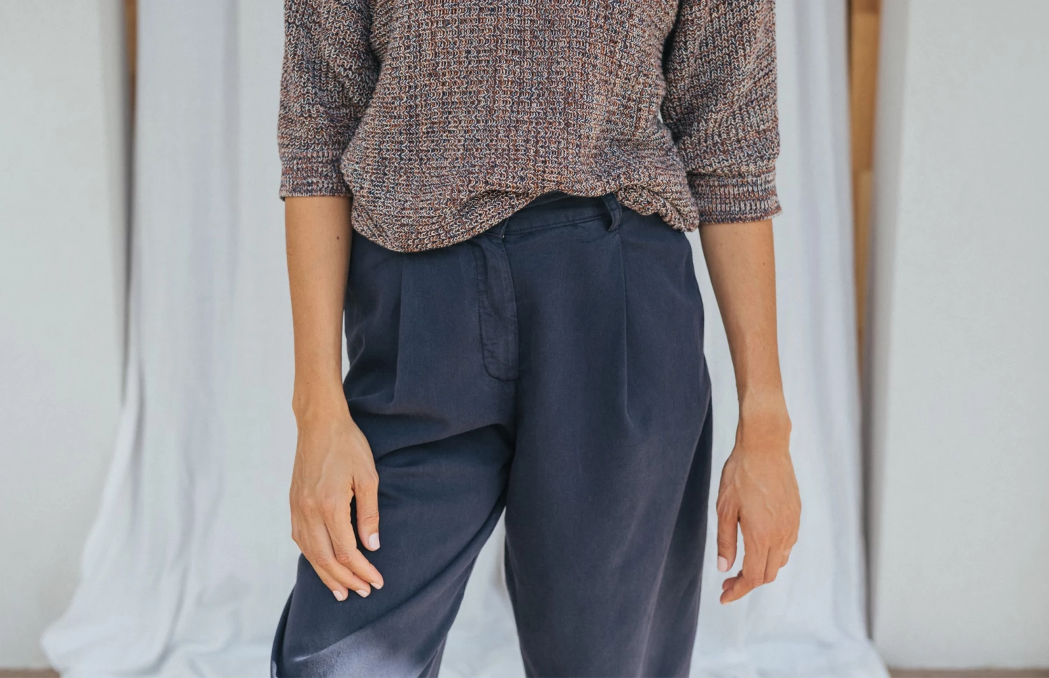 We love bringing our designs to life with sustainable fibres like TENCELâ„¢ x REFIBRAâ„¢. The Saboga trousers are designed in a fairly baggy fit, being slightly high-waisted and falling around the ankles. They also feature a naturally sourced corozo button and pleats on the front.