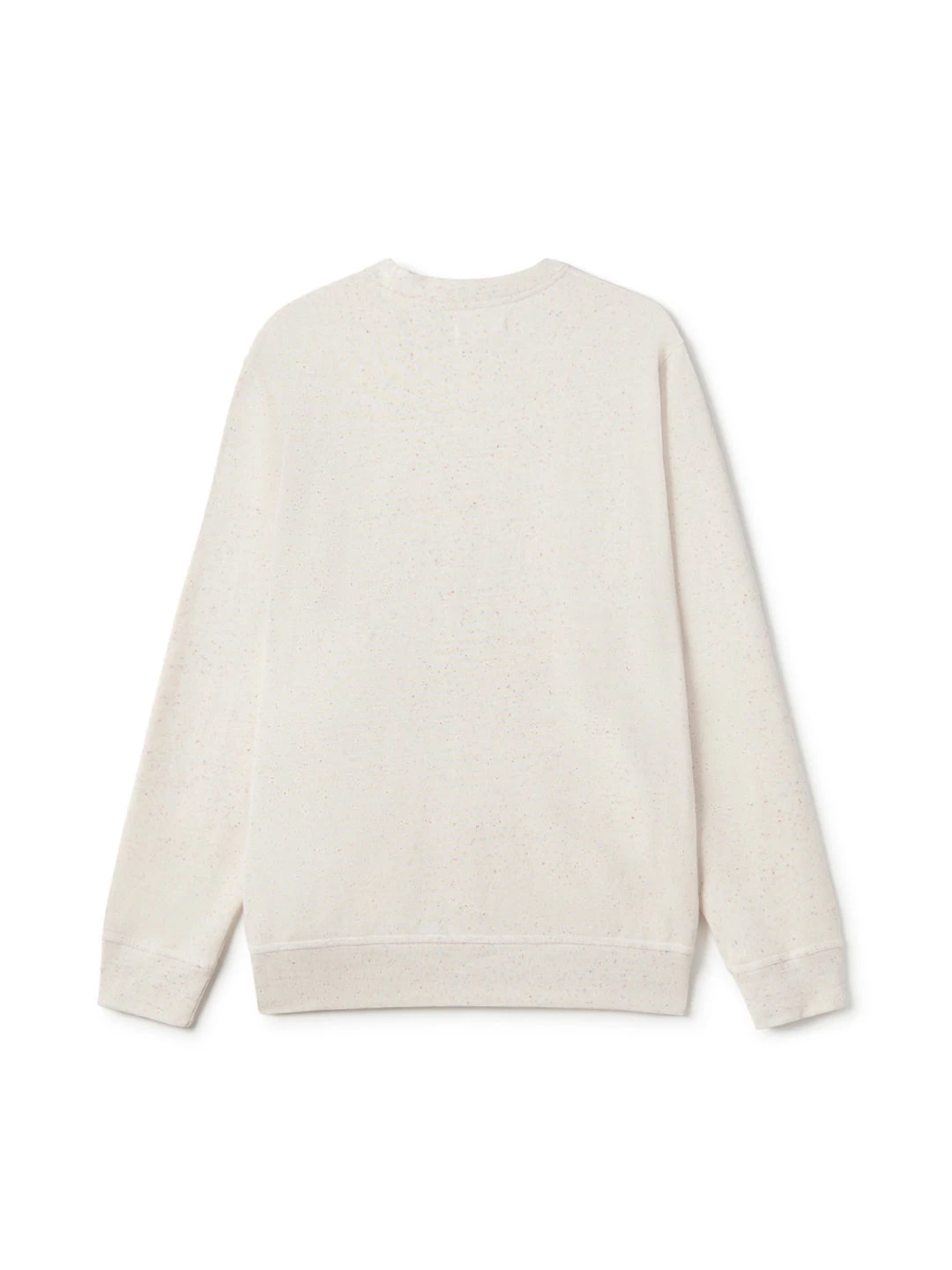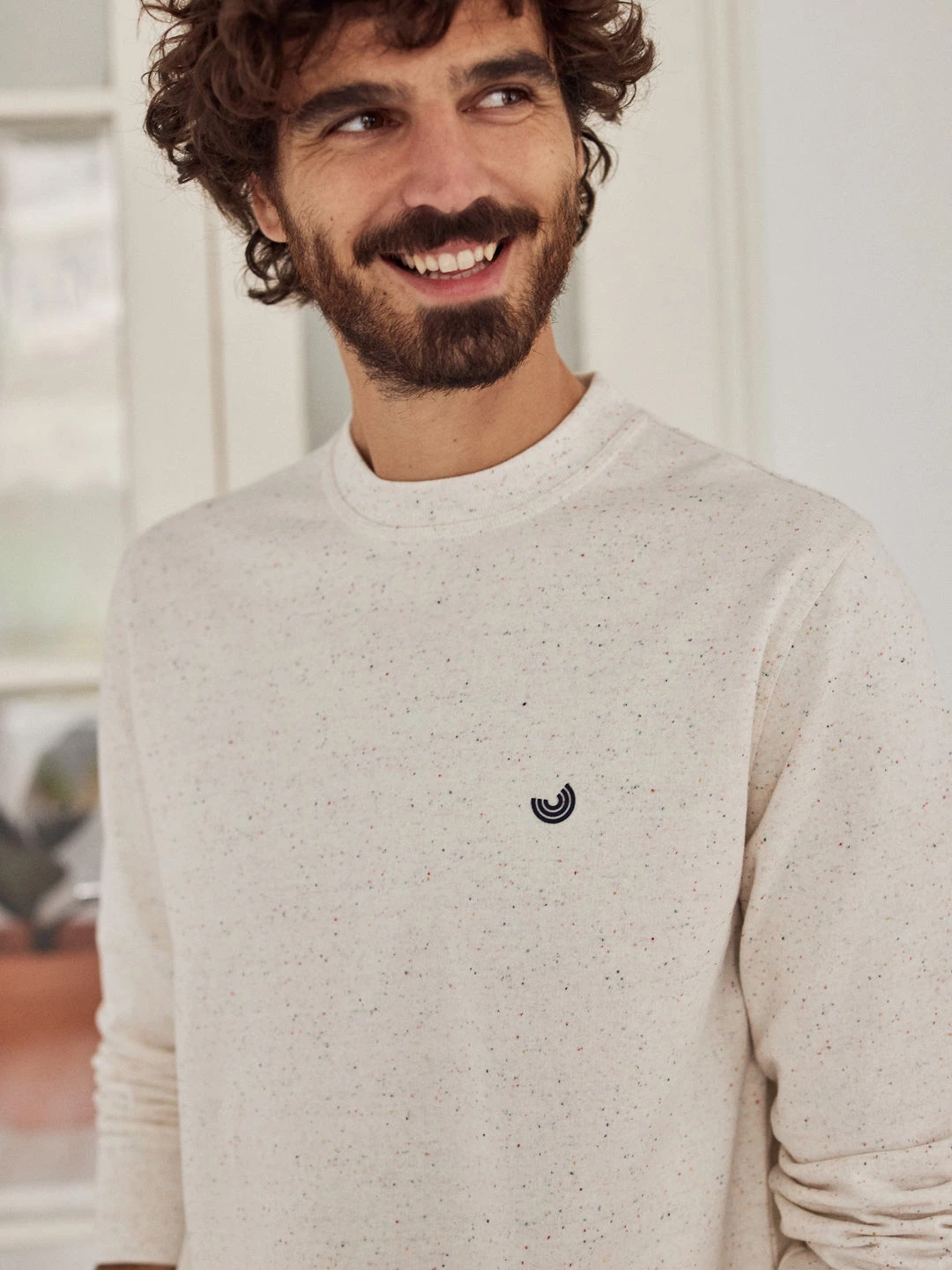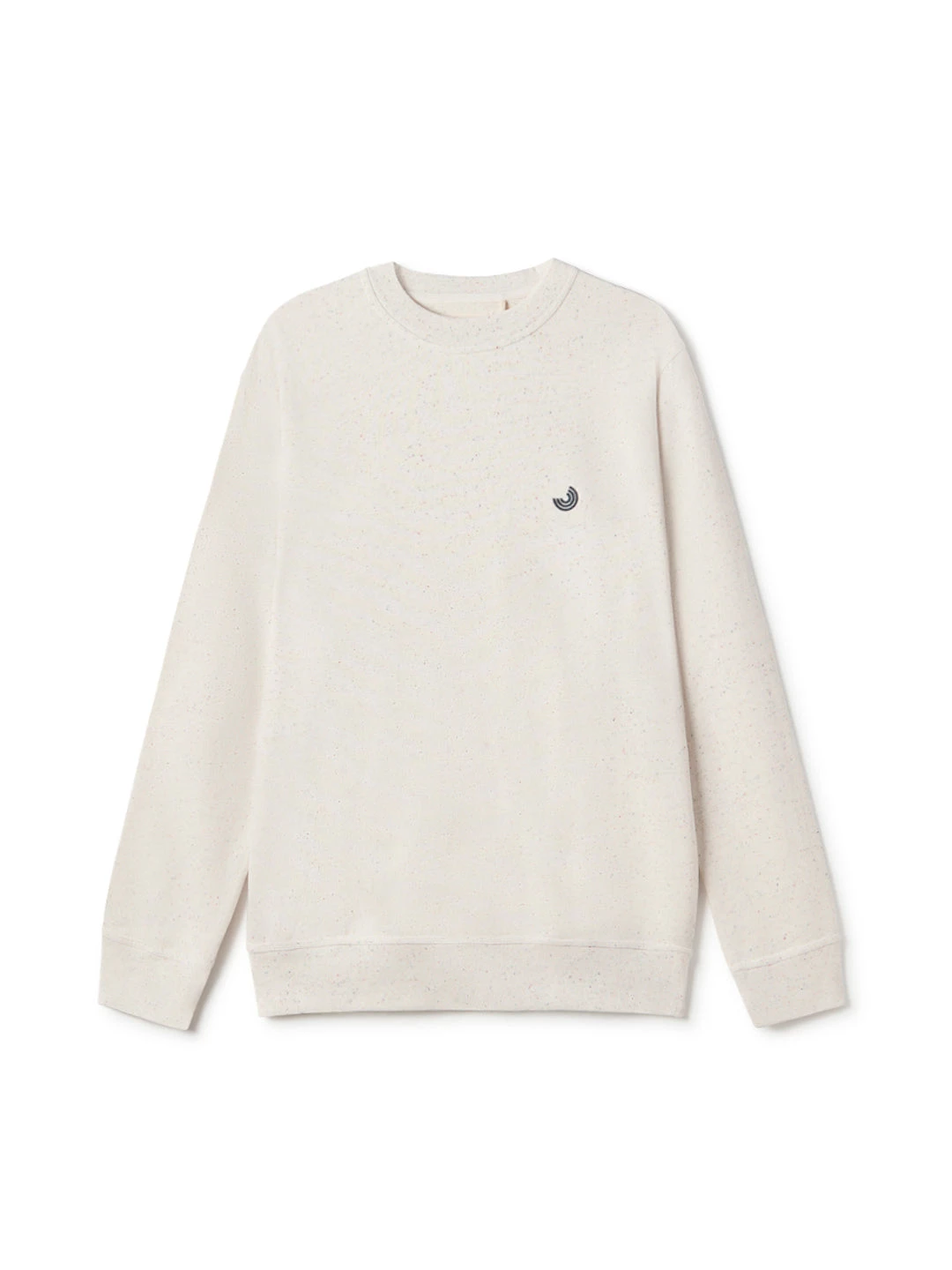 In a sustainably produced fabric, the beautiful Saint Lucia sweatshirt is made from recycled materials. Designed in a grey colour featuring black neps all over and our logo printed on the chest. It comes in a regular fit and hip-length cut.
